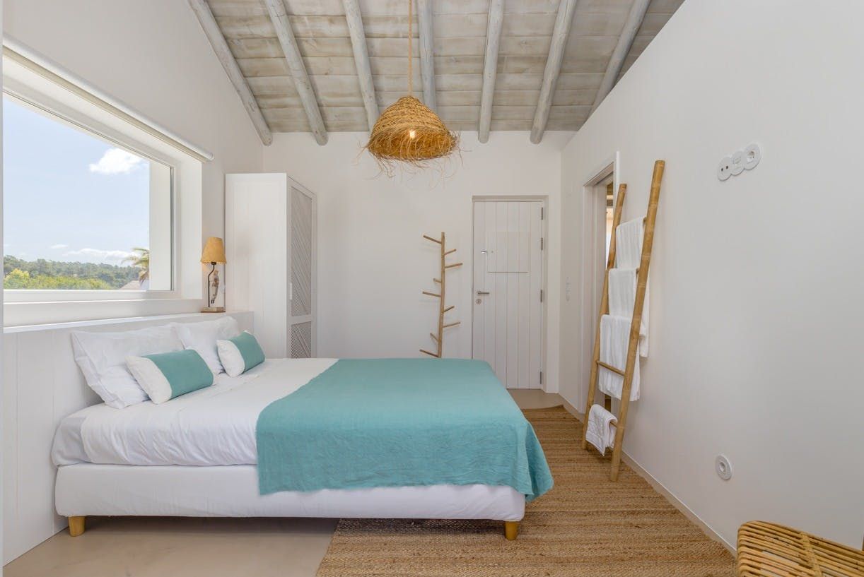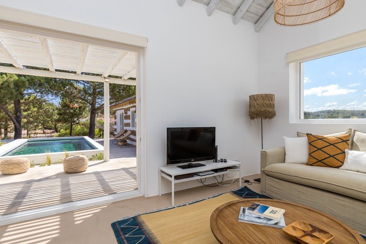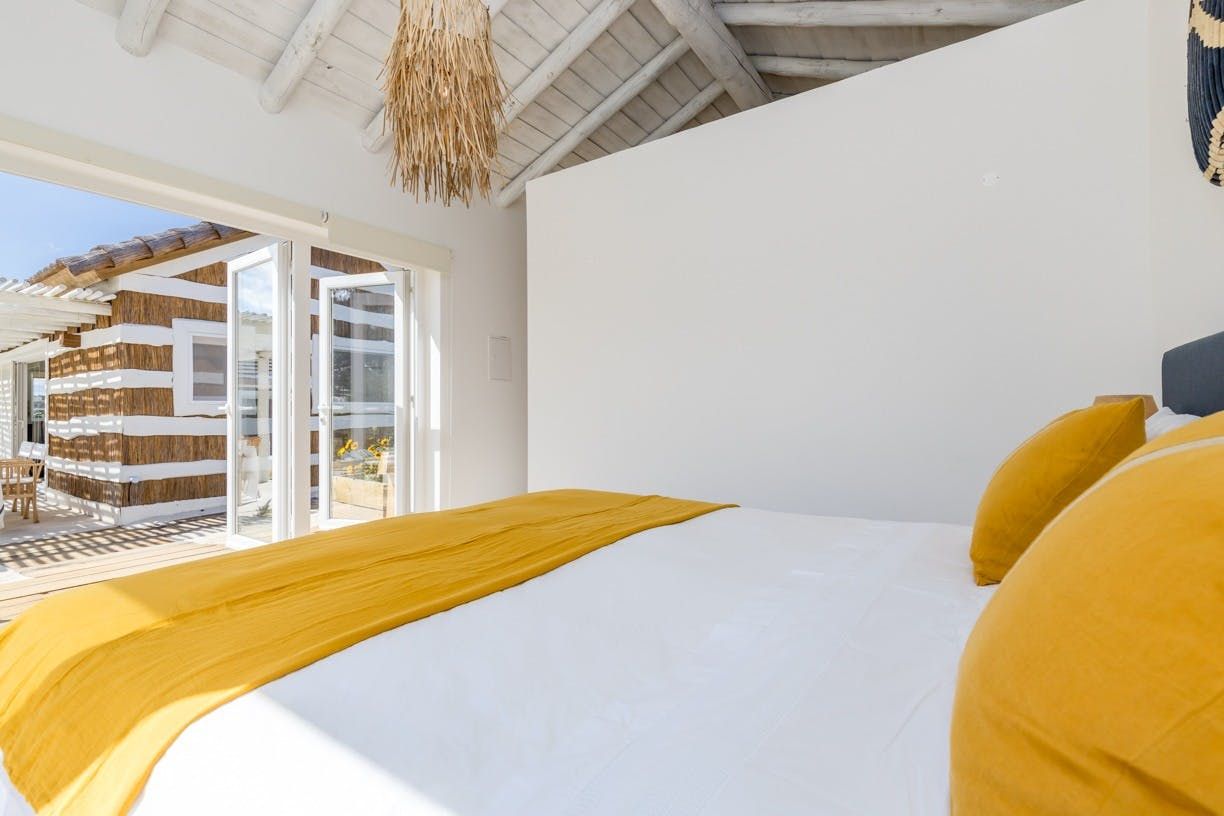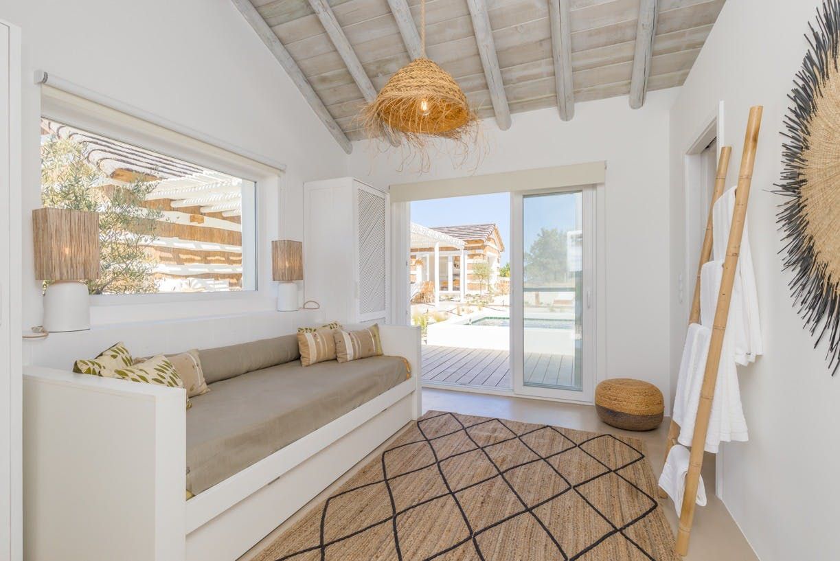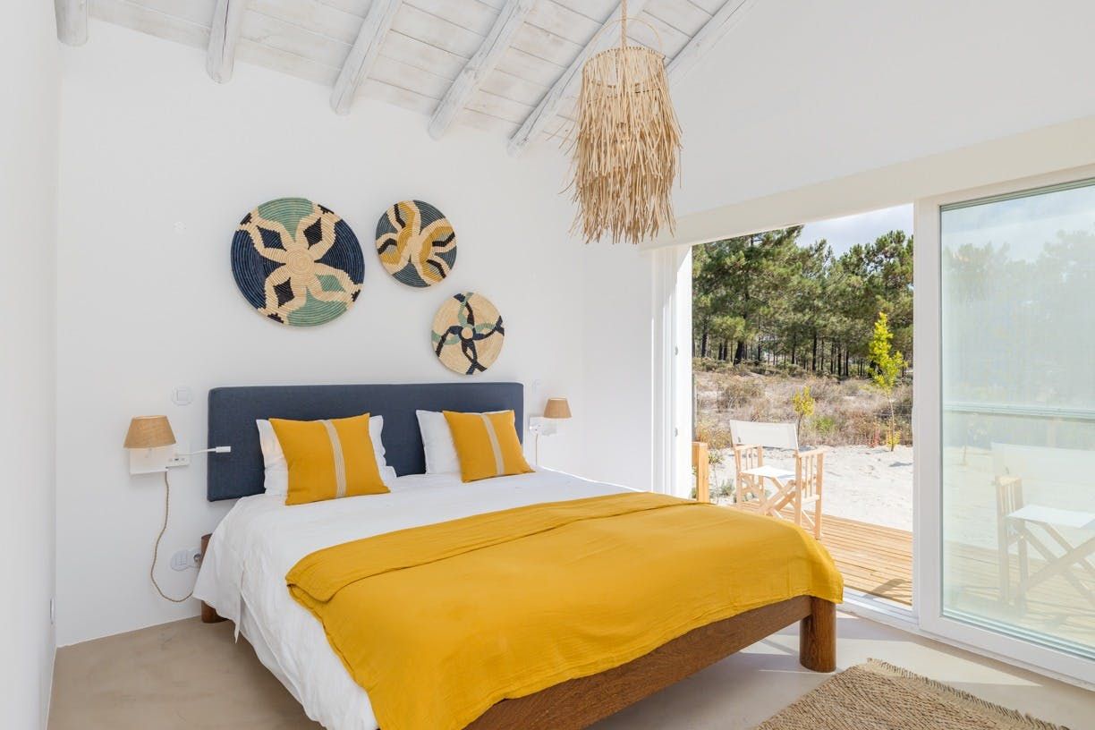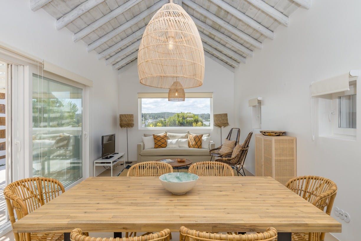 Interior spaces vibe perfectly with the creative, barefoot bohemian character of Comporta. Think bleached wood, wicker furniture and earth tones that help you feel integrated into your surroundings. Each building has been designed to remove the barriers between you and the natural world, with large doors that swing out to provide seamless access to the central pool surrounded by sun loungers and a rustic pergola for outdoor dining in the shade.