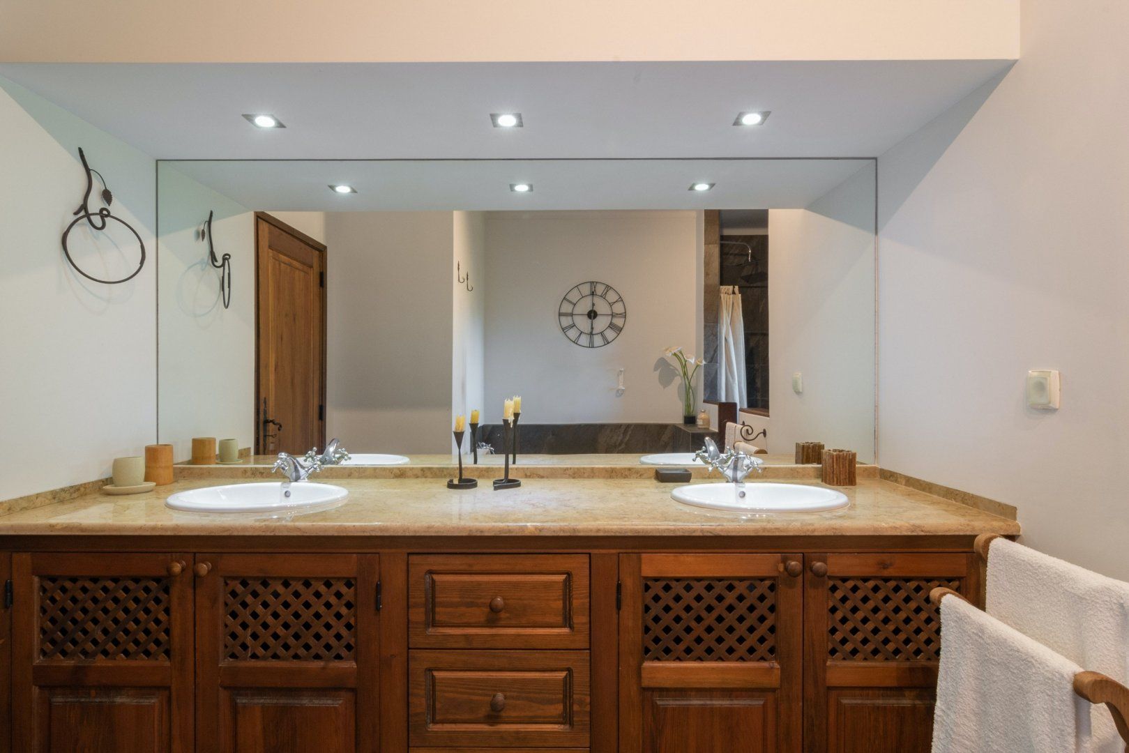 A garden brimming with trees and shrubs will be hard to ignore, but even harder still is the private pool set in the centre of it. When you’re not at the beach, this will be your prime defence against the sun’s warming gaze. Grab a cold drink as you lounge poolside, or escape to the porch where you can choose between the swing chair, hammock, or very plush garden chair to recline in. Bring out snacks when you refill your drink and stay out even as the day gives way to a balmy evening.