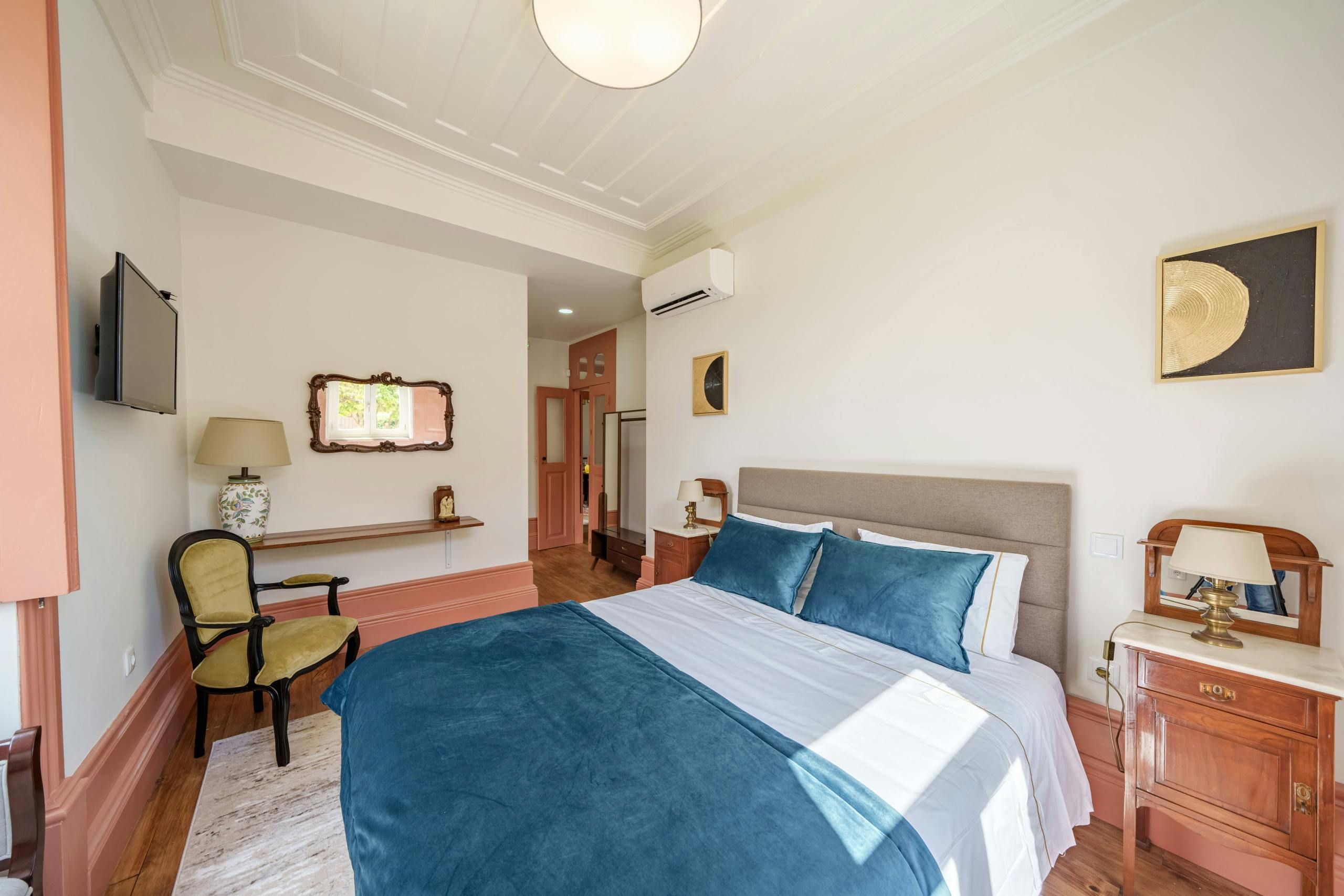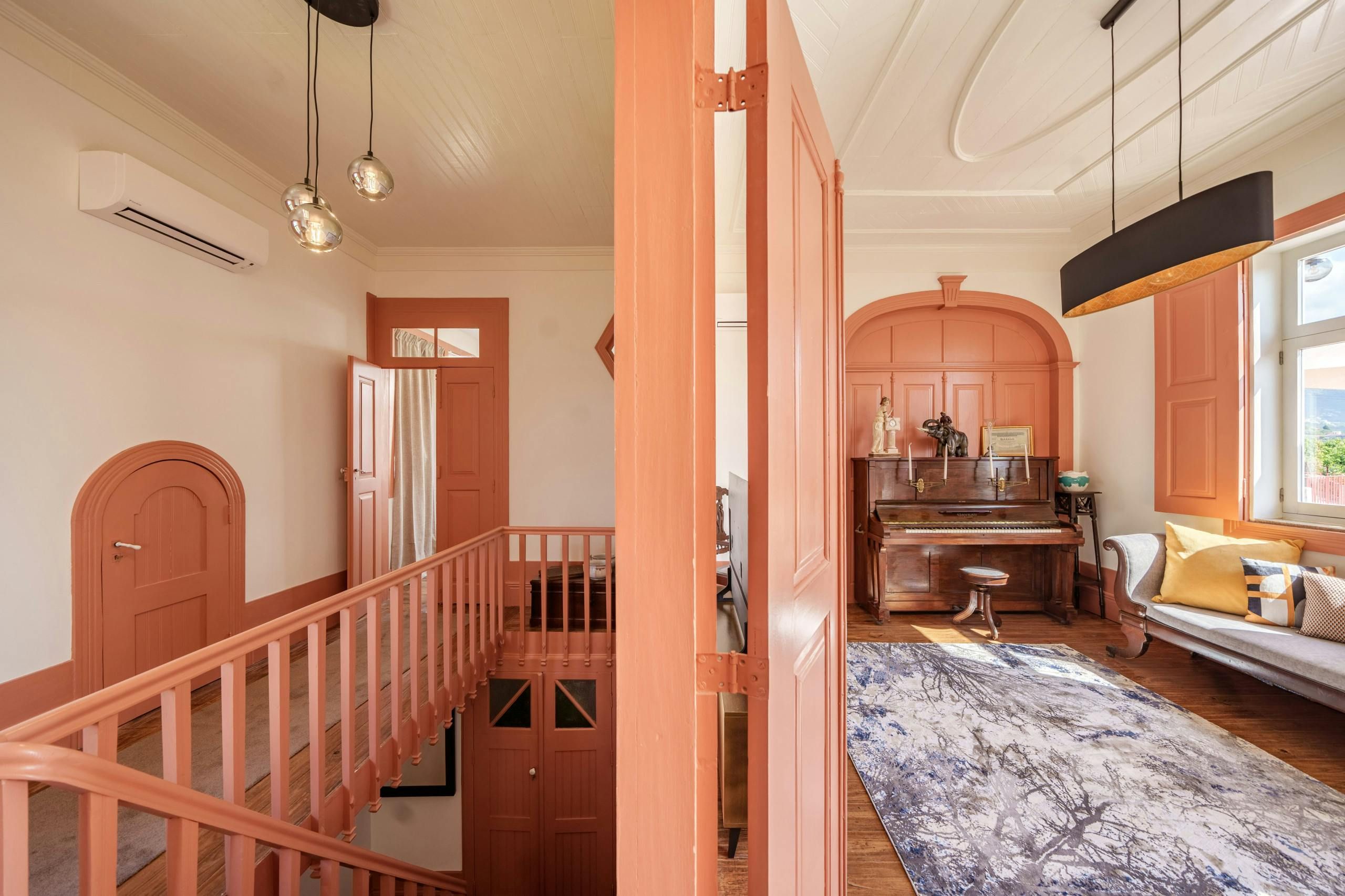 Drive up to this remarkable home and you’ll find yourself charmed from the outset. Its distinctively regional architecture – with its decorative red trim against white stucco walls – is a shining example of Portuguese eclectic design, and its unique aura continues both inside and outside its walls. Feel at home immediately with its cosy living room and its four bedrooms, each with ensuite bathroom – and relax into easy living outside, with its patios, spacious garden and the stunning swimming pool surrounded by sun loungers and umbrellas.