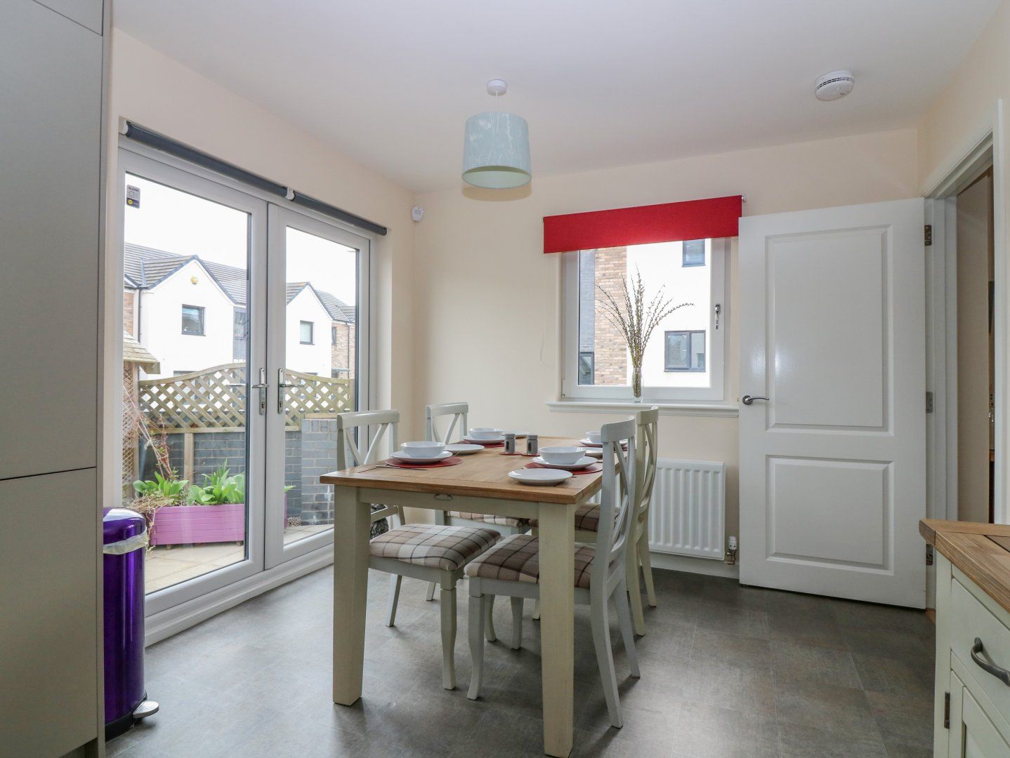 Holiday home The kitchen/diner is equipped with an electric oven, gas hob, kettle, toaster, microwave, fridge/freezer, dishwasher and dining seating for five, the utility has a washer/dyer and the sitting room has a Smart TV. There are two double bedrooms, one with an en-suite, along with a twin and a bathroom. Outside, there is an enclosed rear garden with lawn, furniture, along with off-road parking for 2 cars. WiFi, fuel, power, bed linen and towels are all included in the rental price. There is a travel cot and highchair available. For your local conveniences, you'll find a shop within 0.2 miles and a pub within 0.7 miles. One well-behaved pet is welcome, however, smoking is not permitted. Embark on a Scottish adventure for six with a stay at 10 Goodhope Gardens.