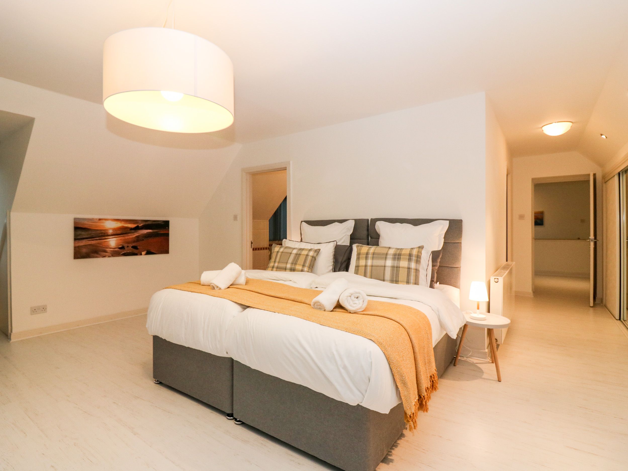 Accomodation Details Five bedrooms: 2 x king-size, 1 x twin with balcony, Small open en-suite shower, basin and WC, 1 x twin with en-suite walk-in shower, basin and WC, 1 x single. Bathroom with bath, hand held shower, basin and WC. Ground-floor wet room with shower and heated towel rail. Ground-floor sauna. Cloakroom with basin and WC. Kitchen/diner with open fire. Utility. Sitting room with woodburning stove. Sitting room. Snug with open fire