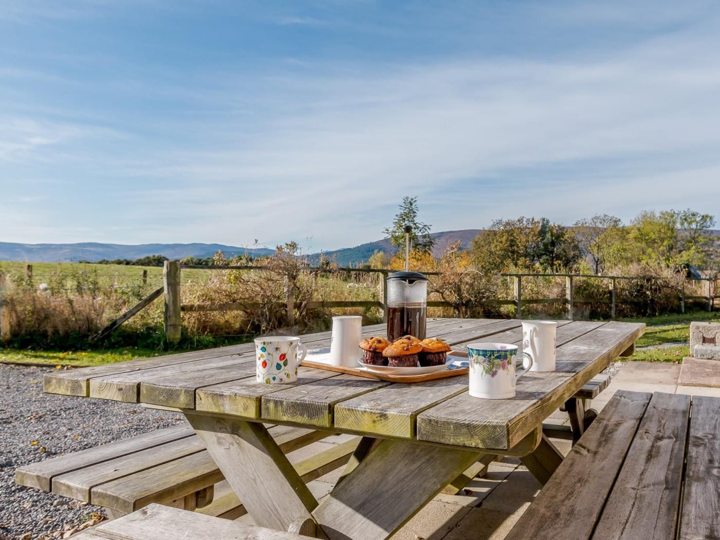 The Victorian village of Ballater known as the jewel of the Cairngorms is within easy reach and the picturesque villages of Tarland with its beautiful golf course and Aboyne are both close at hand. The wonderful River Dee is also close by, renowned for its excellent salmon and trout fishing.