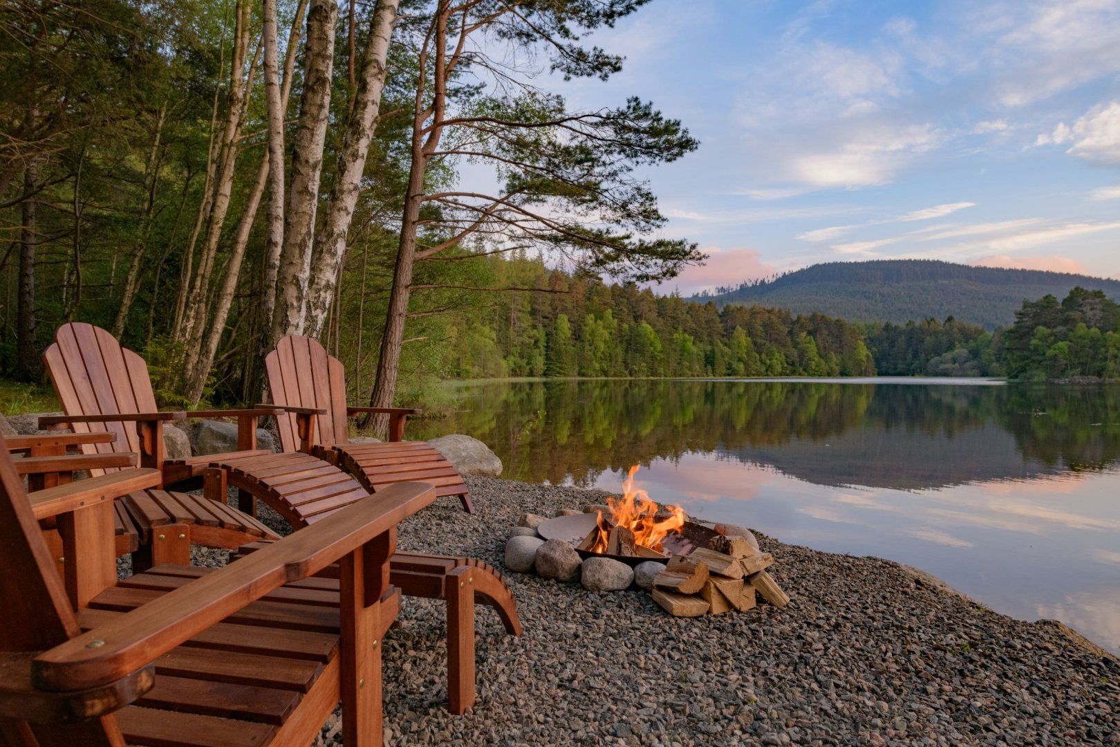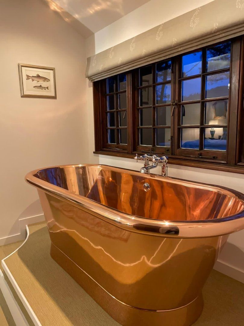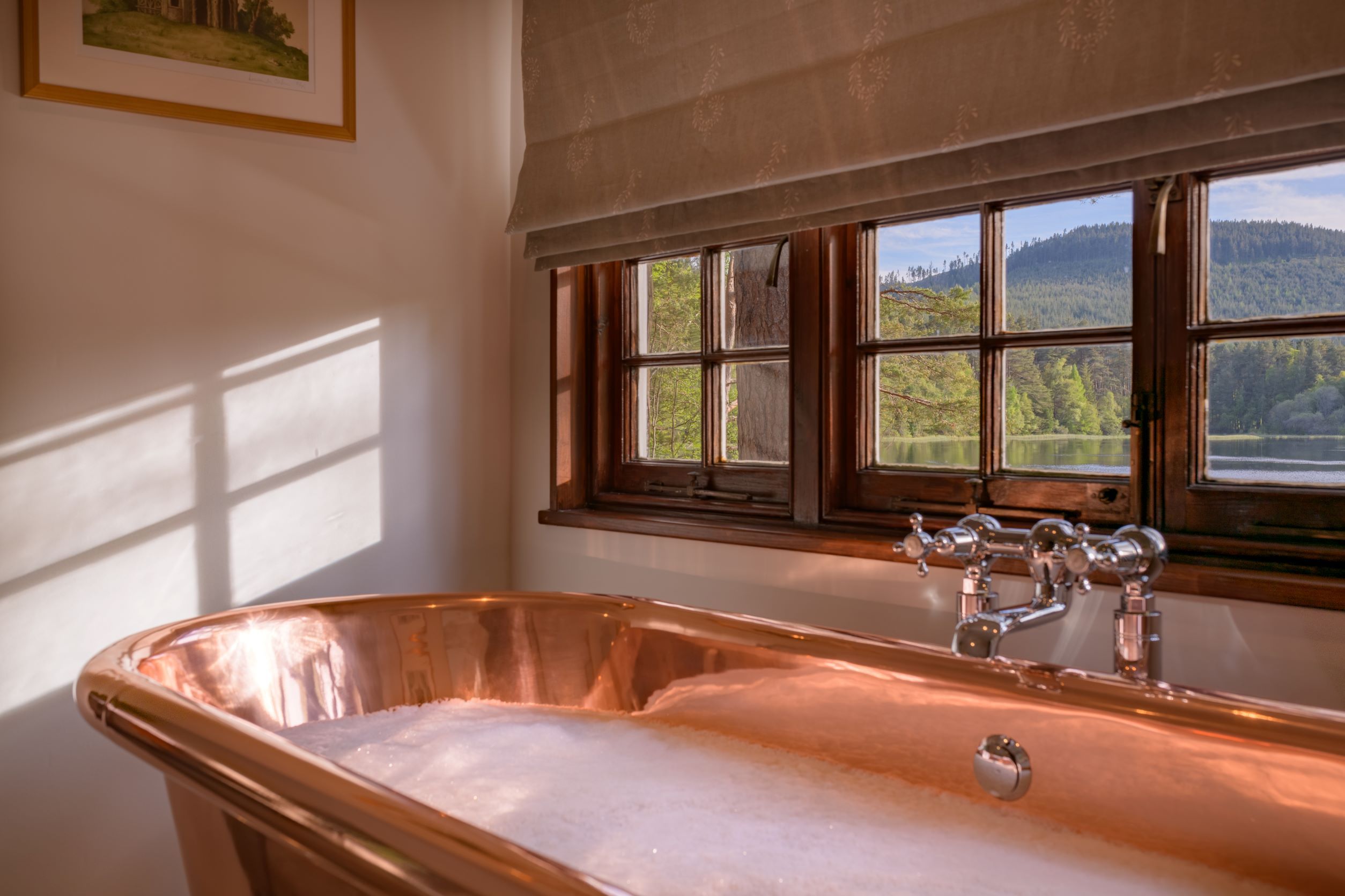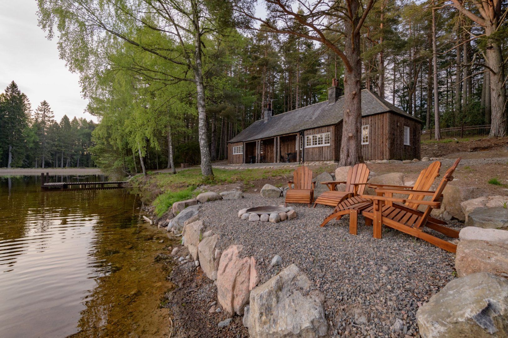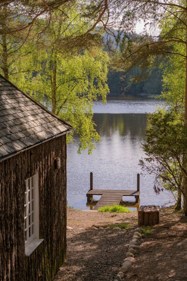 On the banks of a secluded loch near Aboyne, this beautiful cabin comes with a beautiful story. It was originally built in the 1920s by Viscountess Cowdray, a close friend of Queen Mary. Choosing it as the perfect spot between her home and the royal estate at Balmoral, it was built so the two women could regularly meet and take tea by the water together. Sitting here, in the peaceful Aberdeenshire countryside, it's not hard to see what attracted them. The setting, overlooking the loch, and surrounded by tall pines is a truly inspirational one, and whether you're here in the middle of summer or the winter, the views from the home are second to none. Despite its rustic charm and rough Scots pine exterior, the cabin has been renovated to create a luxurious home, with antique furnishings, a log fire and vintage art. There's a modern country-style kitchen with everything you could need and two comfortable bedrooms. And who wouldn't fall in love with the huge freestanding copper bathtub in the master bedroom? Outside, hike in the woods, swim from the little jetty, fish in the nearby River Dee or watch wildlife from the veranda – visitors regularly see deer and osprey by the loch. And despite its private setting, this amazing place is just a fifteen-minute walk from the village pub across the river.