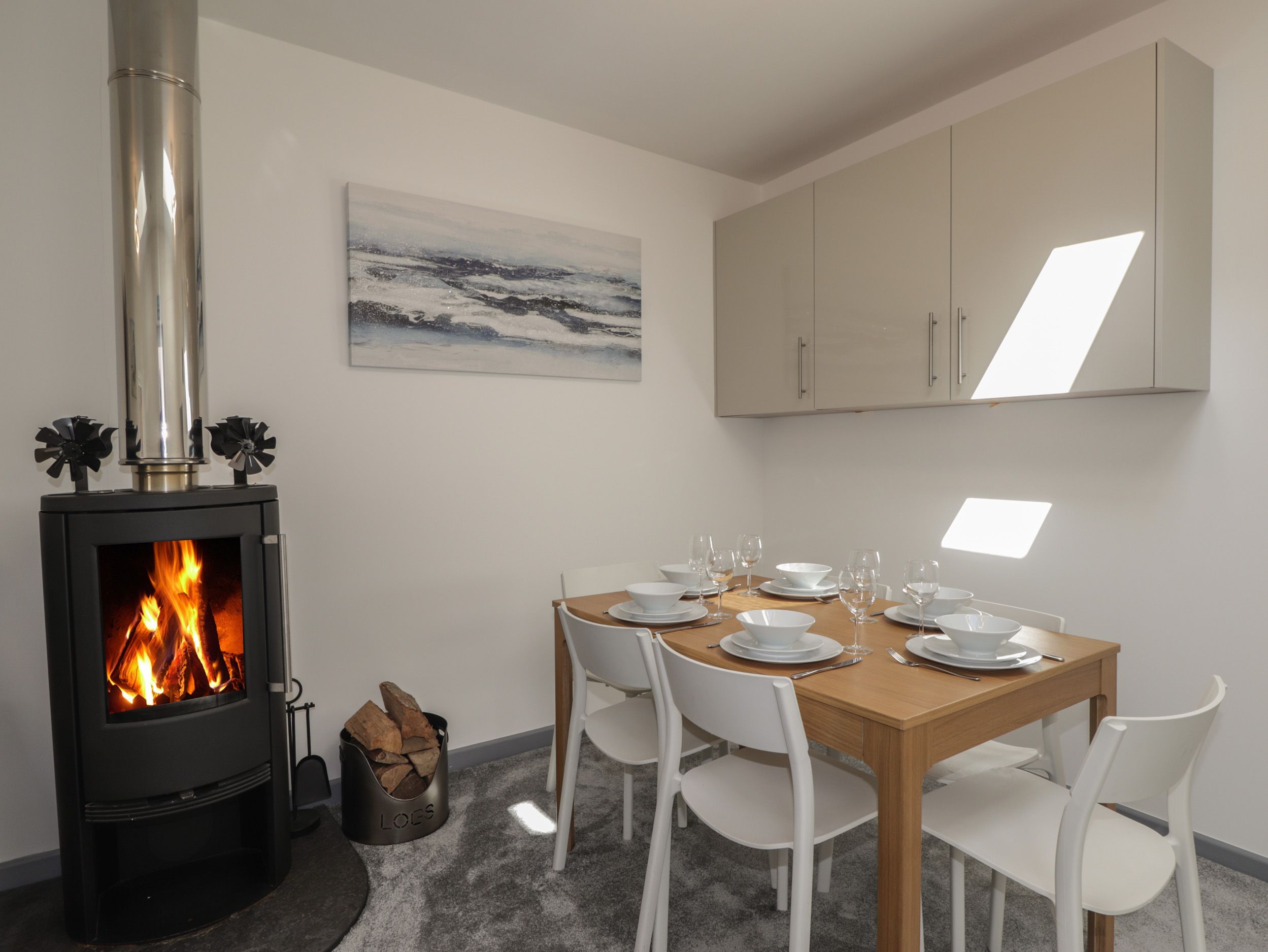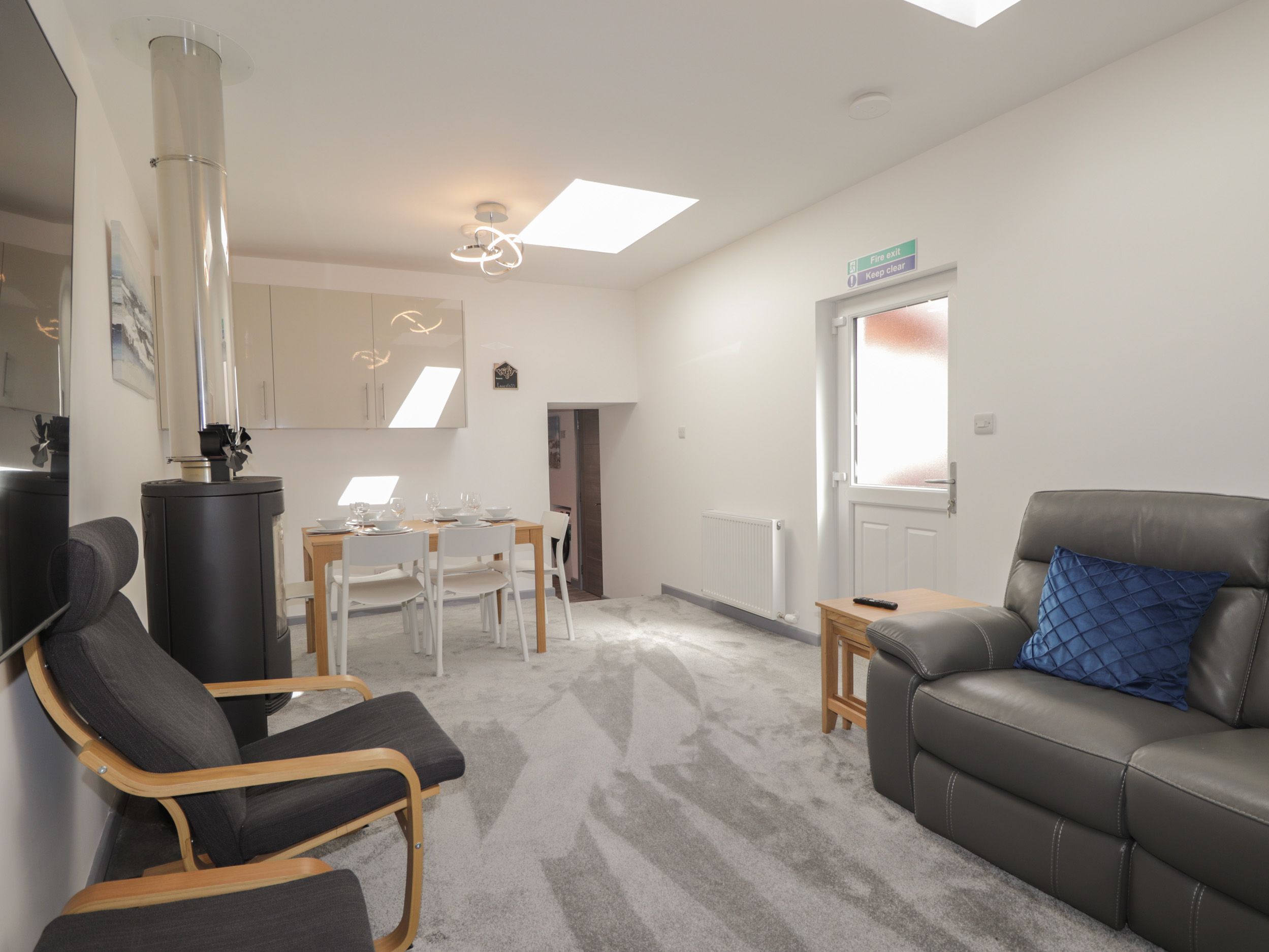 Accomodation Details Three bedrooms: 1x Super king, 1x King, 1x Twin. Ground-floor bathroom with shower over bath, basin and WC. Shower room with walk-in shower, basin and WC. Kitchen. Living/dining room with woodburning stove