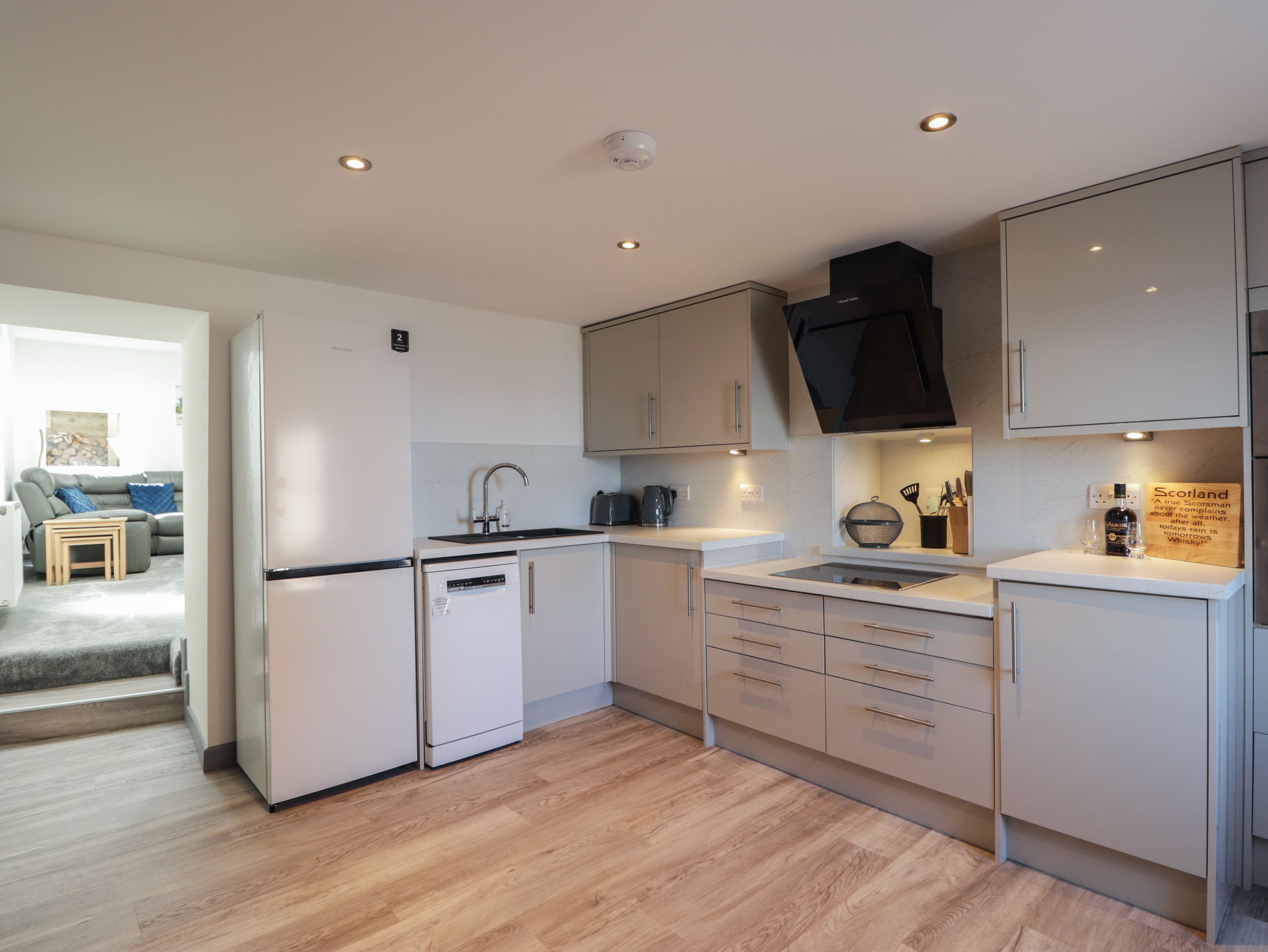 Holiday home The living areas include a kitchen housing an oven and hob, microwave, fridge/freezer, dishwasher, washing machine and a living/dining room with TV and dining area. The bedrooms include two doubles and a twin, serviced by a bathroom and shower room. This property does not accept pets or smoking. Within 4 miles there is a shop, 0.1 miles a pub and 1.4 miles, a beach. WiFi, fuel, power, bed linen and towels are all included in the price. The Laurels is a wonderful base in Scotland, whatever time of year.