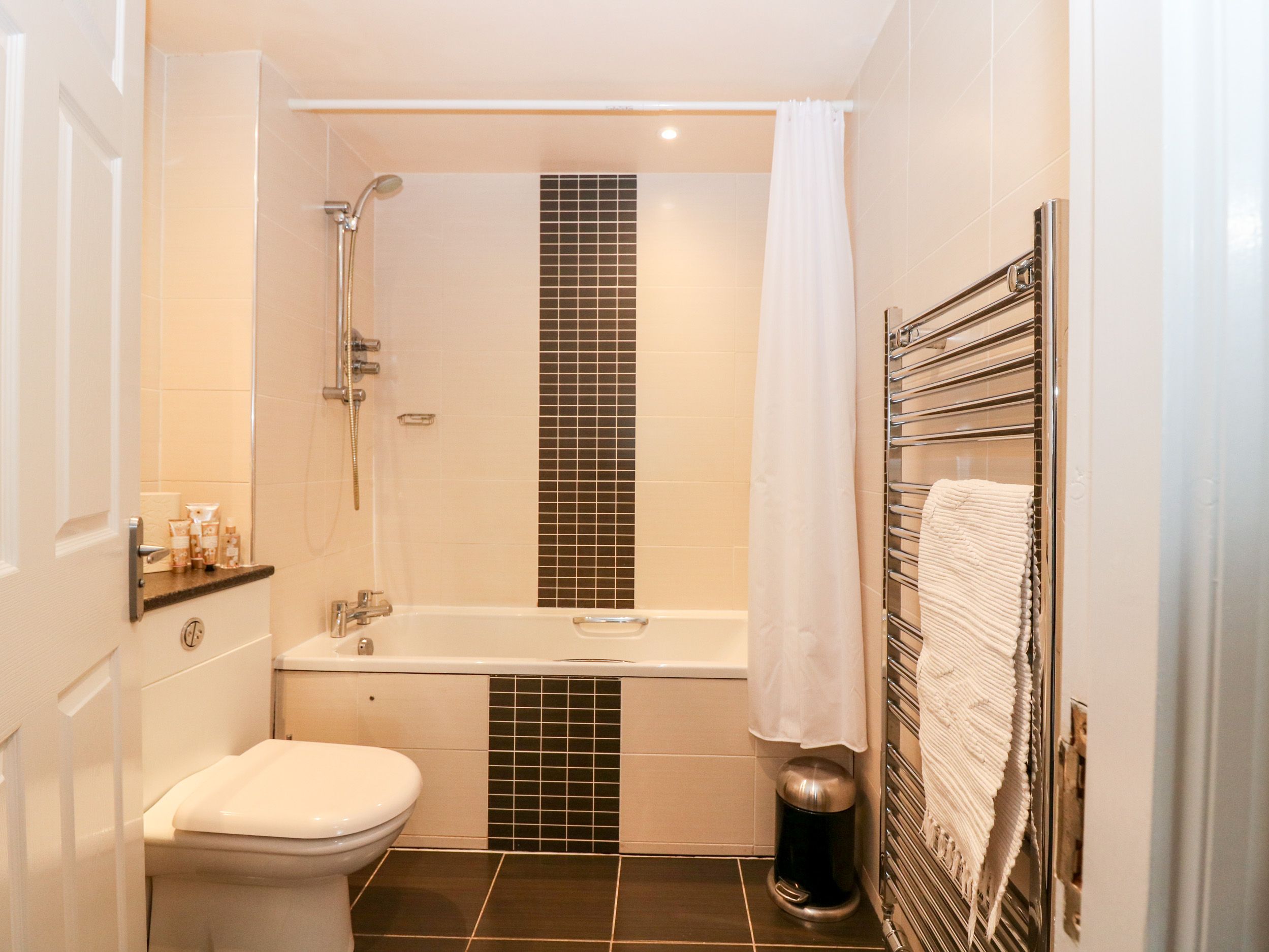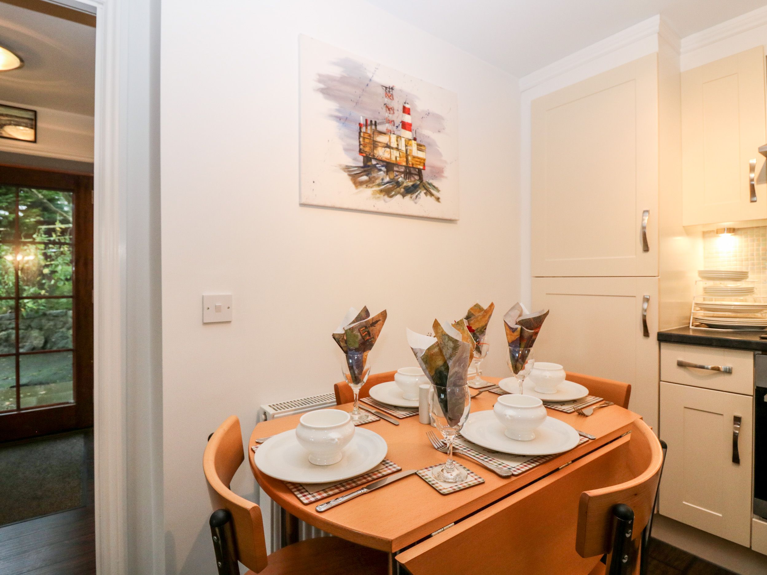 Accomodation Details Two bedrooms: 1 x double with balcony, 1 x twin. Ground-floor bathroom with bath, shower over, basin and WC. Open-plan living space with kitchen, dining and sitting area