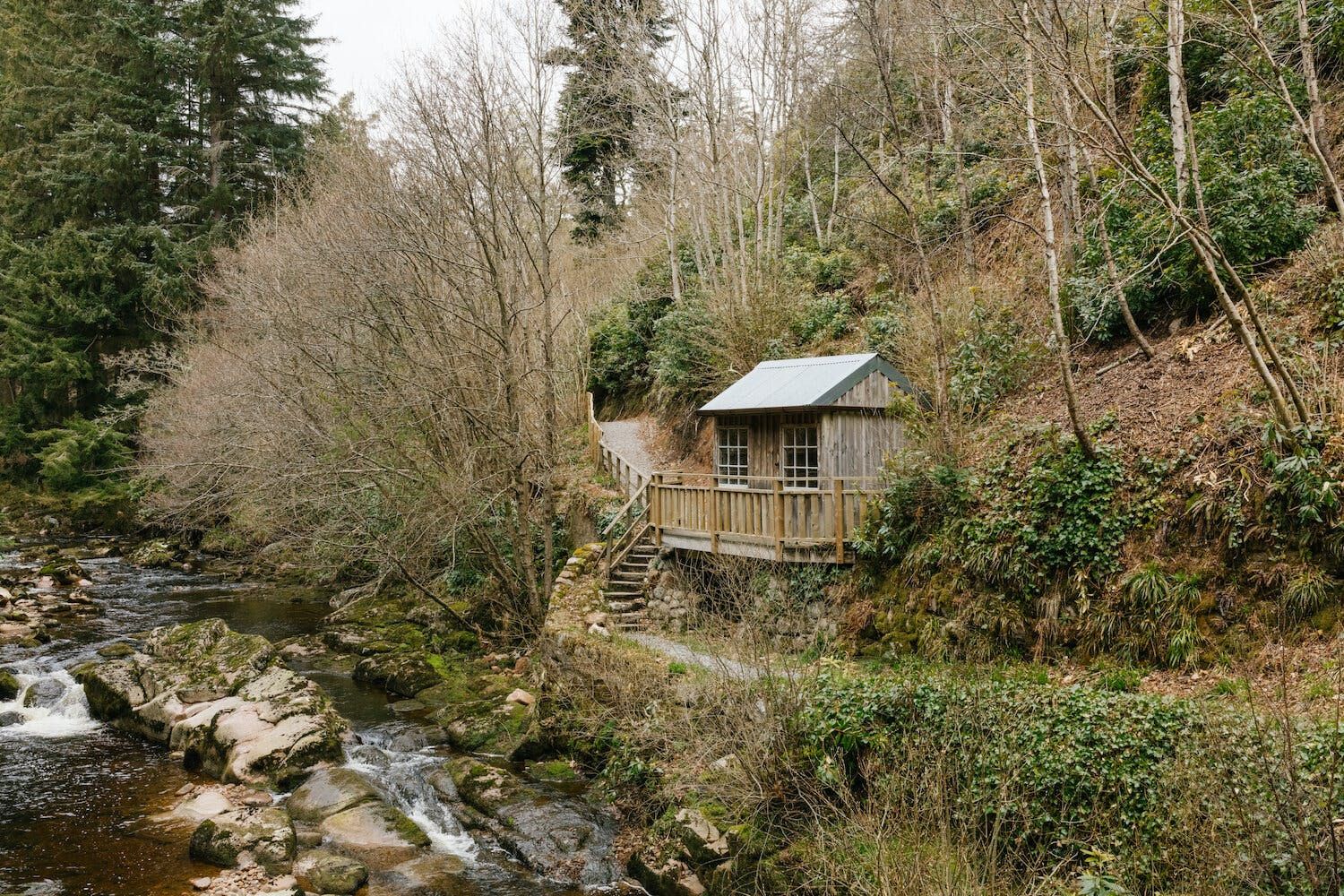 Outside, wander along the private footpath to the River Cabin where you can spend the day wild swimming and cooking – there’s a wood–burning stove and a Big Green Egg (described as the best barbecue in the world). You can also walk for miles through the wilderness and visit the resident BYOB pub.