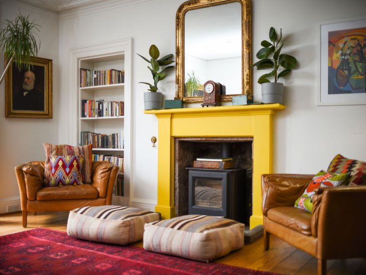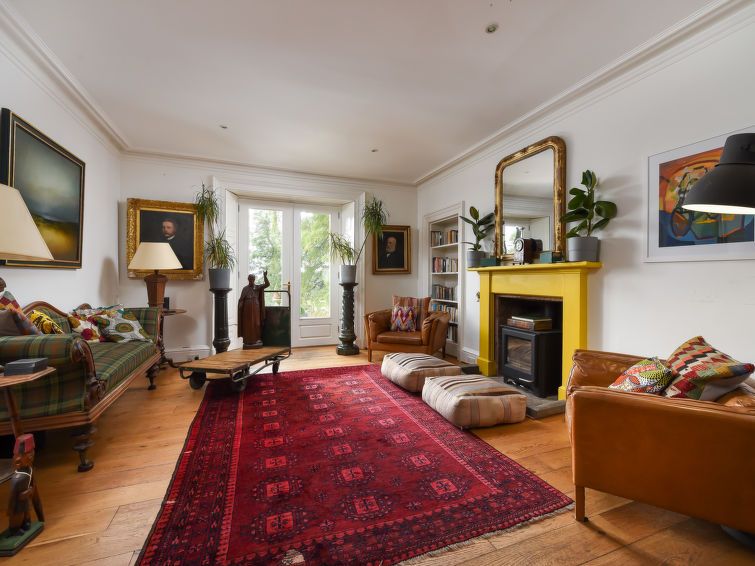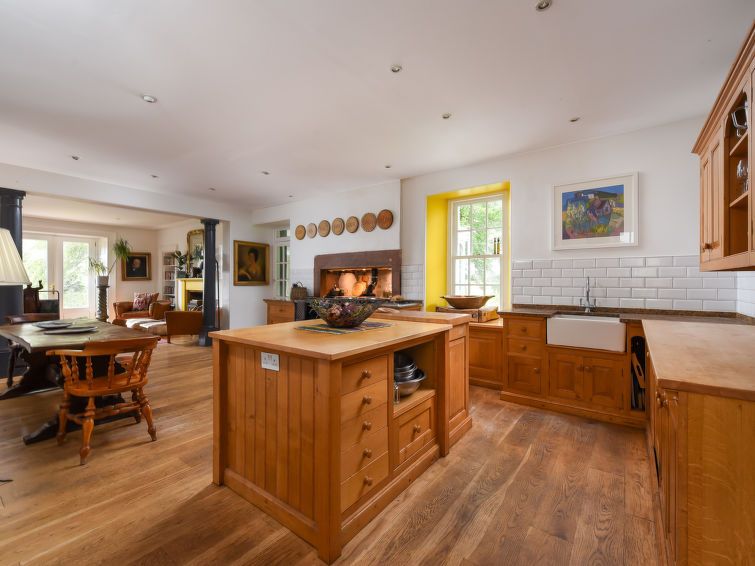 6-room house on 2 levels. Spacious, beautiful and luxurious furnishings: open large living/dining room with heating stove. Exit to the garden. Dining room with open-hearth fireplace and dining table. Lounge with library and wood-burning stove. Large kitchen-/living room (2 hot plates, oven, dishwasher, toaster, kettle, freezer, cooking island) with dining table.