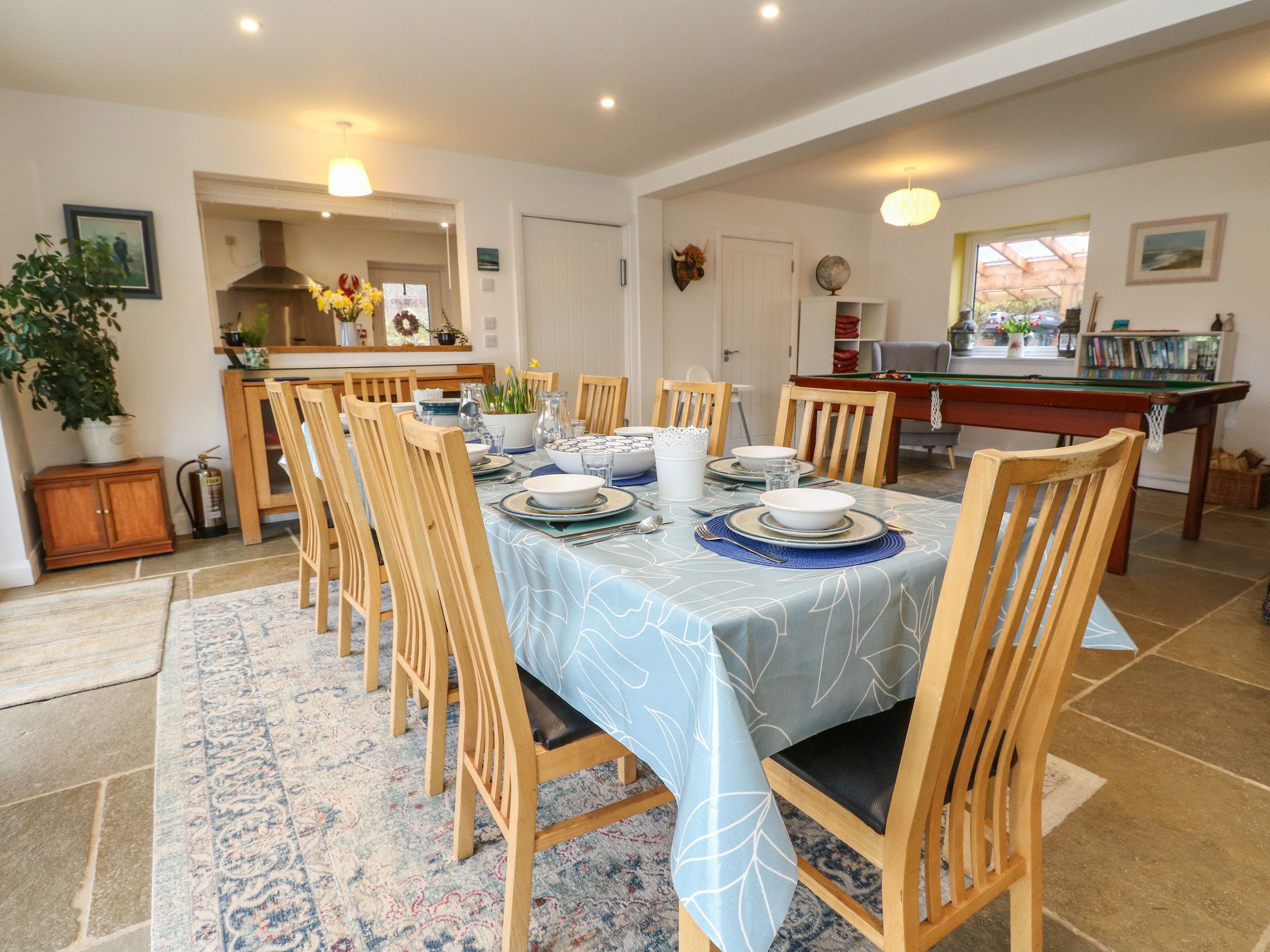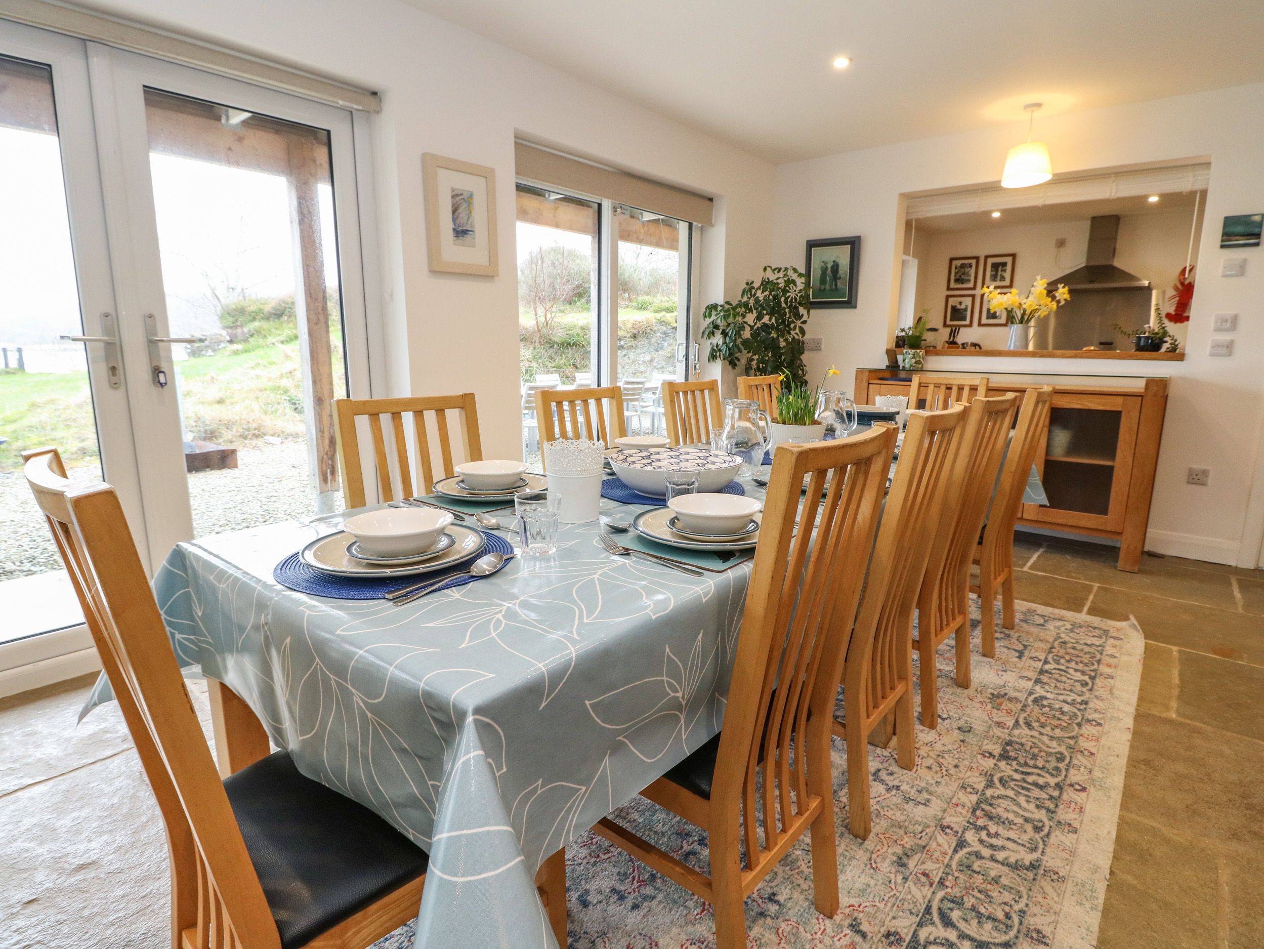 Accomodation Details Four bedrooms: 2 x king-size with TV and en-suite walk-in shower, basin, and WC, 1 x twin with TV, 1 x family with king-size, single, TV, and en-suite shower room with walk-in shower, basin, and WC. Ground floor single bedroom, with access to disabled bathroom. Bathroom with bath, shower over, basin, and WC. Ground-floor wet room with walk-in shower, basin, and WC. Kitchen. First-floor utility. Living/dining room with woodburning stove
