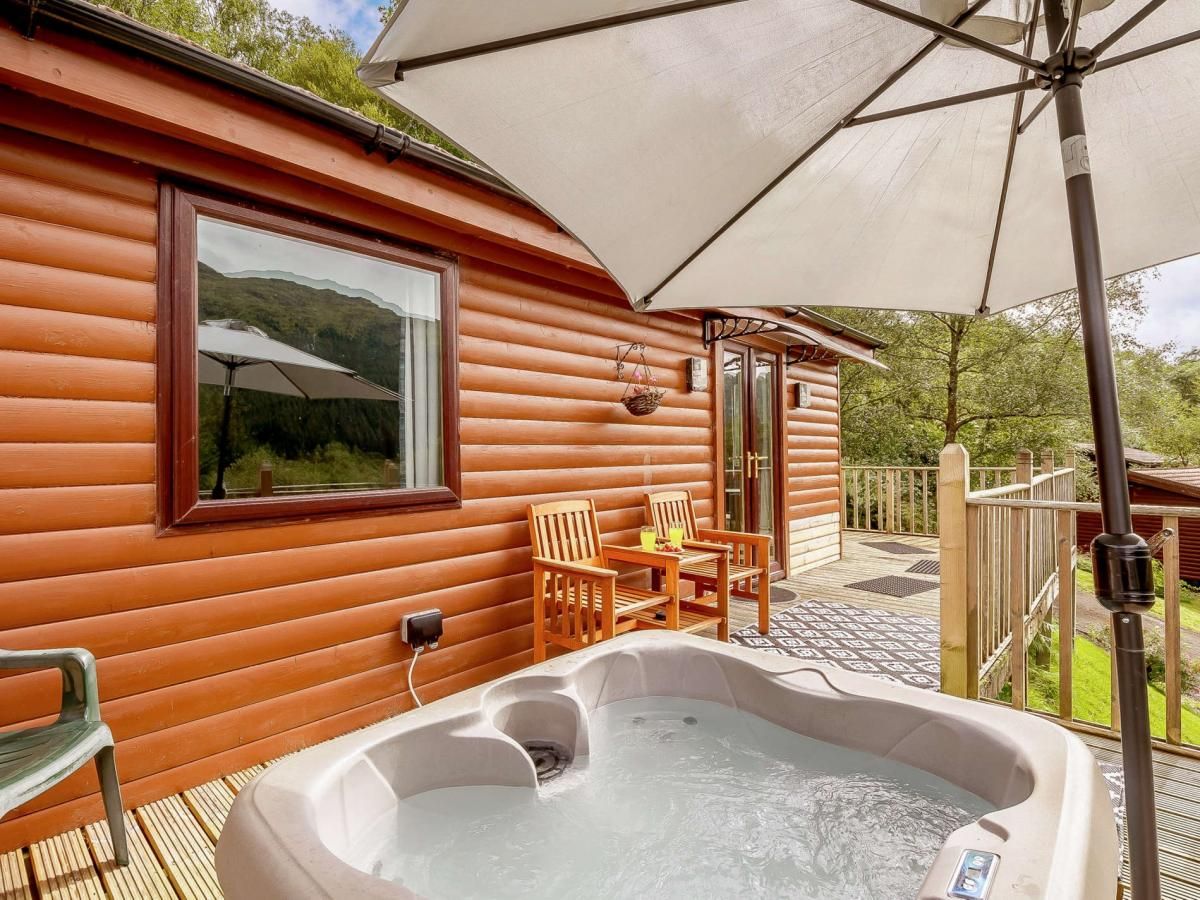 Perched among wooded hillside surroundings, this charming cabin offers breathtaking views over Loch Eck and the majestic Beinn Mhor mountains.