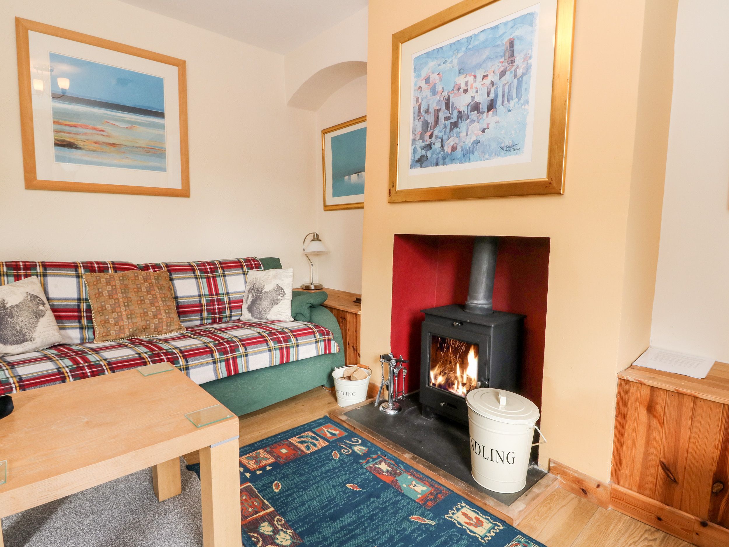 The weather was really very bad indeed, so it was a good excuse to relax, do the crossword, watch box sets etc. in front of a lovely wood burning stove, enjoying the paintings. Being right beside the canal was great, and we did manage one very windy walk along its banks. Lunch at the Crinan Hotel was a great treat and view from the Gallery Bar was outstanding.