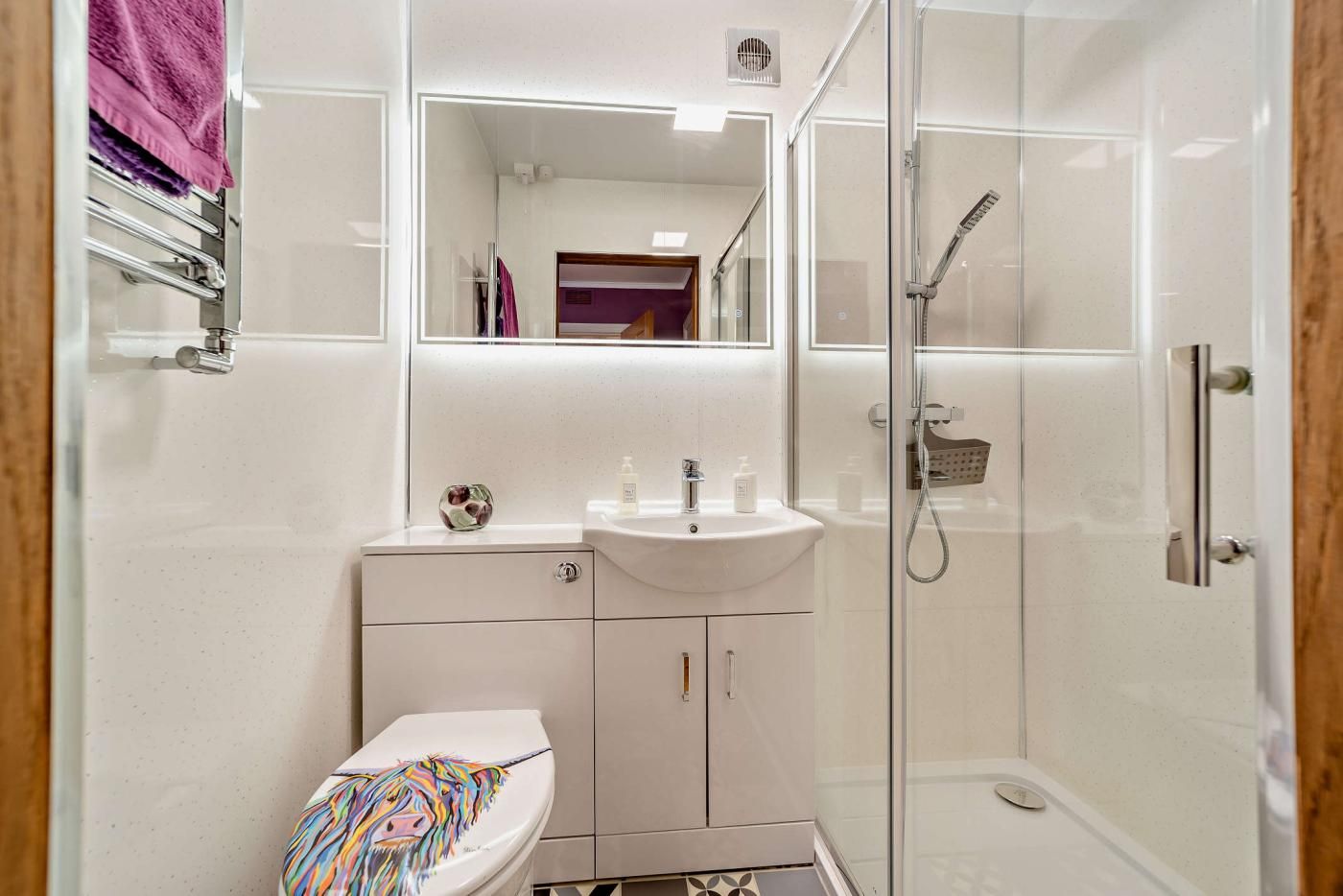 Surrounded by beautiful mountains and forests, it’s an ideal place for hiking, cycling and water-based activities. The Cormonachan woodland walk runs behind the property and Carrick Castle is along at the end of the road (2.