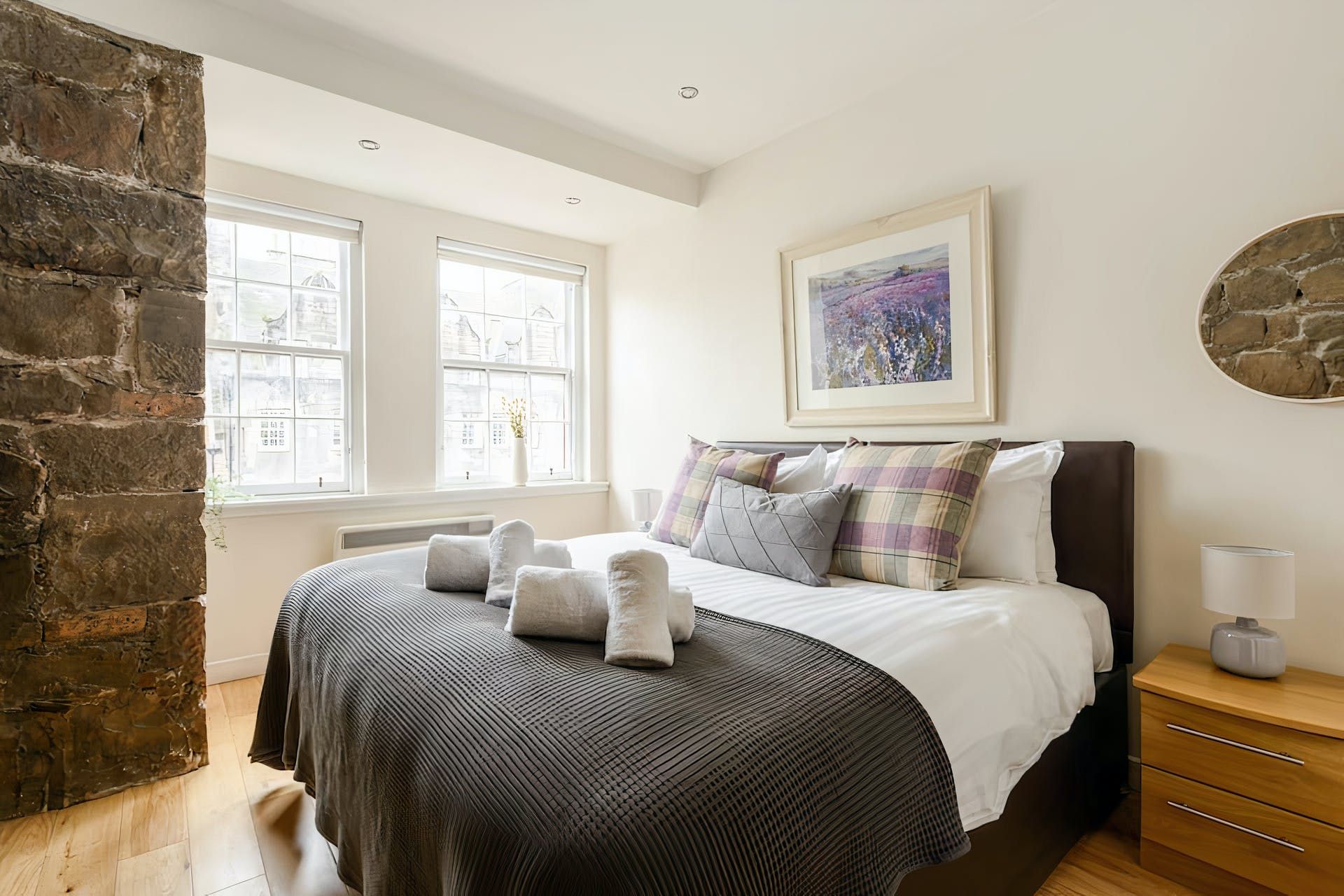 Take in the wonderful views over the Royal Mile towards Arthur's Seat from inside this charming apartment, housed in a traditional Old Town building. We love the character features here, such as the sash windows and exposed stone walls. This home is perfect for a couple or a solo traveller wanting to easily explore Edinburgh on foot.