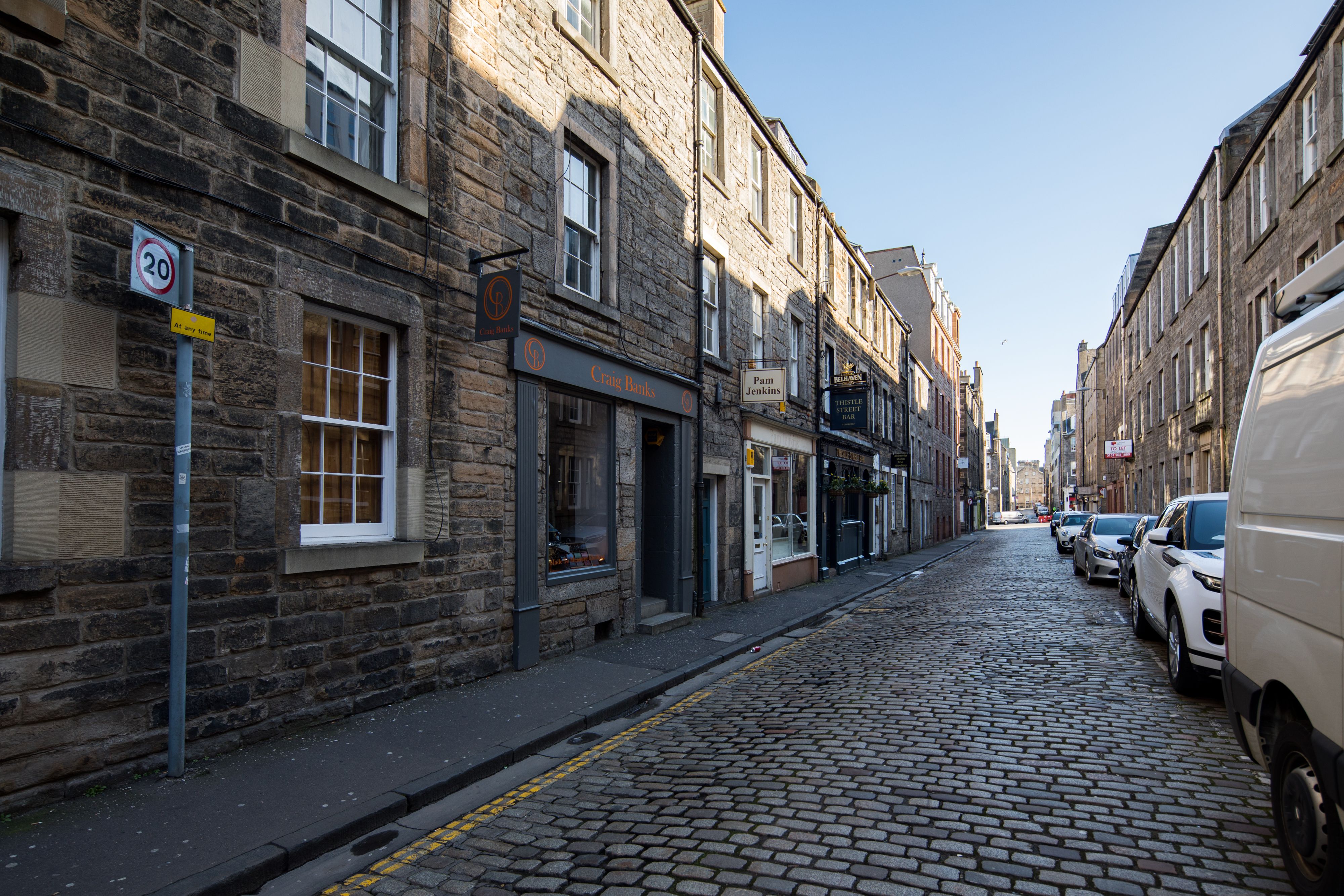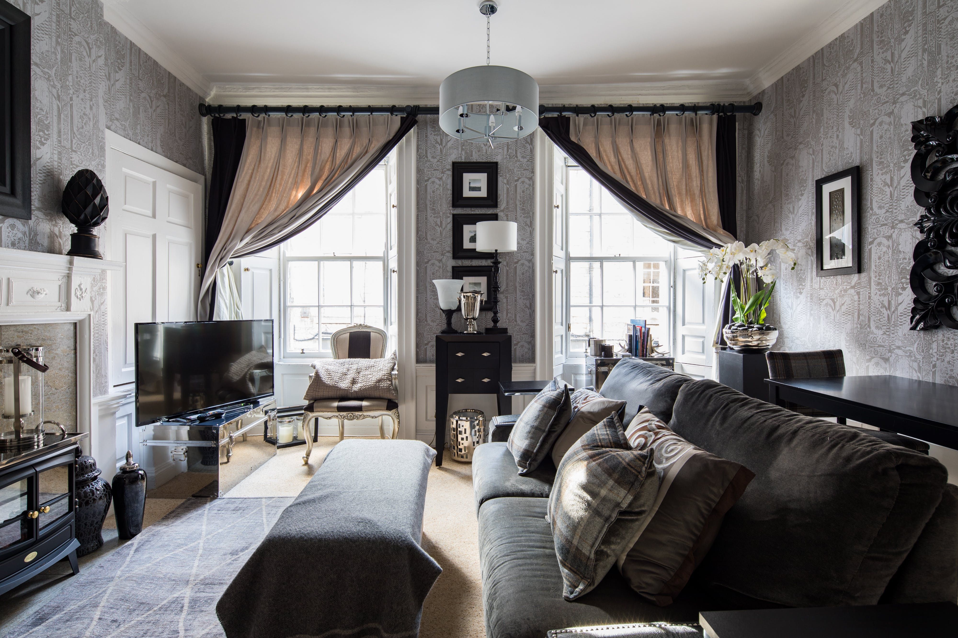 Found on a charming cobbled lane in the middle of Edinburgh's famous New Town, this apartment in a listed Georgian building has way more going for it other than its prime spot on the map. Inside, the palette of greys, blacks and dark wood give the interior the sort of character and warmth you envision from a home in the Scottish capital. Two large sash windows in the living space invite in natural light and there are several lavish touches in the interior design, from the ornate furnishings and the patterned wallpaper to the subway tile bathroom. There's a wide selection of restaurants to be found on the neighbouring Queen Street and George Street, while lots of the city's most famous attractions can be easily reached on foot — Edinburgh Castle takes just under a quarter of an hour, for instance.
