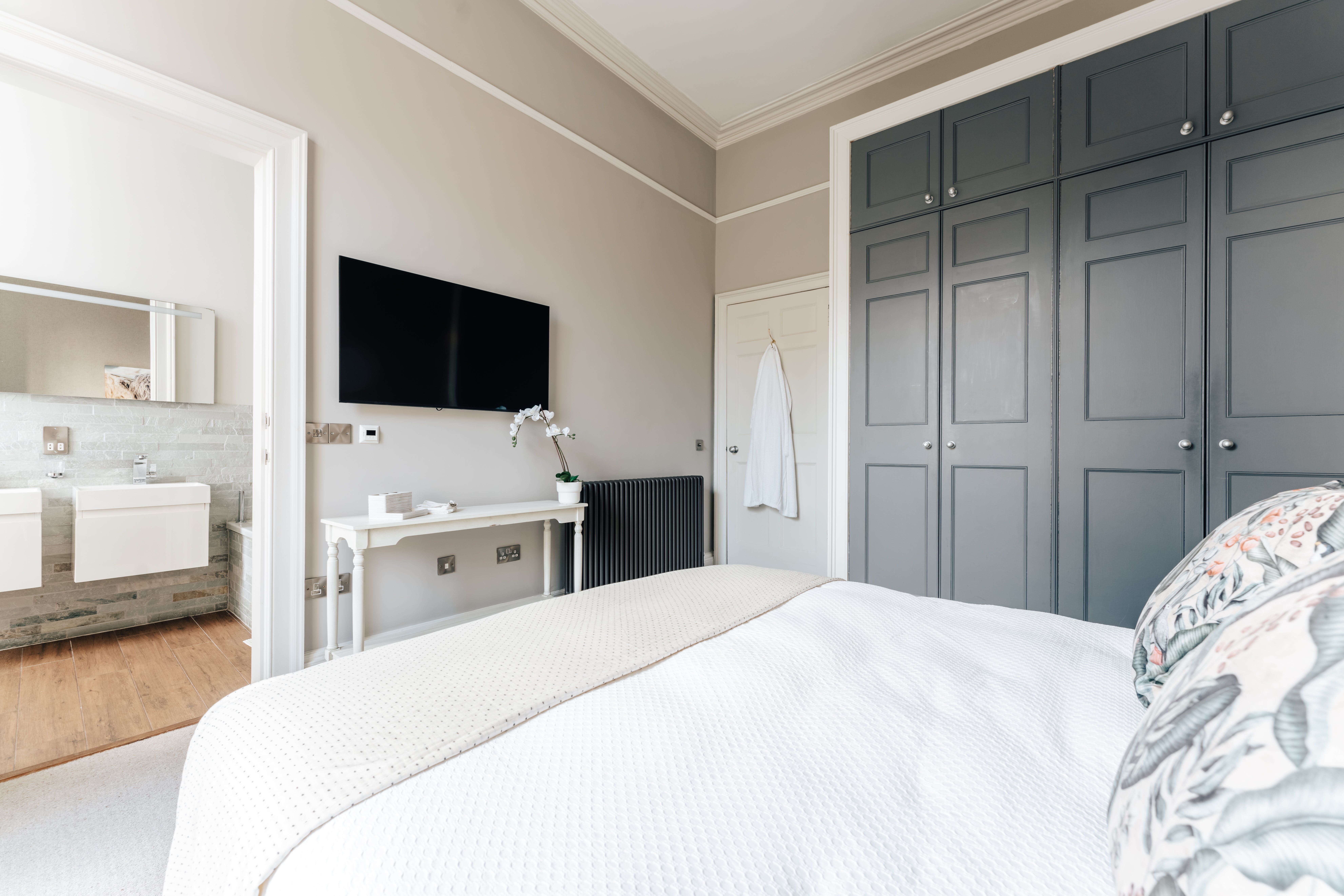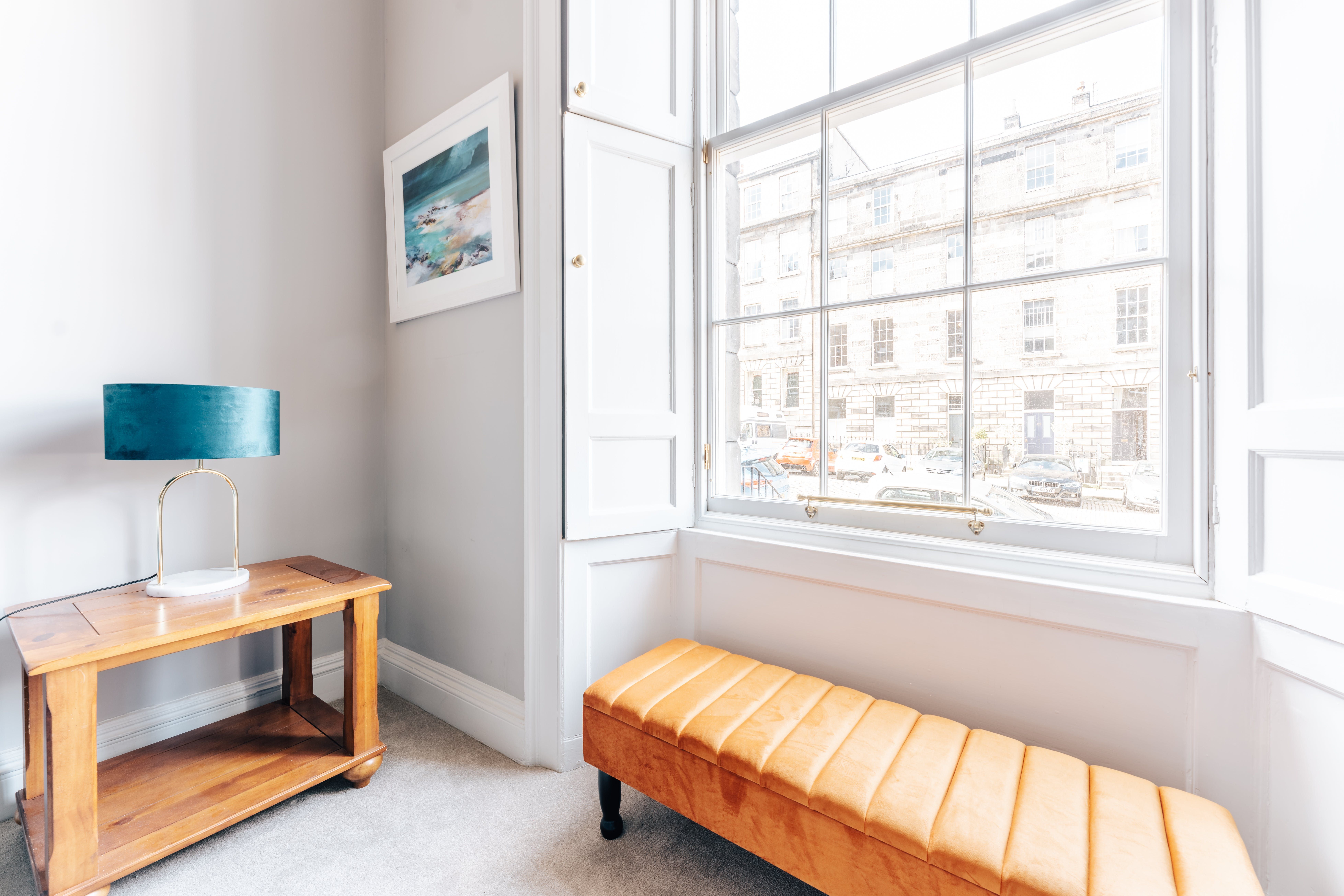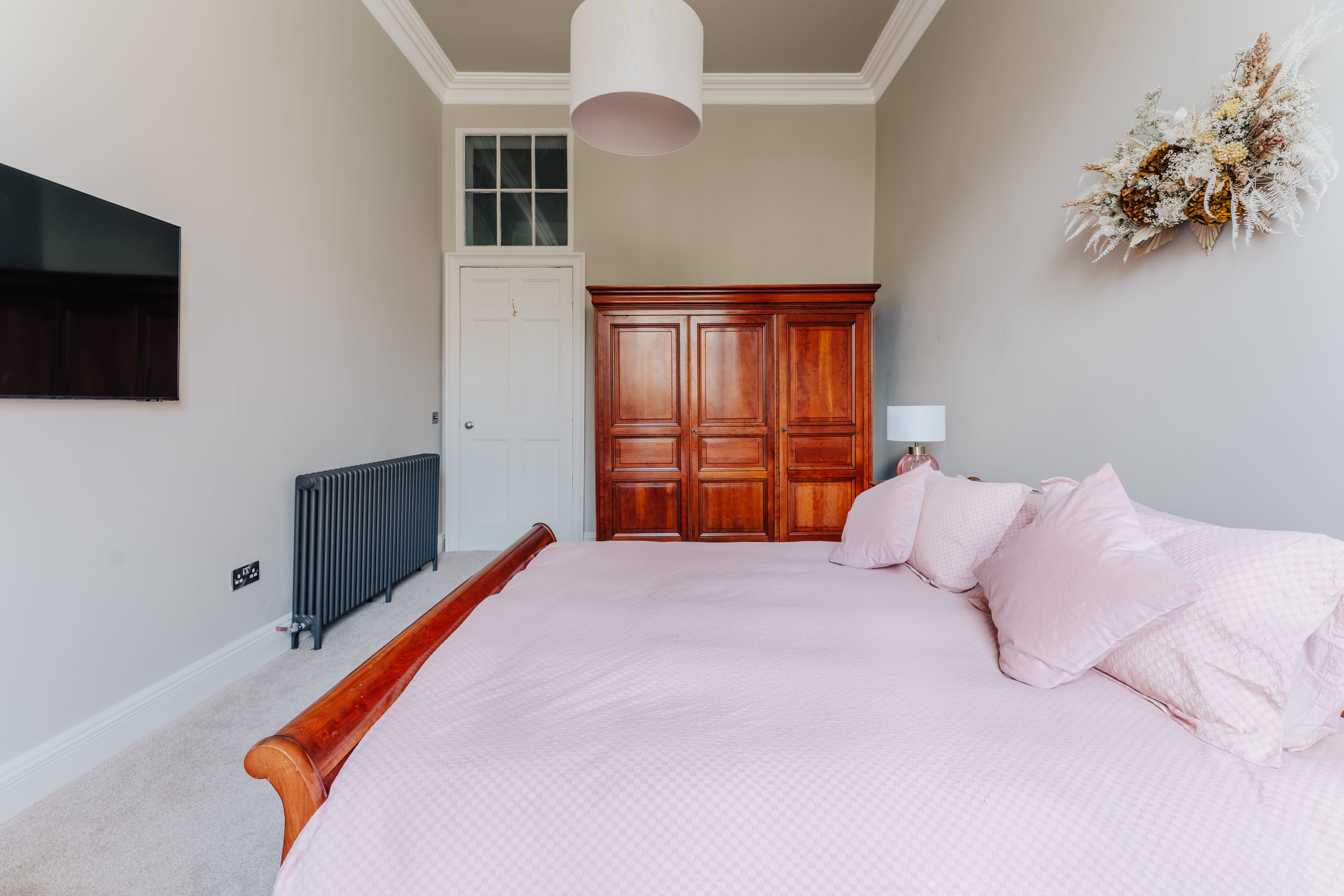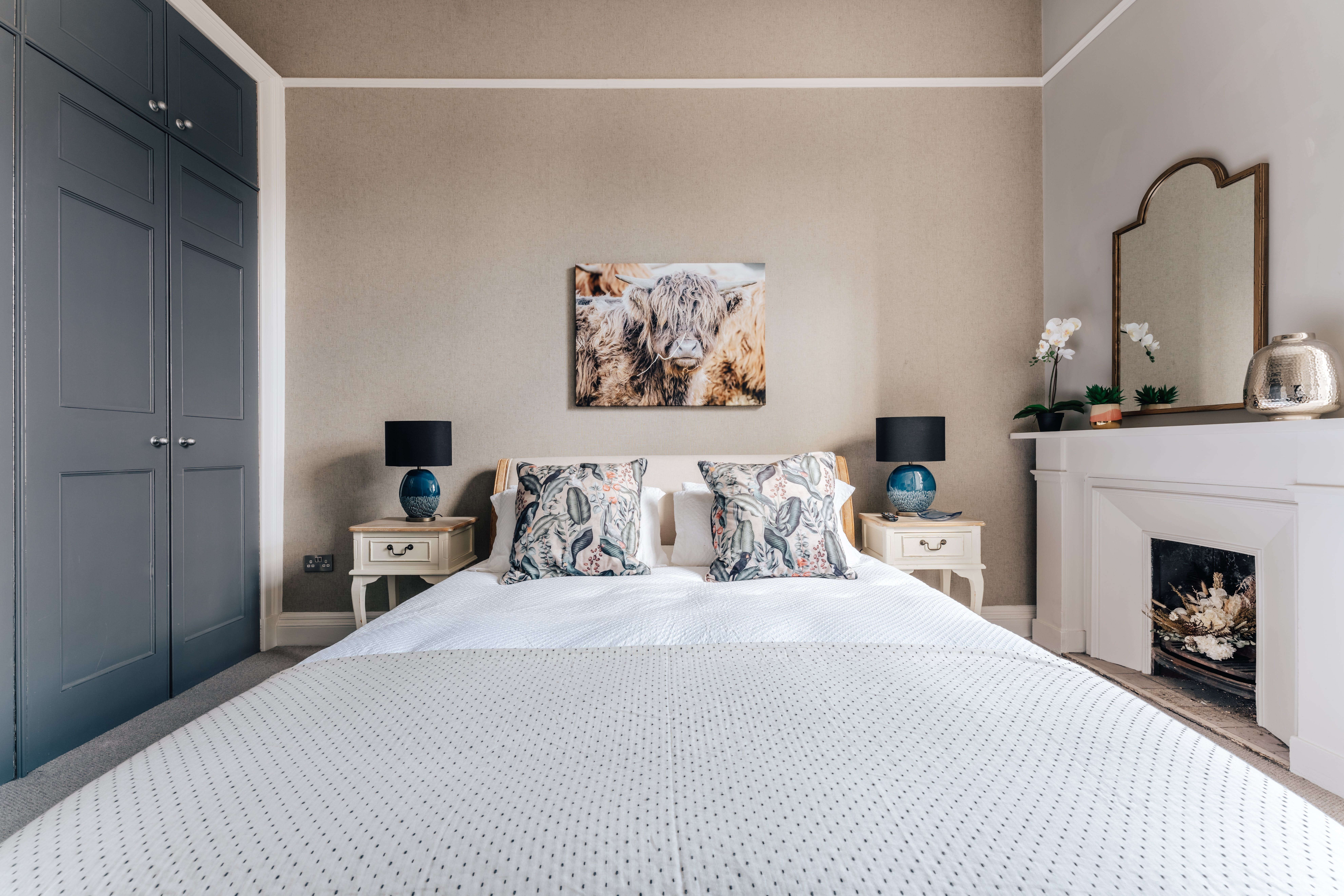 Tall corniced ceilings, wood floors and an abundance of light coming in through the sash windows create an instantly welcoming feel with chic, contemporary furnishings inviting you to make yourself at home. We love the living room’s large suede sofas that beckon relaxing evenings over a glass of wine by the period working fireplace, and the large kitchen bathed in natural light that’s ready to cater celebratory feasts aplenty. The three bedrooms, meanwhile, have each been carefully curated with a sophisticated touch and boast similarly large windows that give way to New Town views. We’re particularly fond of the main bedroom’s en-suite – a spa-like space with its rainfall shower and tempting tub, the latter providing the perfect end to a night with a glass of bubbly.