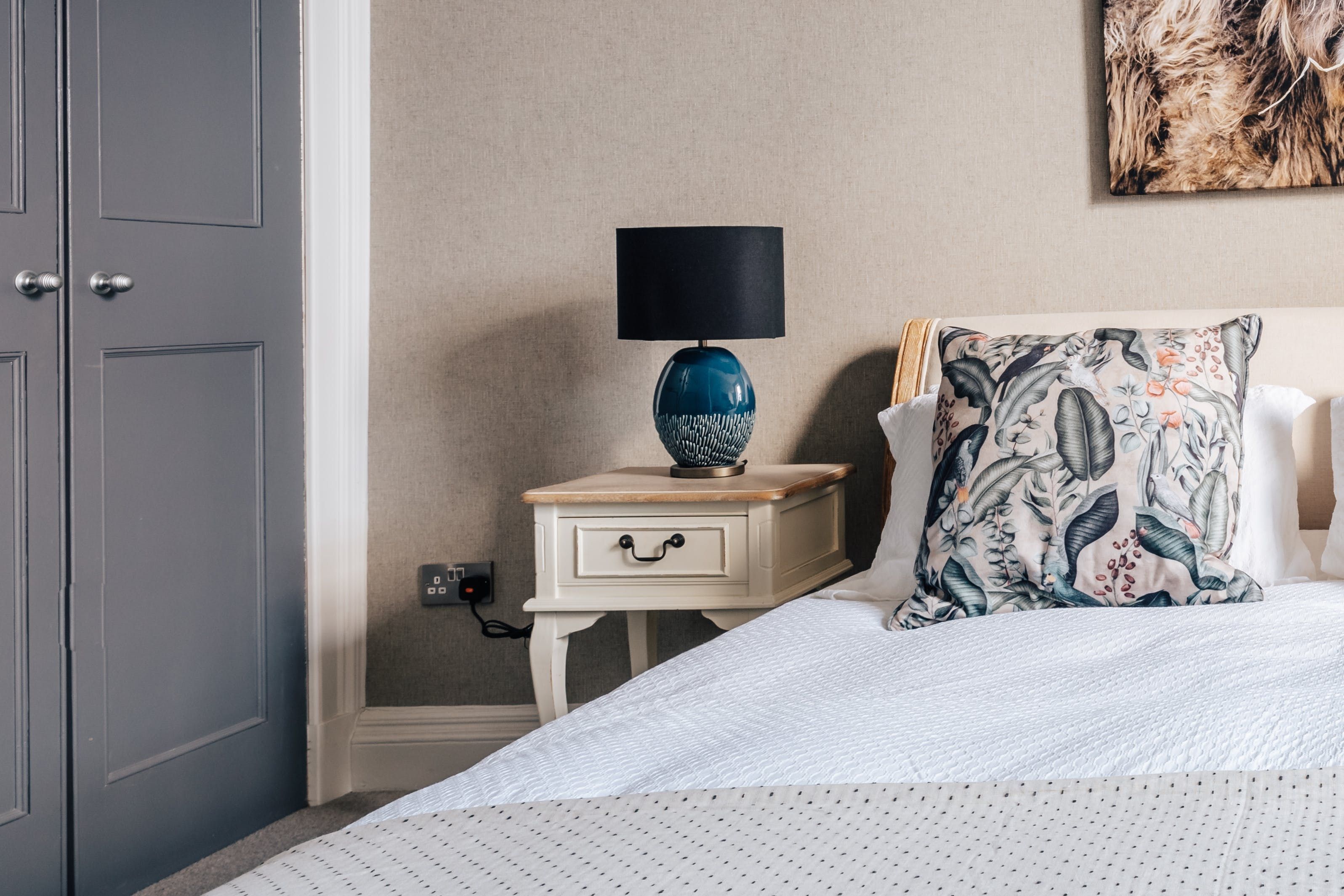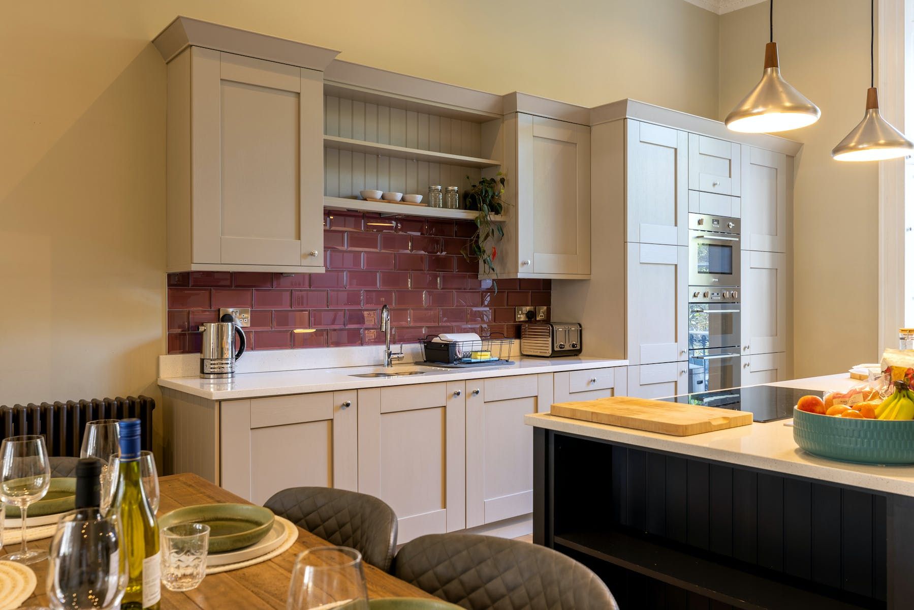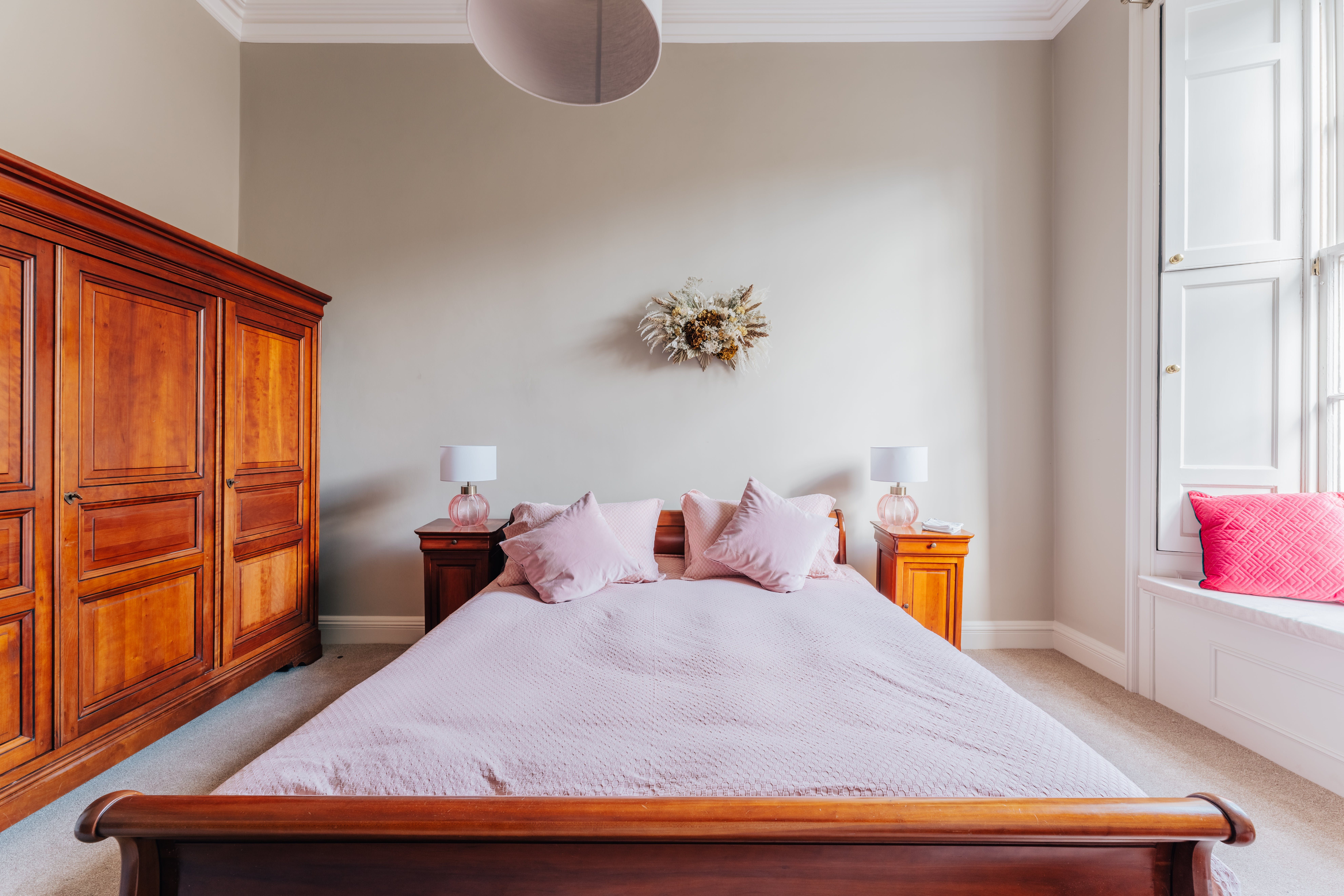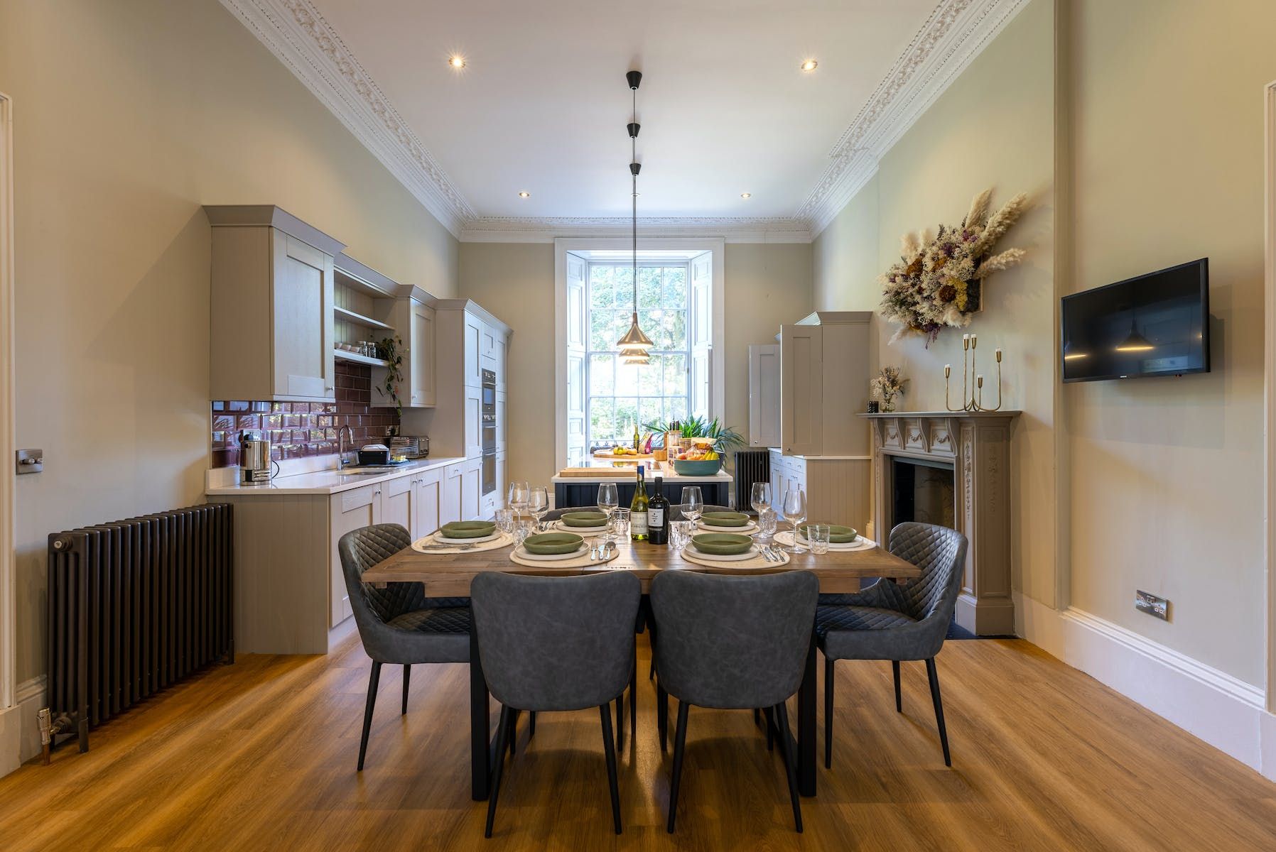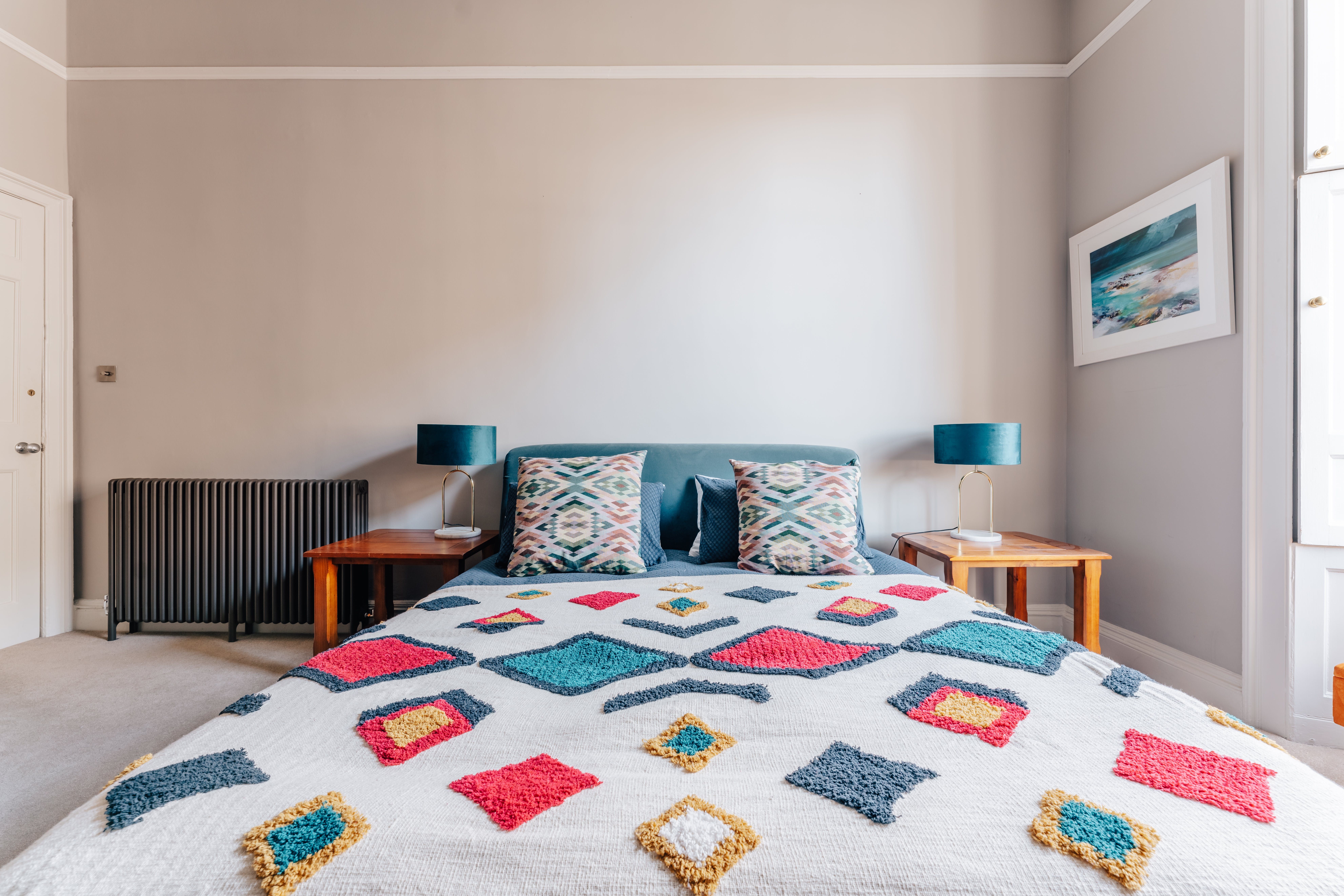 Tall corniced ceilings, wood floors and an abundance of light coming in through the sash windows create an instantly welcoming feel with chic, contemporary furnishings inviting you to make yourself at home. We love the living room’s large suede sofas that beckon relaxing evenings over a glass of wine by the period working fireplace, and the large kitchen bathed in natural light that’s ready to cater celebratory feasts aplenty. The three bedrooms, meanwhile, have each been carefully curated with a sophisticated touch and boast similarly large windows that give way to New Town views. We’re particularly fond of the main bedroom’s en-suite – a spa-like space with its rainfall shower and tempting tub, the latter providing the perfect end to a night with a glass of bubbly.