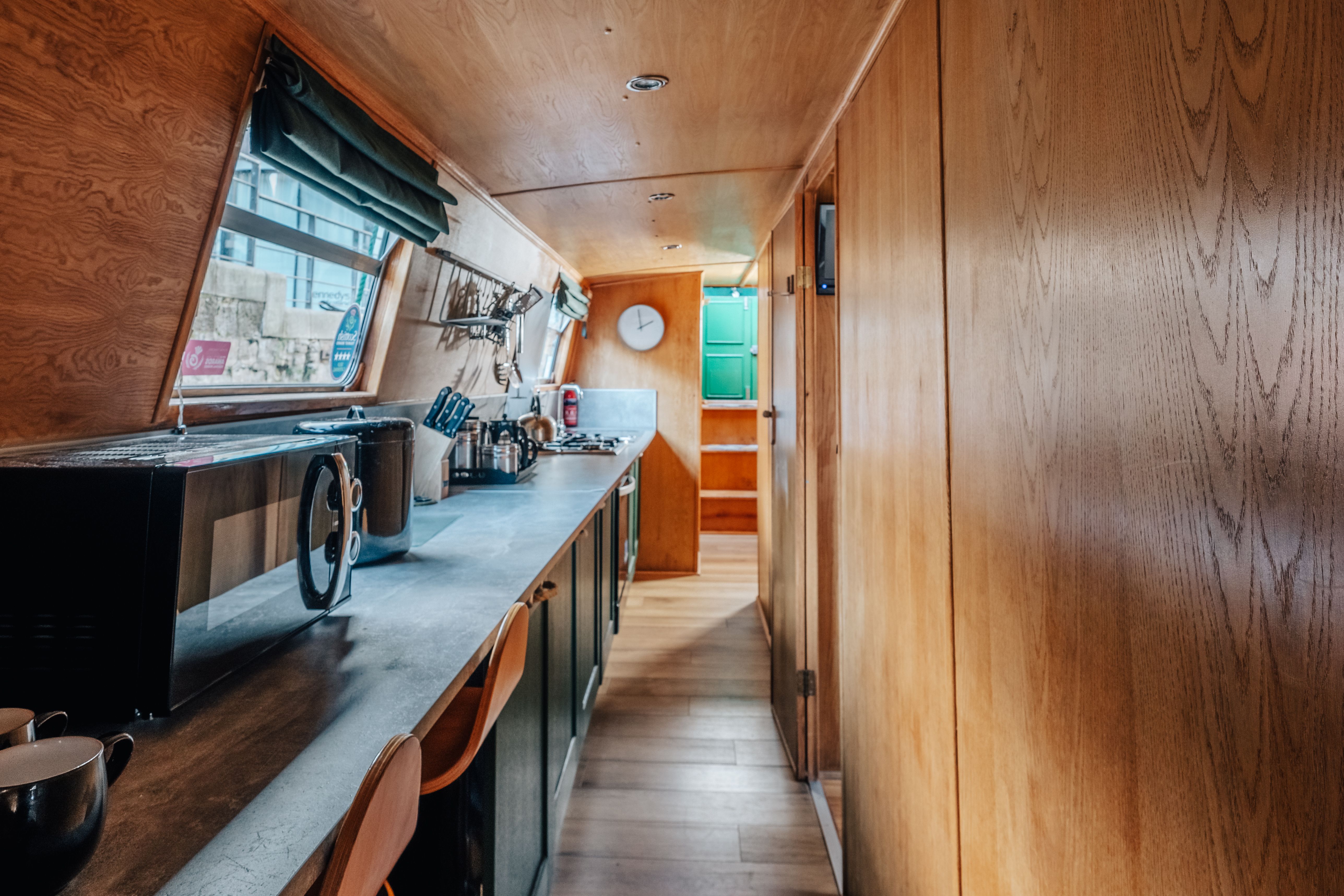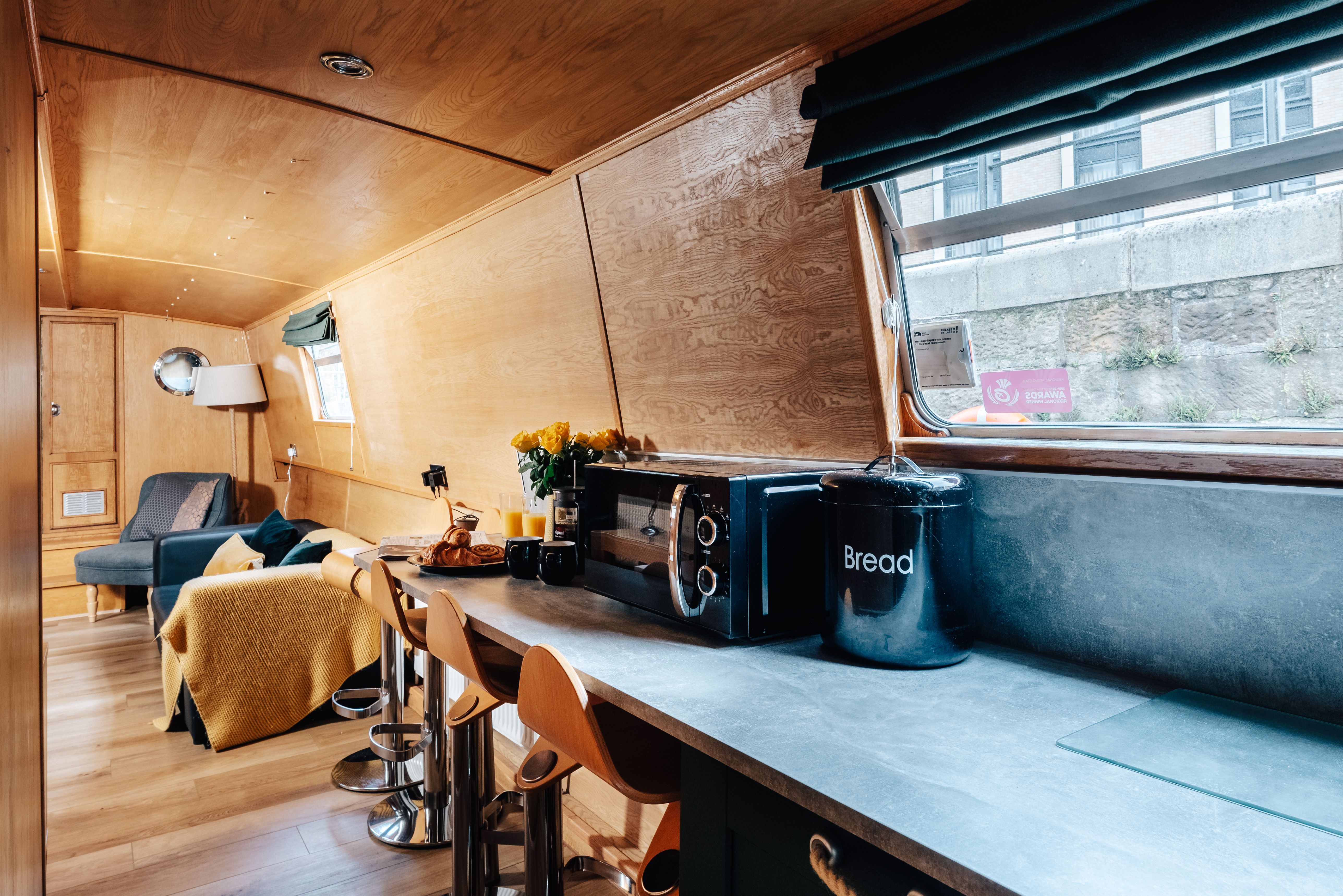 Step aboard this cheerful green houseboat for a fantastic stay on the water. Moored in Lochrin Basin, in the west of Edinburgh, she is a uniquely charming vessel that invites you to experience life on the canal – without having to actually do any sailing. The gorgeous wooden interior creates a homely vibe, where you can settle in and plan your sightseeing itinerary. Cooking is a joy, thanks to the forest green galley kitchen, and on fair days you can head outside onto the deck for a barbecue in the Scottish sunshine. To help you get extra comfortable, your host provides fluffy robes, hot drinks and eco-friendly toiletries – and kids are well looked after too with a range of entertainment options along with their very own bunk room. Seeing the city's most iconic landmarks is easy from here – Edinburgh Castle, the Royal Mile and the Grassmarket are around ten minutes away on foot. And, if you want to travel further afield, then you'll find both a bus stop and a taxi rank just thirty seconds away from the boat.