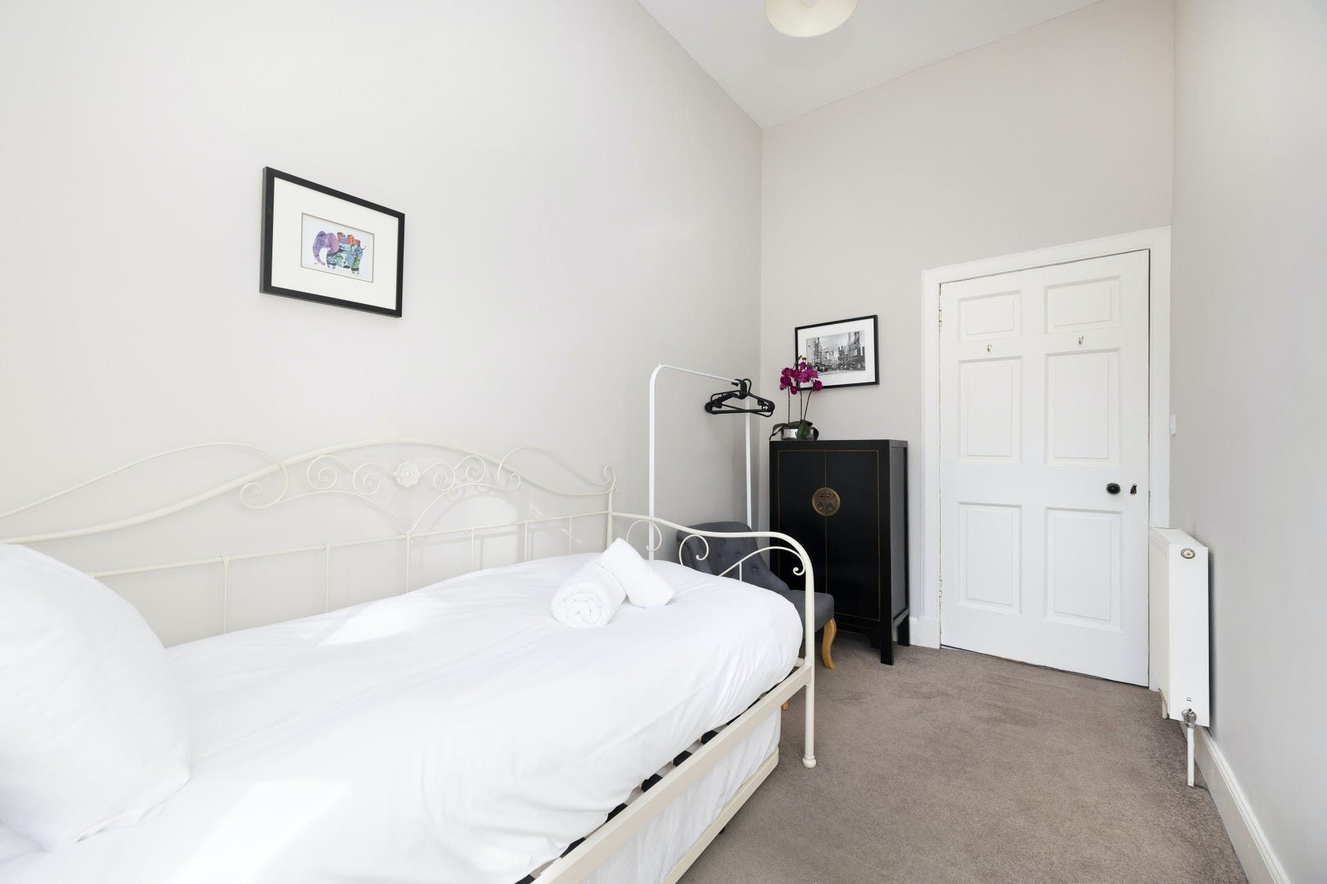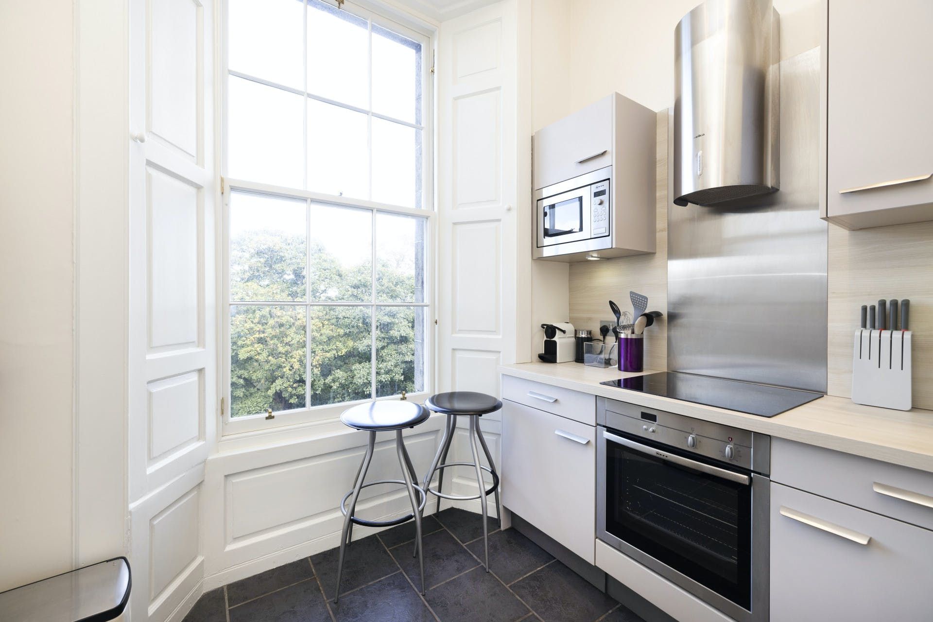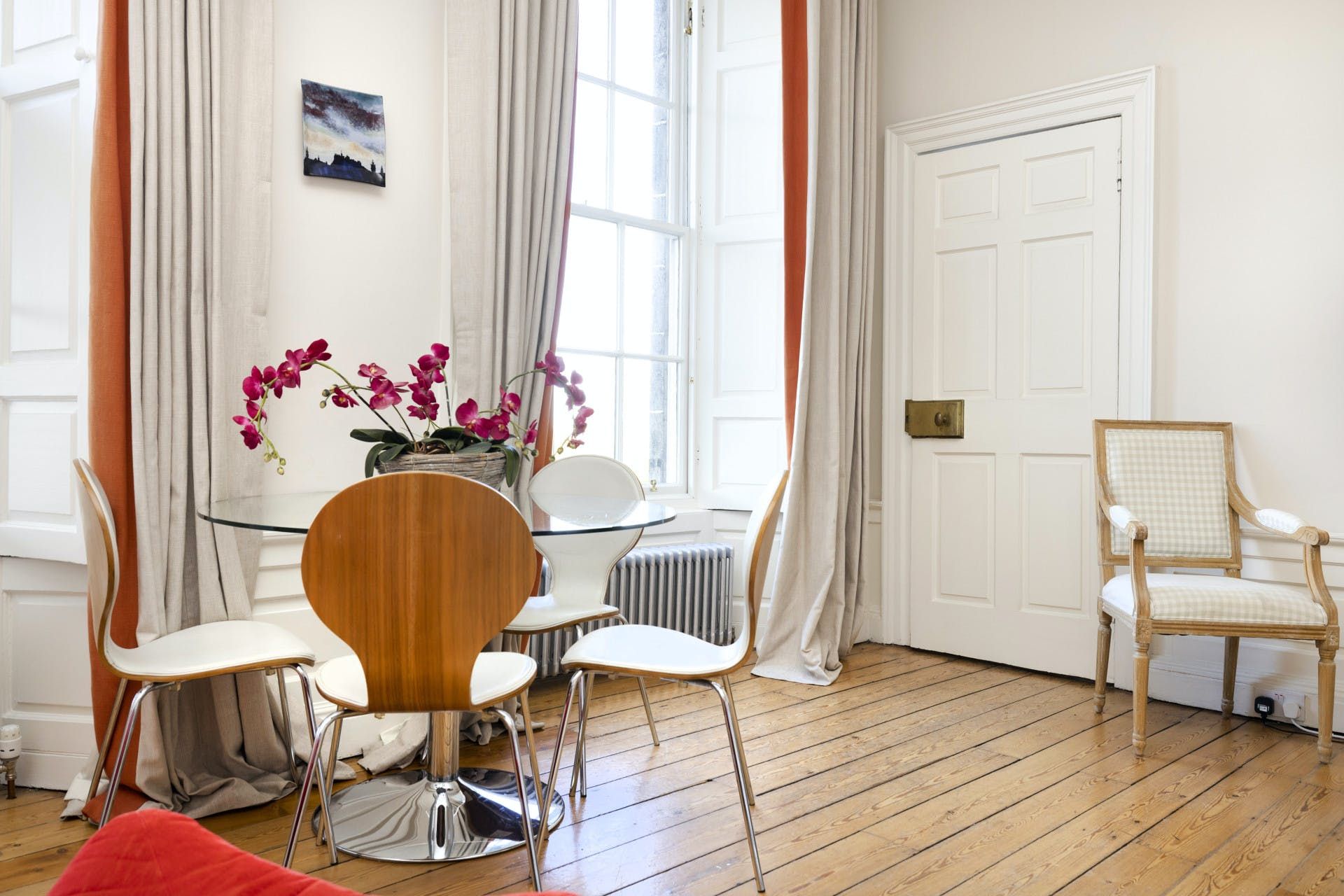 Nestled in the New Town, this stylish apartment grants you easy access to the city's best sights. Feel like staying beside Princes Street, just a thirteen-minute stroll from Edinburgh Castle? You'll have to take the stairs to reach the second floor, but we love how the high ceilings and large-scale windows create a roomy retreat indoors. Perfect for romantic getaways, the main suite offers a freestanding bathtub for post-adventure relaxation. Bedroom two welcomes a third guest, plus kid-friendly travel equipment is available to families.