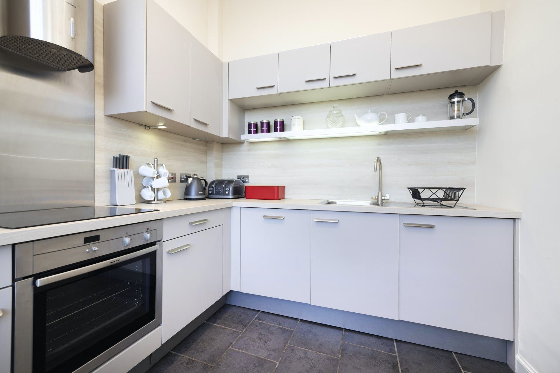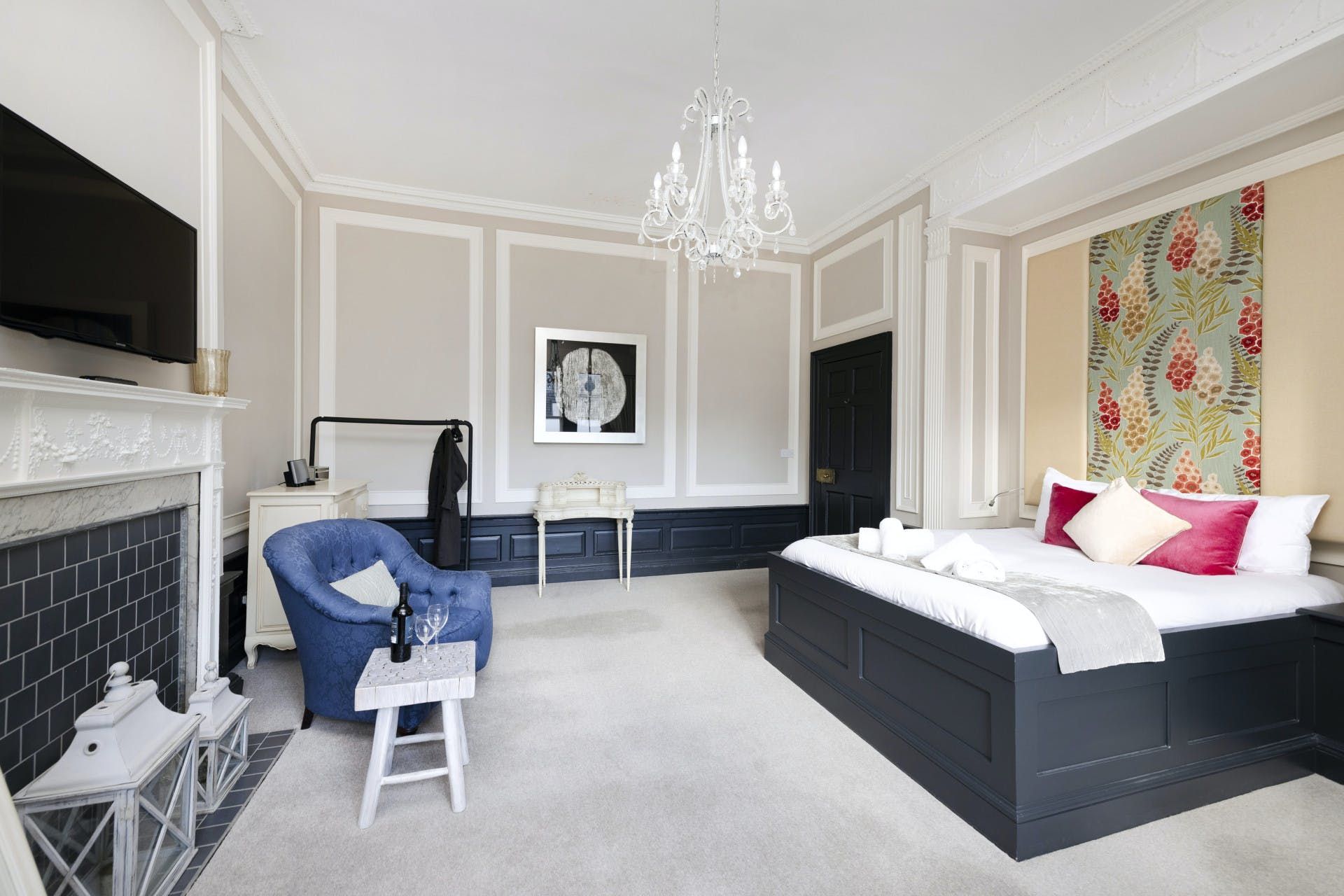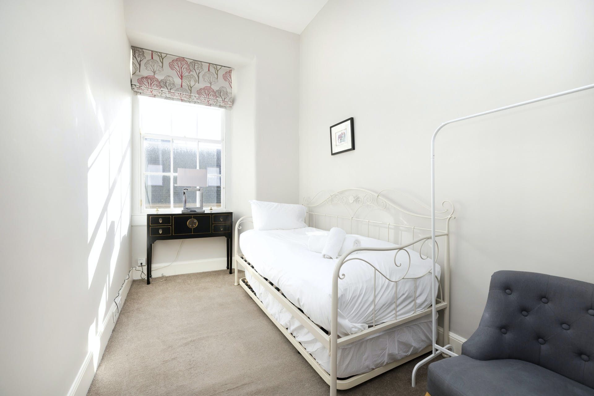 Nestled in the New Town, this stylish apartment grants you easy access to the city's best sights. Feel like staying beside Princes Street, just a thirteen-minute stroll from Edinburgh Castle? You'll have to take the stairs to reach the second floor, but we love how the high ceilings and large-scale windows create a roomy retreat indoors. Perfect for romantic getaways, the main suite offers a freestanding bathtub for post-adventure relaxation. Bedroom two welcomes a third guest, plus kid-friendly travel equipment is available to families.