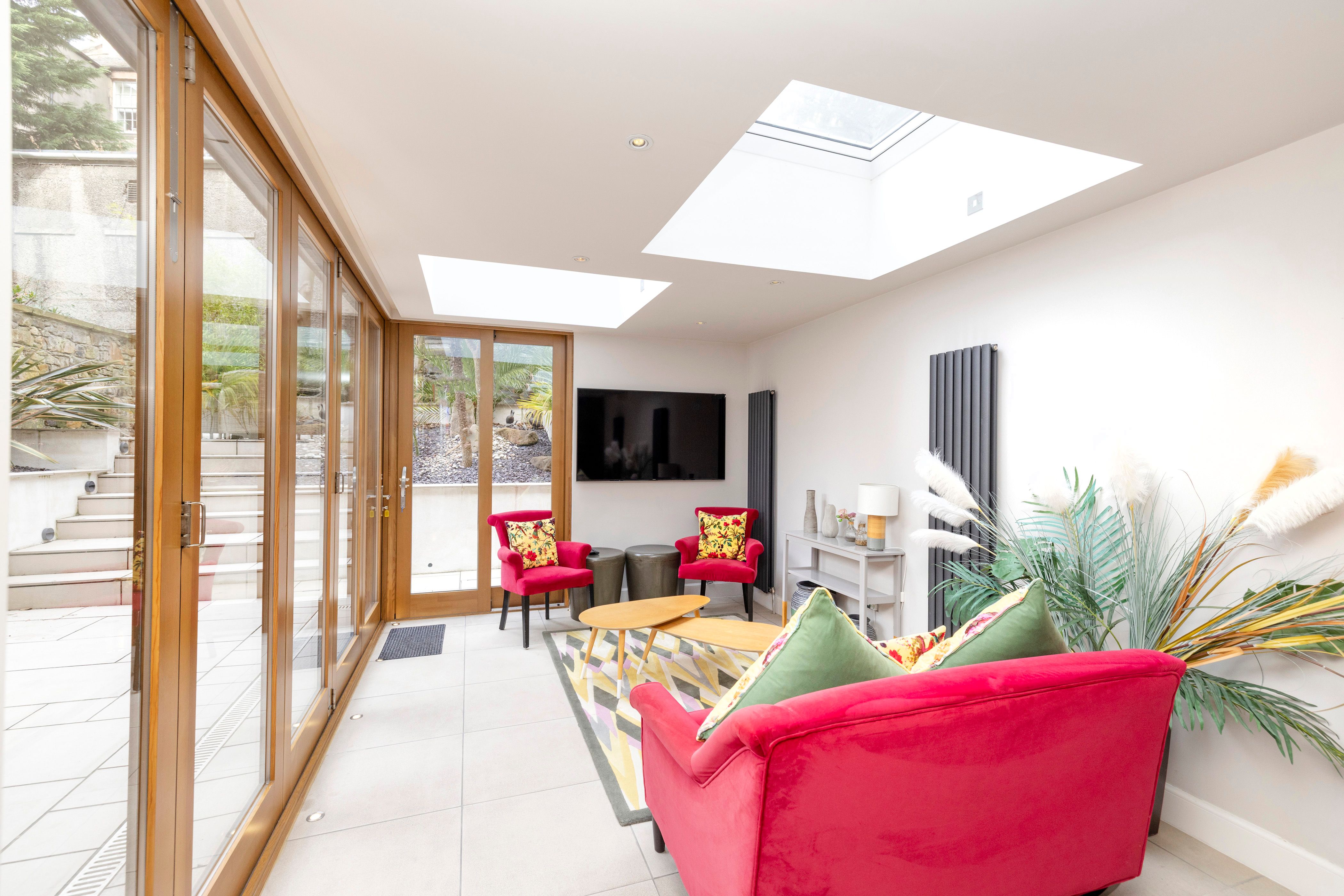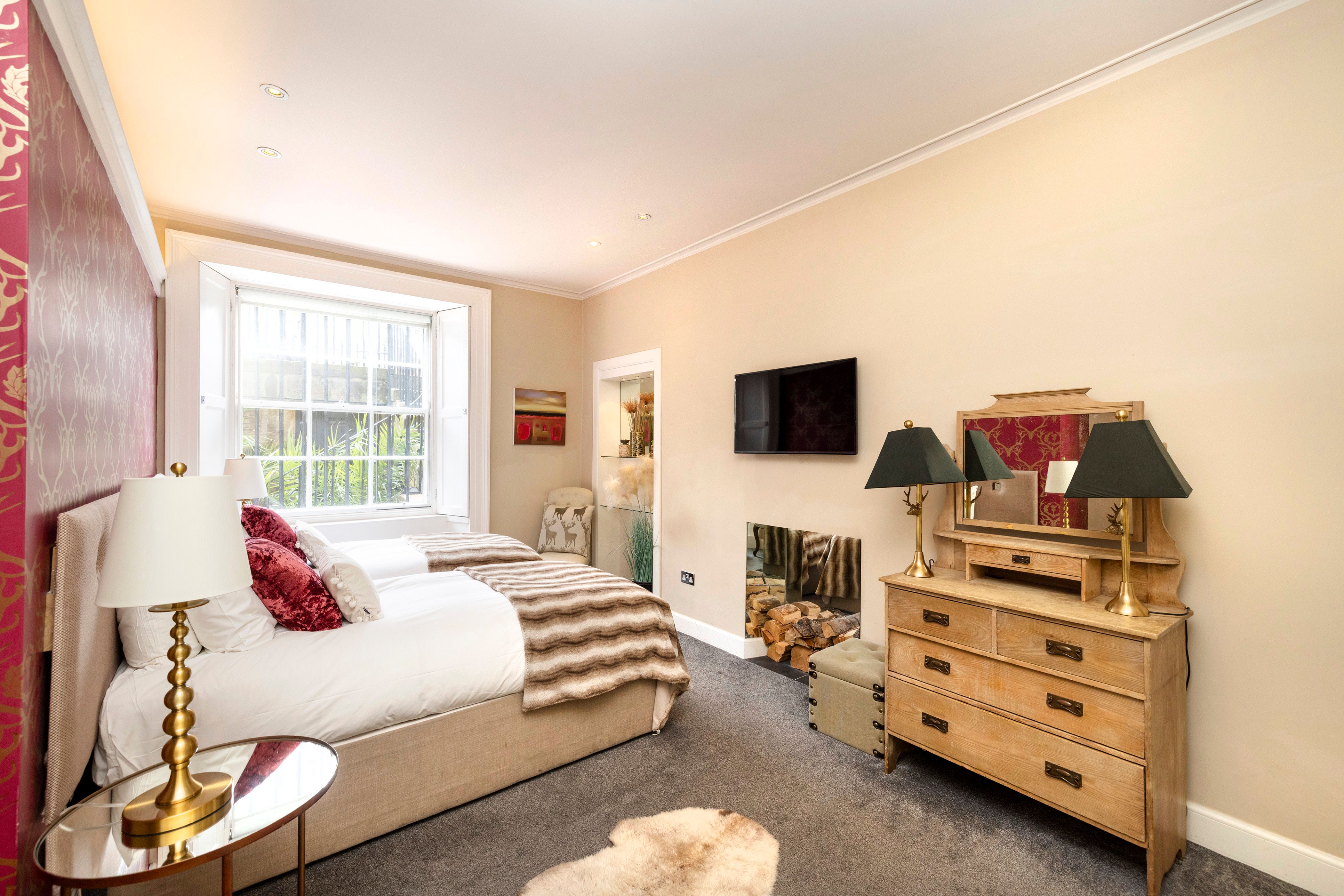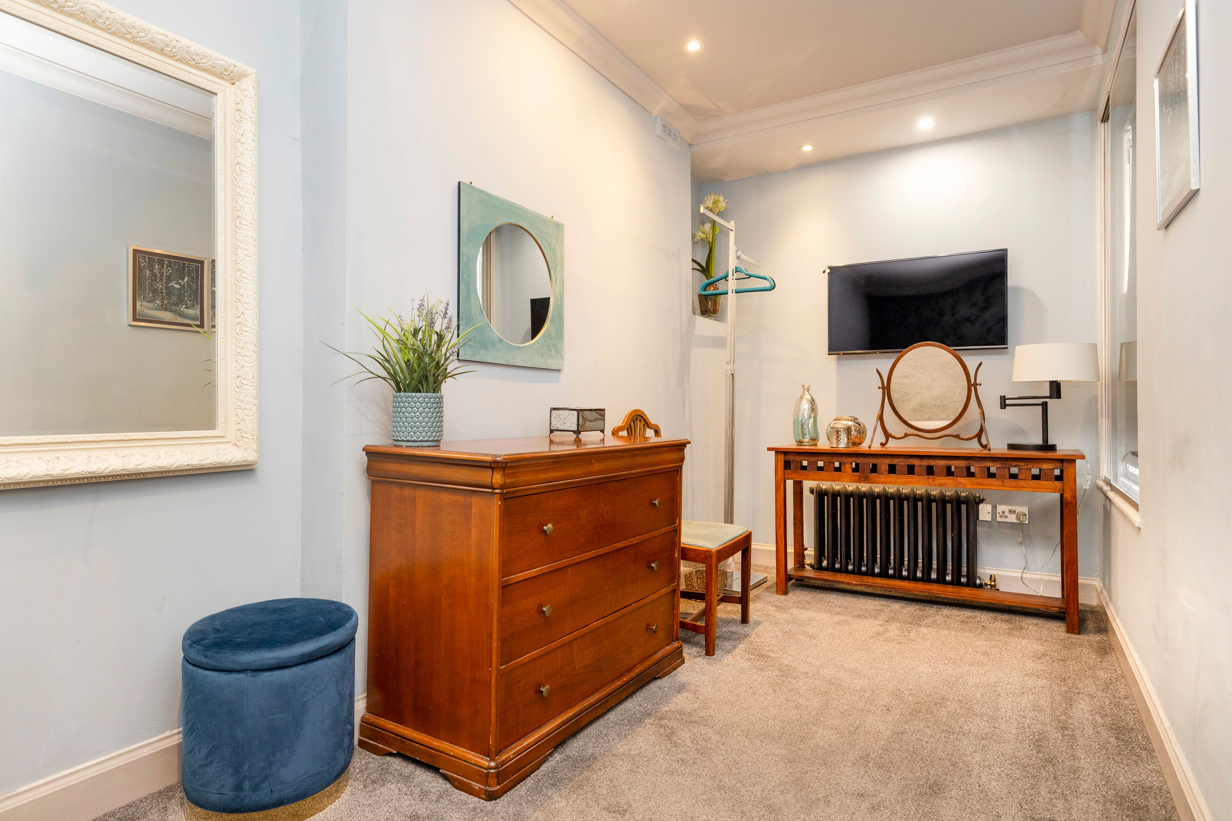 Glowing Ember is something of an unexpected treat. The square outside is lovely, but even so, the flat itself is a surprise. There’s a sense of drama all around, much of which comes from the contrast between antiques and modern furniture, as well as the setting over two levels. The conservatory at the back stands out a bit, as the design is different, but while it’s a bit simpler, that’s exactly what you want in summer, when you can throw the doors open and lounge around in the sun.