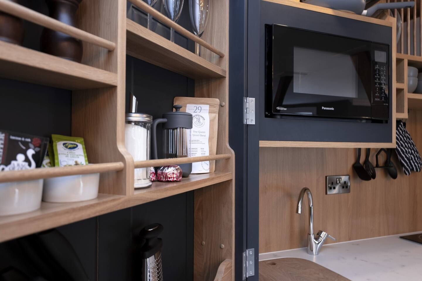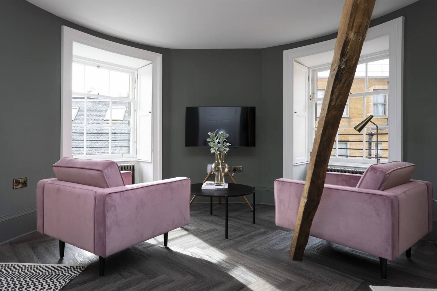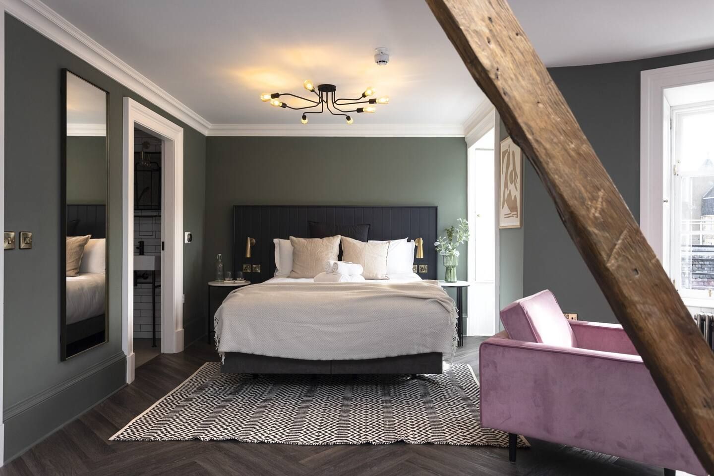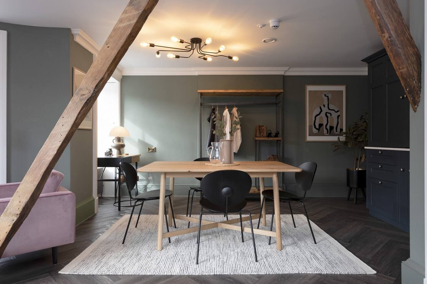 Housed in a beautifully preserved Georgian townhouse, this chic apartment in Edinburgh’s New Town will make you feel right at home. We love the contrast between the dark wood floors, sage-coloured walls and blush pink armchairs, creating a soft and intimate setting for a relaxing stay. Although a studio apartment, space is cleverly maximised here thanks to clever design details, like the wooden floor-to-ceiling beams that create a separation between the living and dining areas, and the cute kitchenette concealed within a stunning feature cabinet. After waking up and enjoying a soak under the tiled bathroom’s rainfall shower, head out for a stroll around Queen Street Gardens, just across the road. You’re also just a six-minute walk from shop-lined Princes Street, a twelve-minute walk from Edinburgh Castle and a fourteen-minute amble from Calton Hill with its panoramic views over the city.