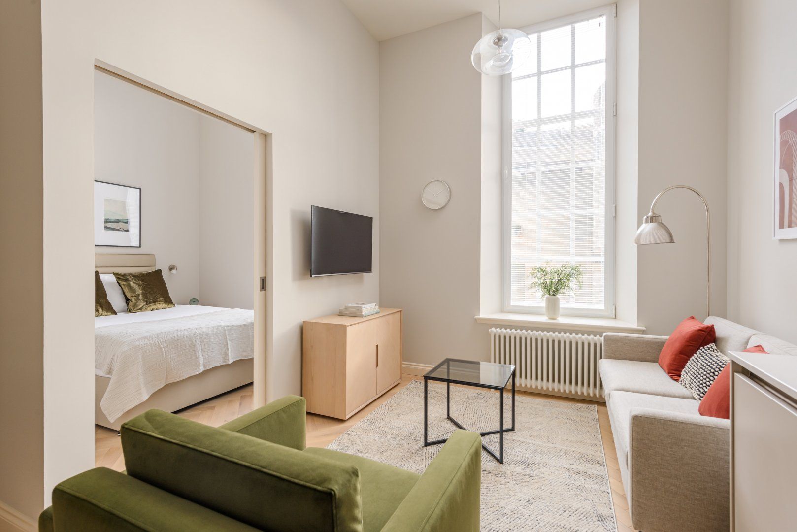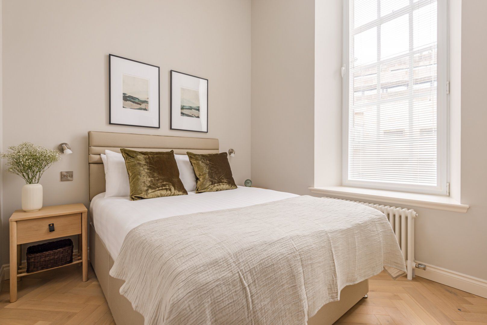 This minimalist apartment sits directly across from The National Museum of Scotland and Greyfriars Kirkyard, only a five-minute walk from The Royal Mile and ten from Edinburgh Castle. Old Town is Edinburgh’s historic heart, where twisted cobbled lanes and gothic buildings are around every corner. Whether you're in town on business or here to sightsee, it's an excellent spot to be – pubs, restaurants, landmarks and independent shops are just steps away.
