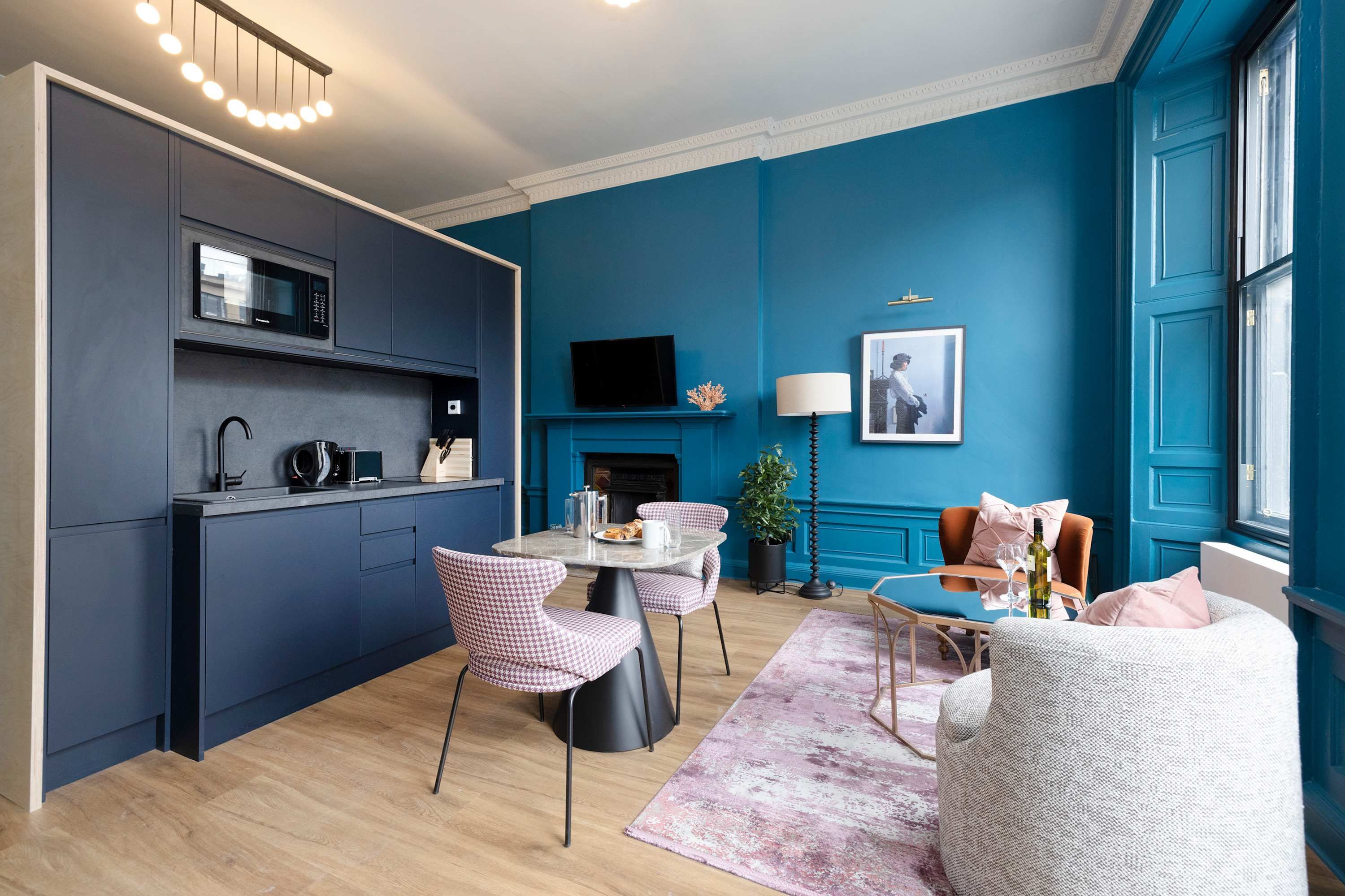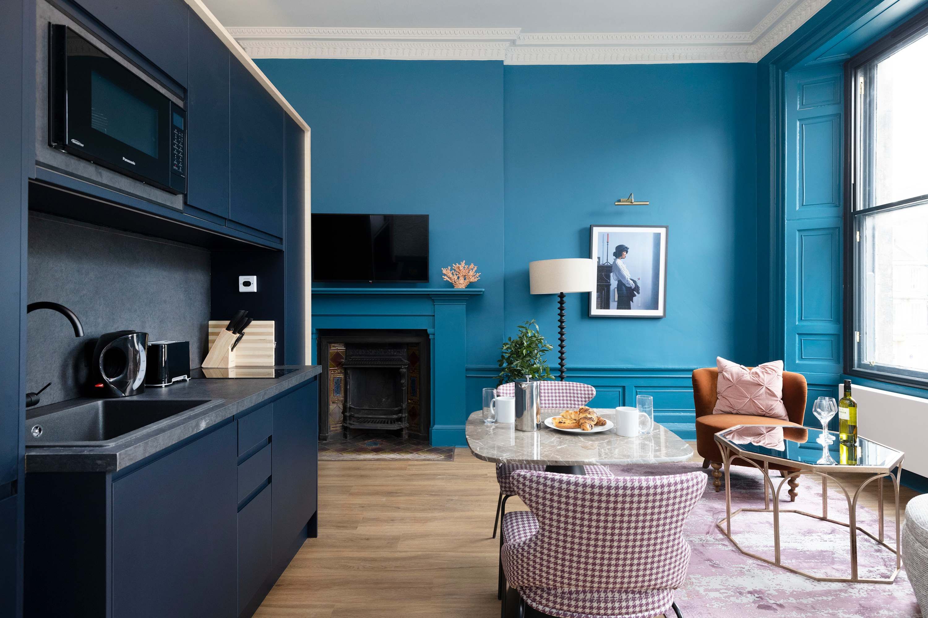 Tucked in Edinburgh’s historic centre, this apartment offers a cosy city sanctuary. It’s the perfect base for sightseeing with George Street just moments away and Edinburgh Castle less than fifteen-minutes away. You won’t have to go far to find incredible restaurants, cafes and bars, while the close proximity to Waverley Train Station means it’s easy to explore further afield. It’s worth noting there’s no lift in the building, but the apartment has everything you could need to relax, disconnect or catch up on work. There’s a small kitchen for prepping light bites and the open-plan layout is ideal for couples and solo travellers.
