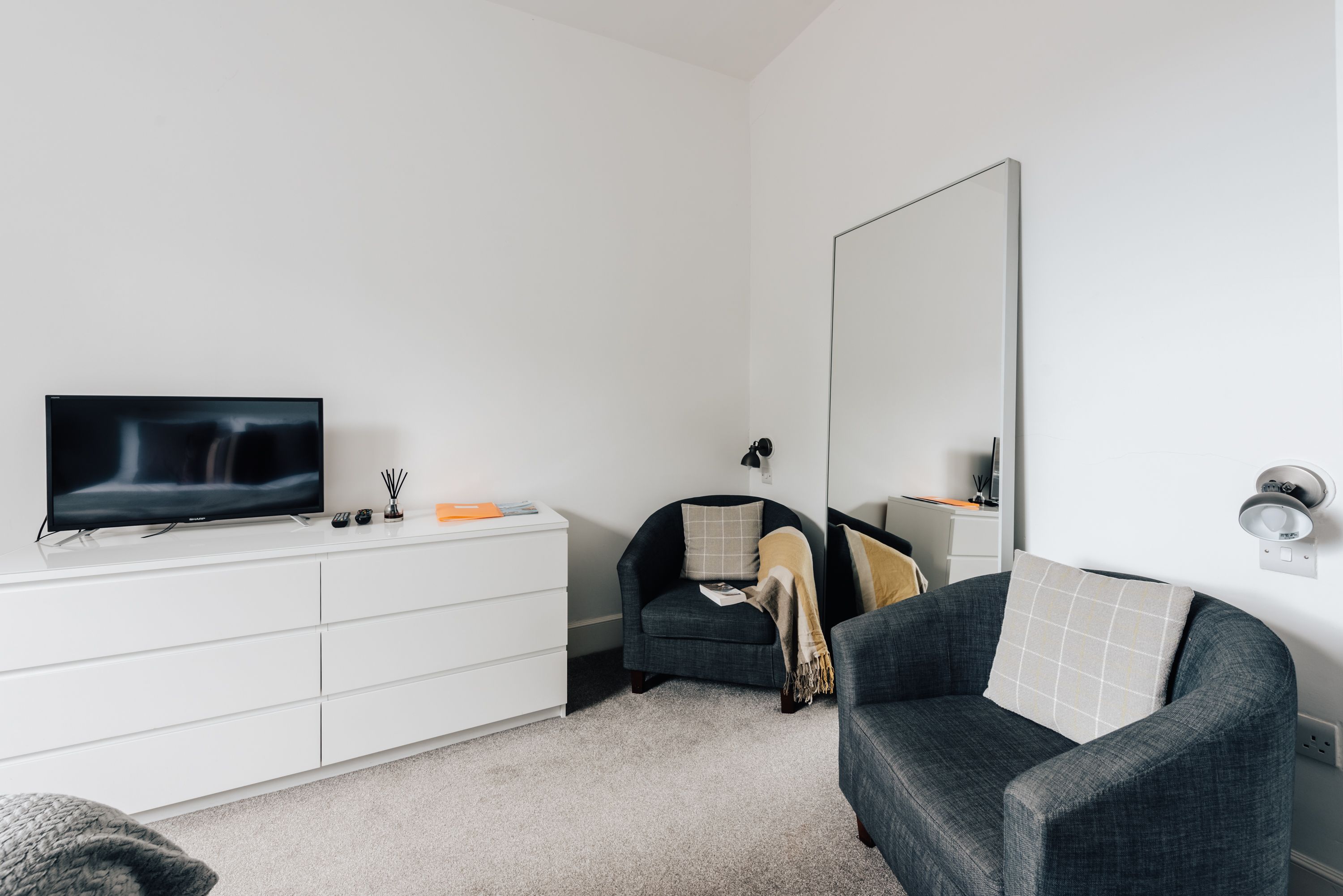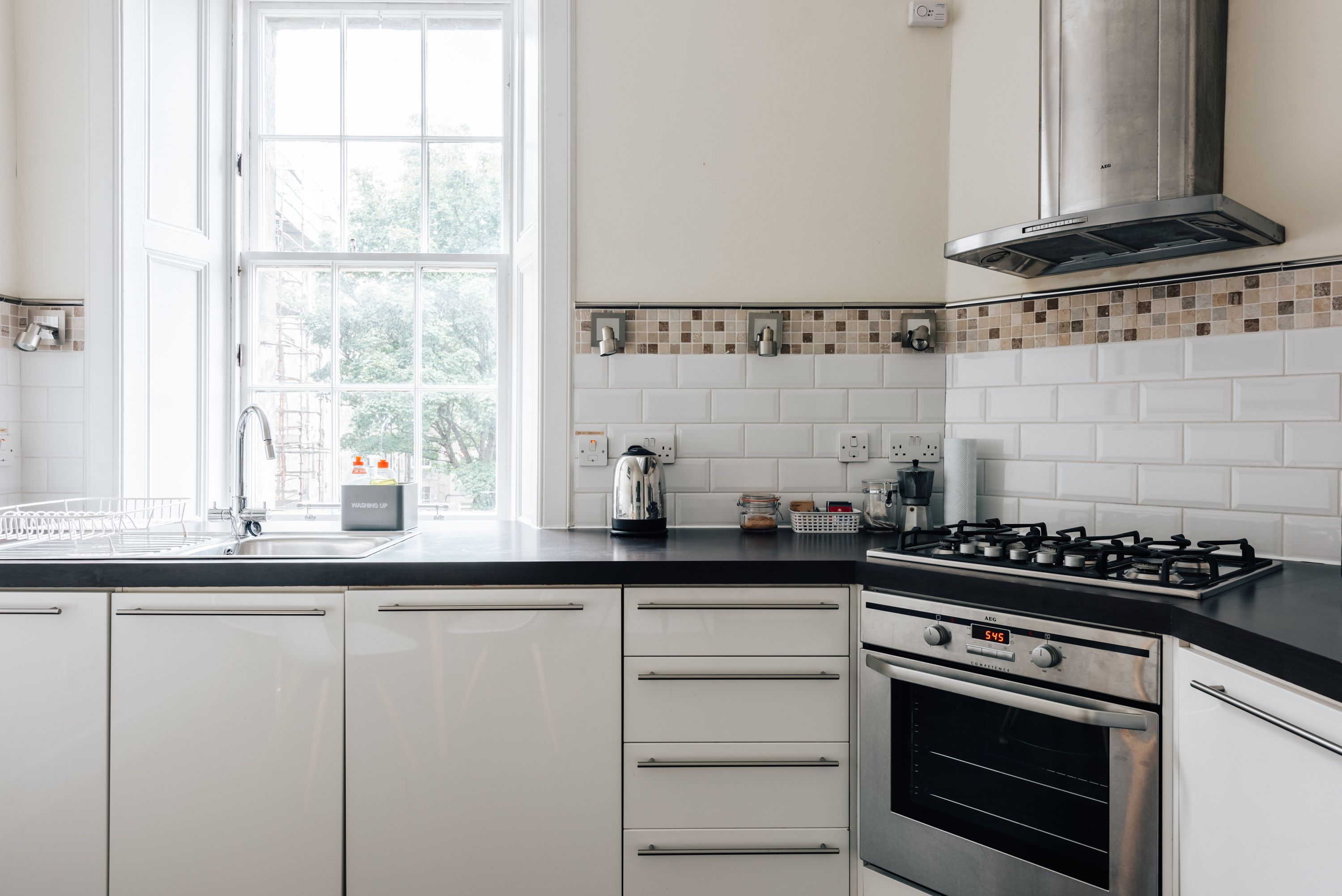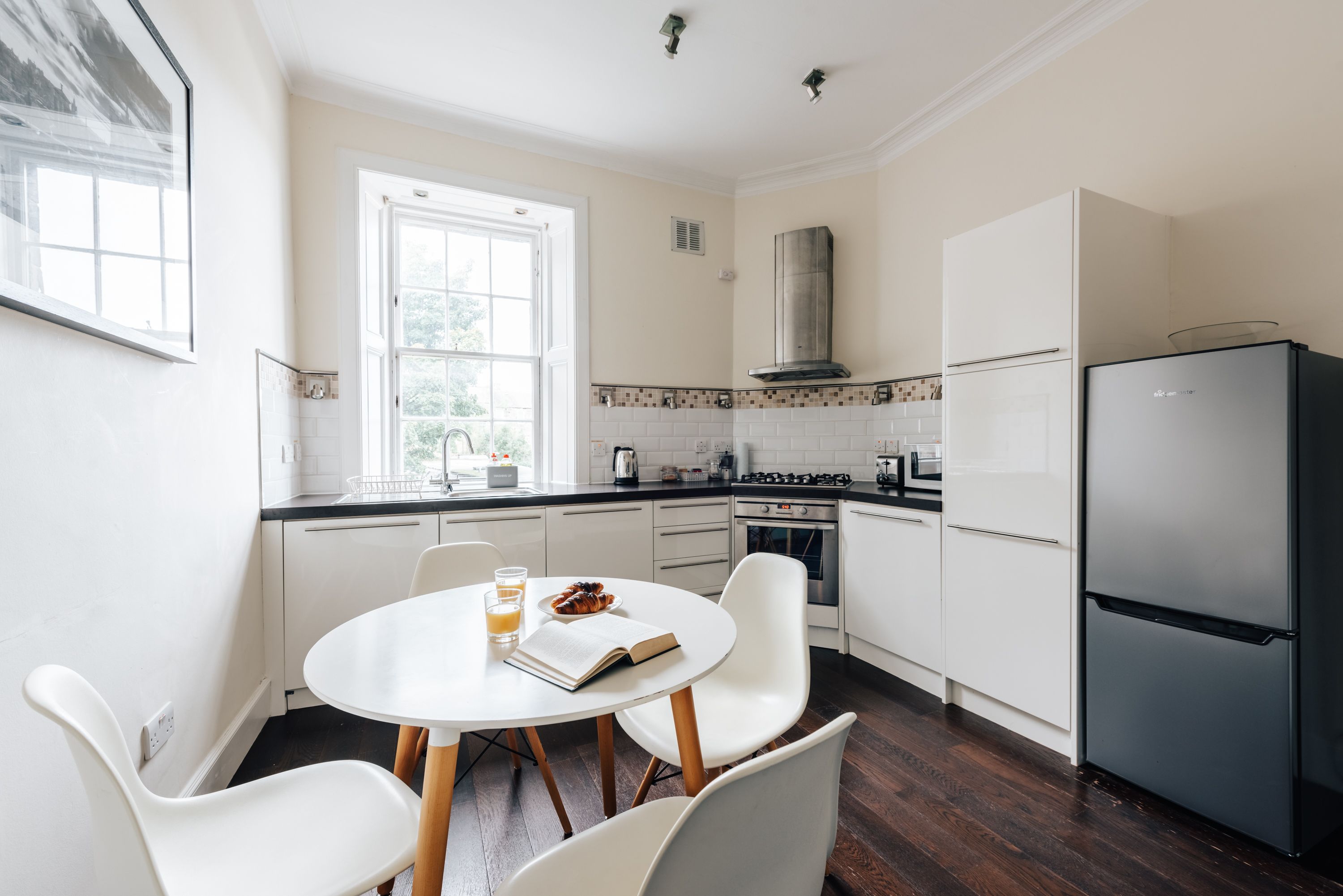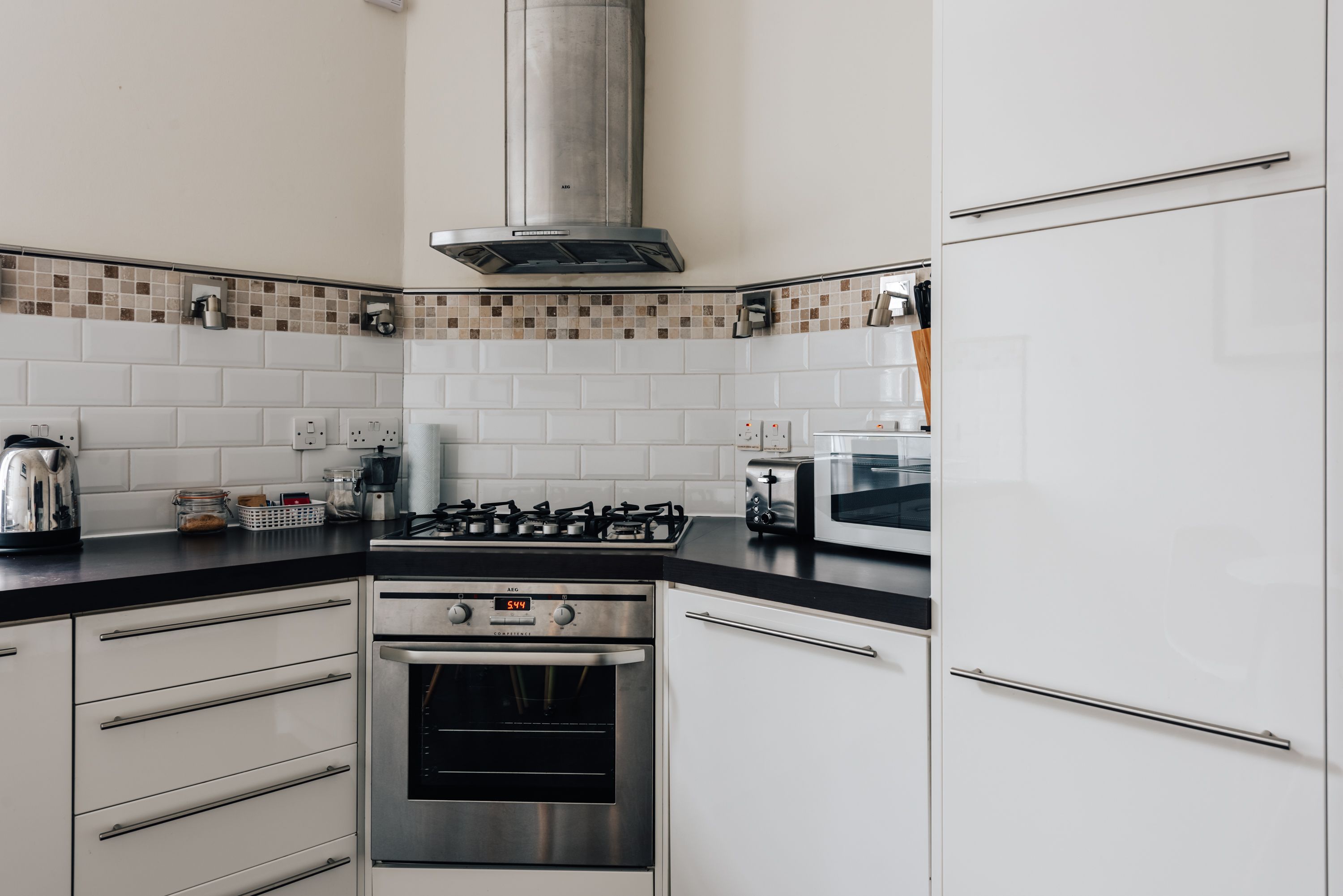 *Although you will see a tumble dryer in the kitchen, it does not work and is disconnected for safety reasons – an airer is available for small loads of laundry.