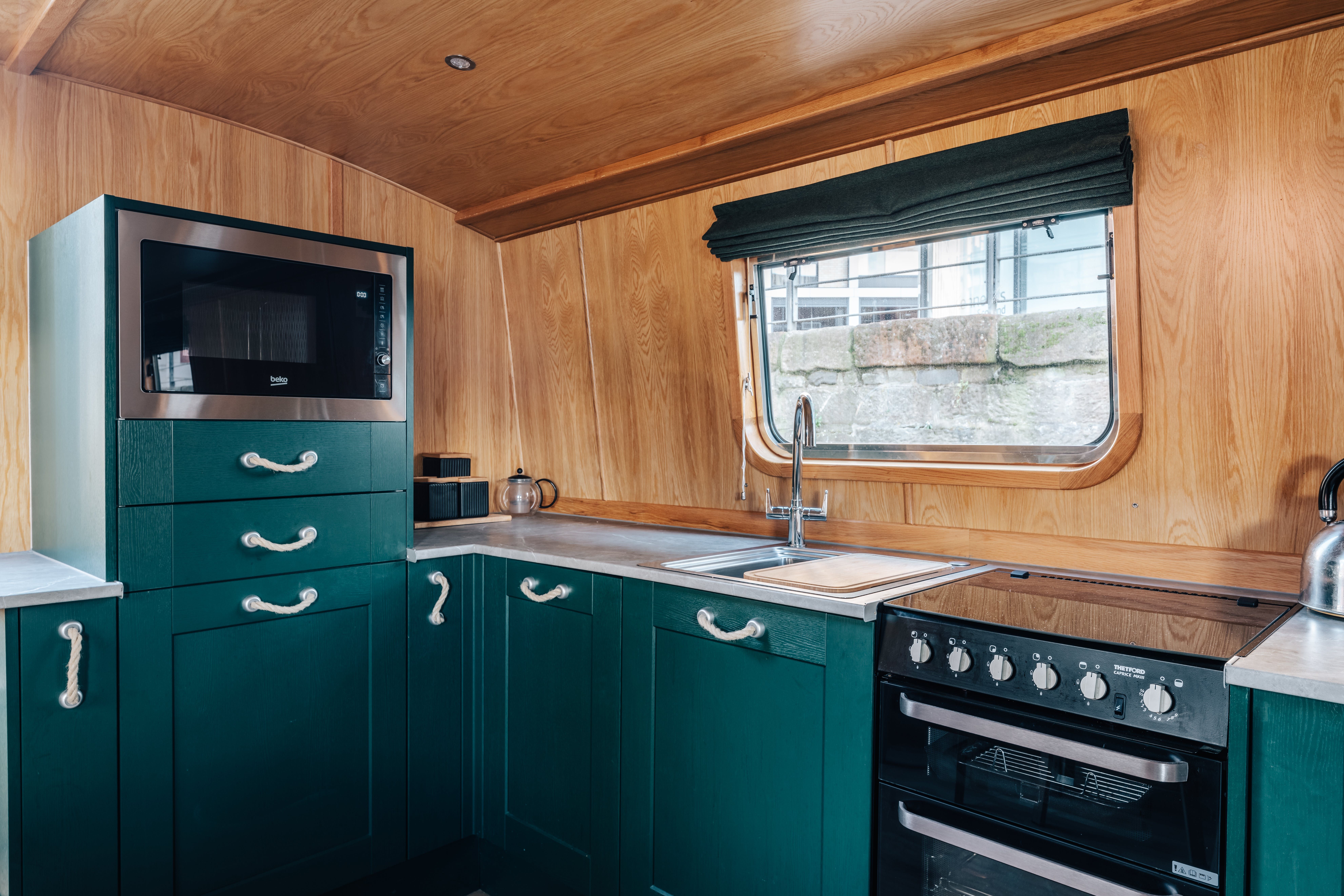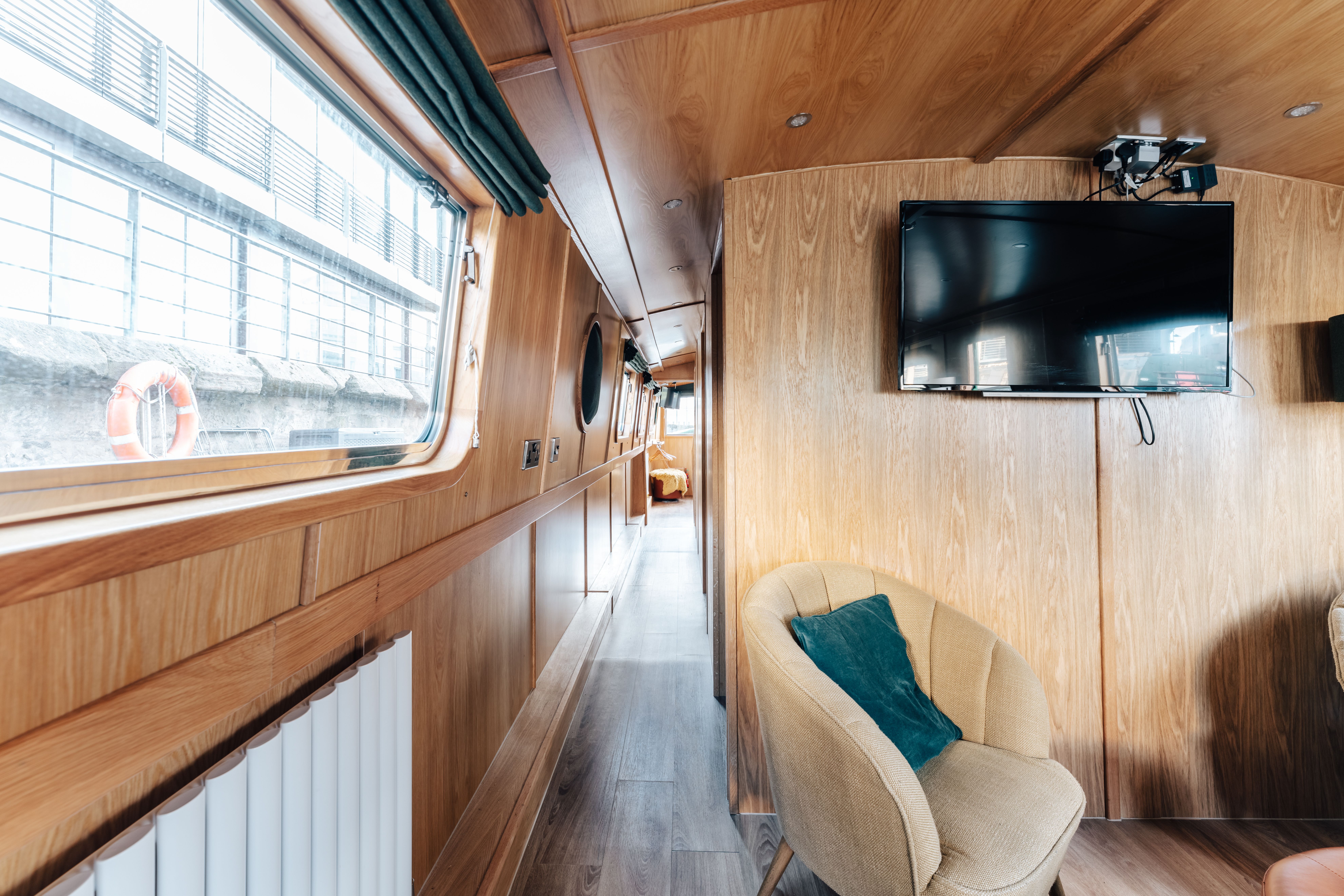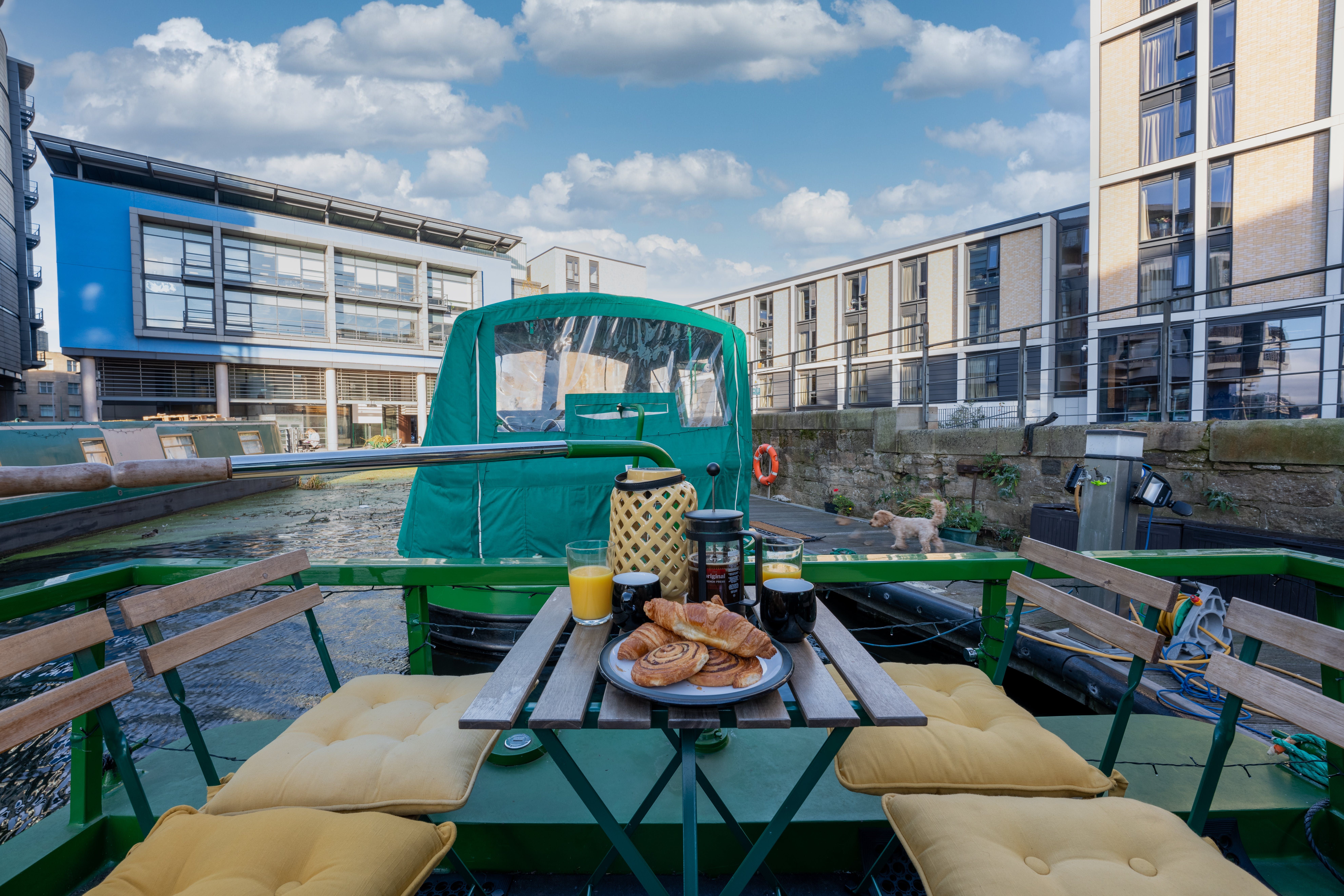 With its craggy peaks and rolling hills, you might not immediately think of Edinburgh as a canal city. But this fabulous houseboat at Lochrin Basin will defy your expectations, just fifteen minutes on foot from Edinburgh Castle. Its bright green painted exterior stands out on the water, and the interior has gorgeous, rich wood throughout. Two bright terraces on the roof deck are where you’ll sip champagne on arrival. Spacious, stylish, and unique, the VIP experience on board feels more like a yacht than a canal barge. Make use of the foot spa and electric massage chair after settling down in your fluffy bathrobe. And your host even offers luxury welcome packages full of fine Scottish fare, as well as a private chef. If you fancy heading out for cafés, dinners, and drinking, walk up to Bruntsfield in just ten minutes, or head over to Tollcross in six. Both areas are absolutely teeming with brunch spots and tasty restaurants, as well as plenty of watering holes like traditional pubs. After a few drams of whisky, head back to the boat and enjoy a nightcap on the water.