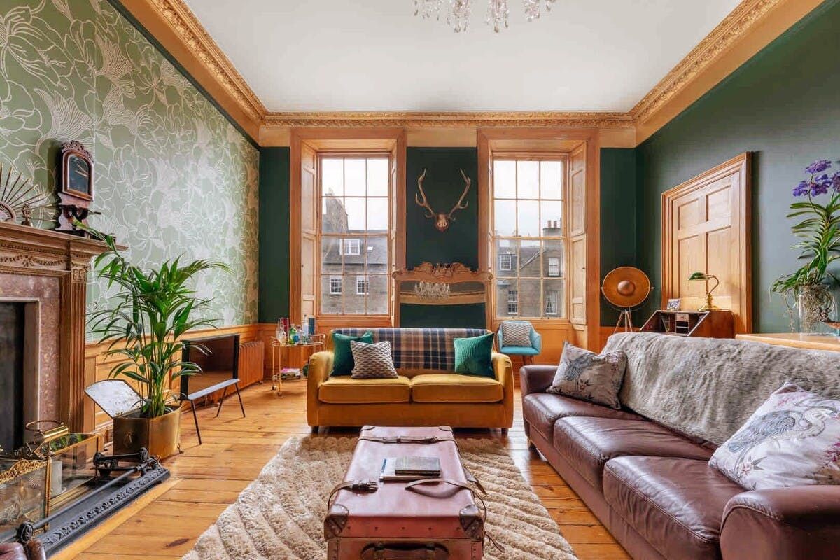 Harking back to the Georgian era, when Edinburgh’s leafy New Town was, well, new, this apartment is filled with antiques and curios. It sits on a grand cul-de-sac, a five-minute walk from Princes Street in the heart of Edinburgh. The surrounding streets are home to fine-dining restaurants and the buzzing bar hubs of Rose Street and George Street are just a four-minute walk. Inside, this apartment is simply stunning. High ceilings corniced like icing and huge sash windows set the tone of grandeur and each vintage piece has been carefully selected to give an Art Deco feel. Quirks like the gramophone and typewriter in the living room and hand-painted fireguards in the bedrooms are what really make this place feel special. The vintage-style kitchen may have been designed around the original Shefco pantry, but it has all the mod-cons of the 21st century. Mix up a whisky cocktail at the mid-century bar table, stick a record on the gramophone and unwind with a view of the Calton Hill fireworks from that magnificent lounge.