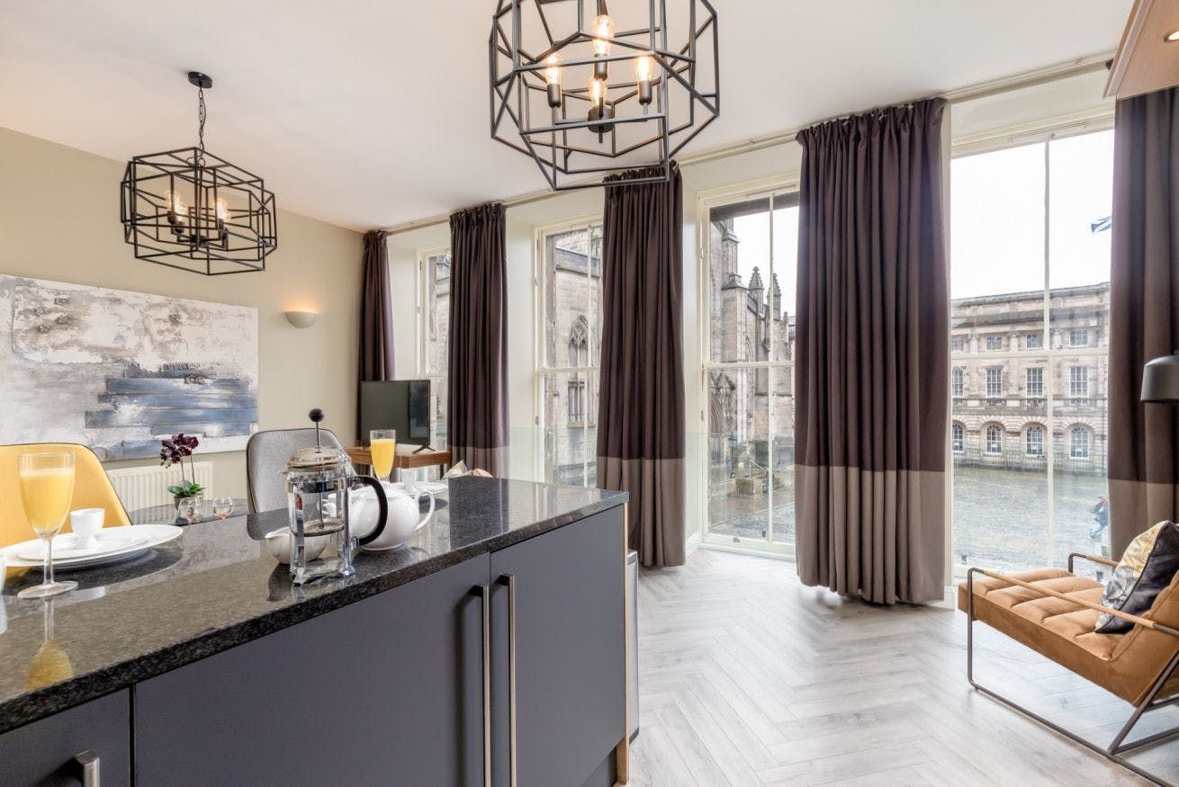 With floor-to-ceiling windows overlooking the Gothic grandeur of St Giles’ Cathedral, this apartment is instantly impressive. We love the scenery, and we also love the location – walking distance from many of the most popular sights, and right in the heart of Edinburgh’s Old Town. When you’re not sightseeing, souvenir shopping, or sampling local culture in a traditional pub, this one-bedroom apartment is a cosy and comfortable place to recharge your batteries. It has everything you need to feel right at home, plus that extra-special view, which might just be one of the best in the city.