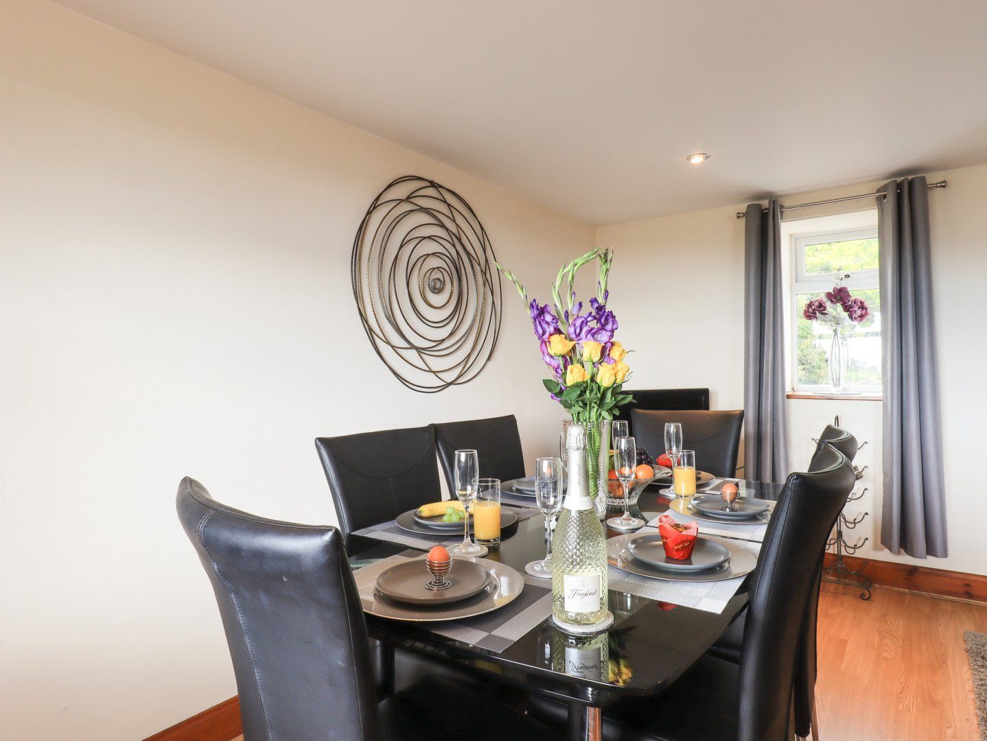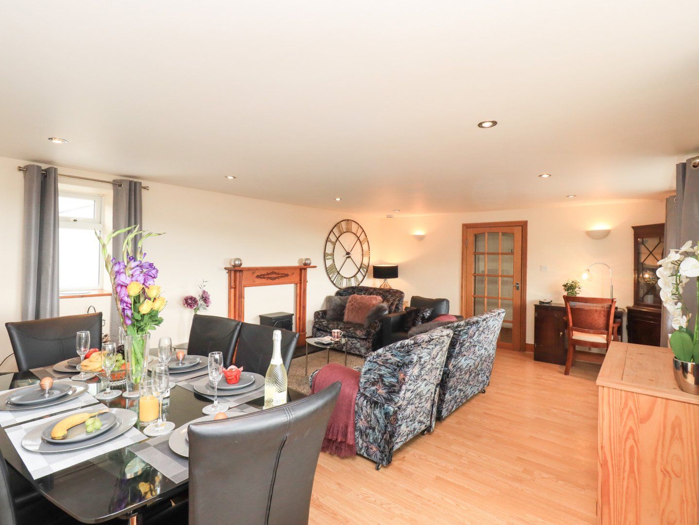 All-one-level. Three bedrooms: 1 x king-size, 1 x double, 1 x twin (2x Single beds). Bathroom with bath, shower over, basin and WC. Shower room with walk-in shower, basin, heated towel rail and WC. Kitchen. Living/dining room with electric fire