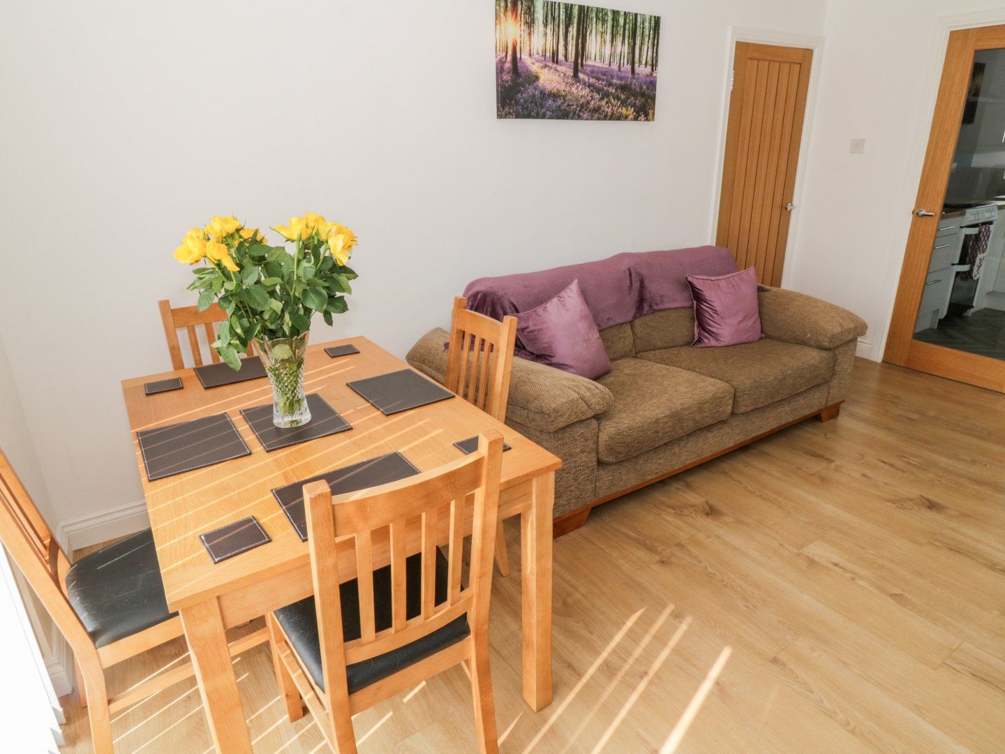 Amenities Oil central heating with electric stove-effect fire. Electric oven and hob, microwave, fridge/ freezer, dishwasher, washing machine, 4 x TVs and WiFi. Fuel and power inc. in rent. Bed linen and towels inc. in rent. Travel cot and highchair available. On-street parking. Enclosed front lawned garden, side garden with picnic bench, and rear garden with patio and furniture and lawn. Sorry, no pets and no smoking. Shop 3.4 miles, pub 3.4 miles. Note: The interior of the property is all ground-floor, however there are a few steps to access the entrances to the property. Please note: This property has a good housekeeping bond of £200