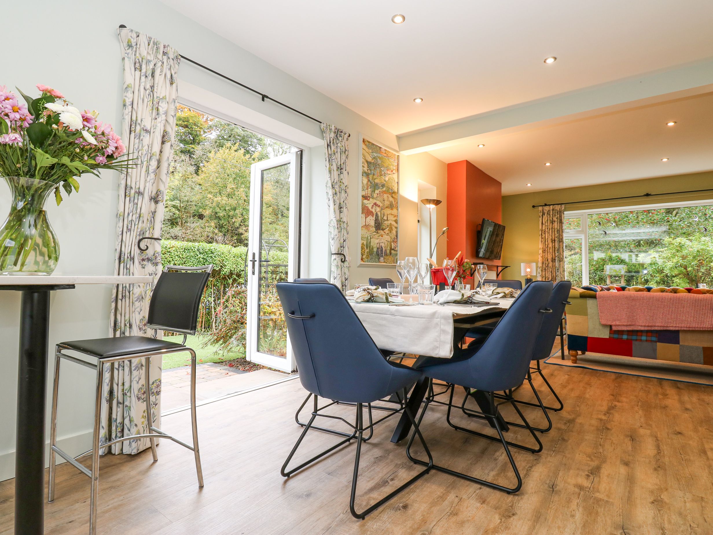 Gas central heating. Gas oven, electric hob, microwave, fridge/freezer, dishwasher. Smart TV and WiFi. Fuel and power inc. in rent. Bed linen and towels inc. in rent. Designated, off-road parking for 1 car with more space available outside the property. Enclosed, front and side garden with lawn, patio, and furniture. Sorry, no pets and no smoking. Shop 0.3 miles, pub 0.4 miles, river 0.1 miles. Note: Sorry, no children under 5. Note: Mountain bikes are available and free of charge, stored in the shed. Please note no worker bookings.