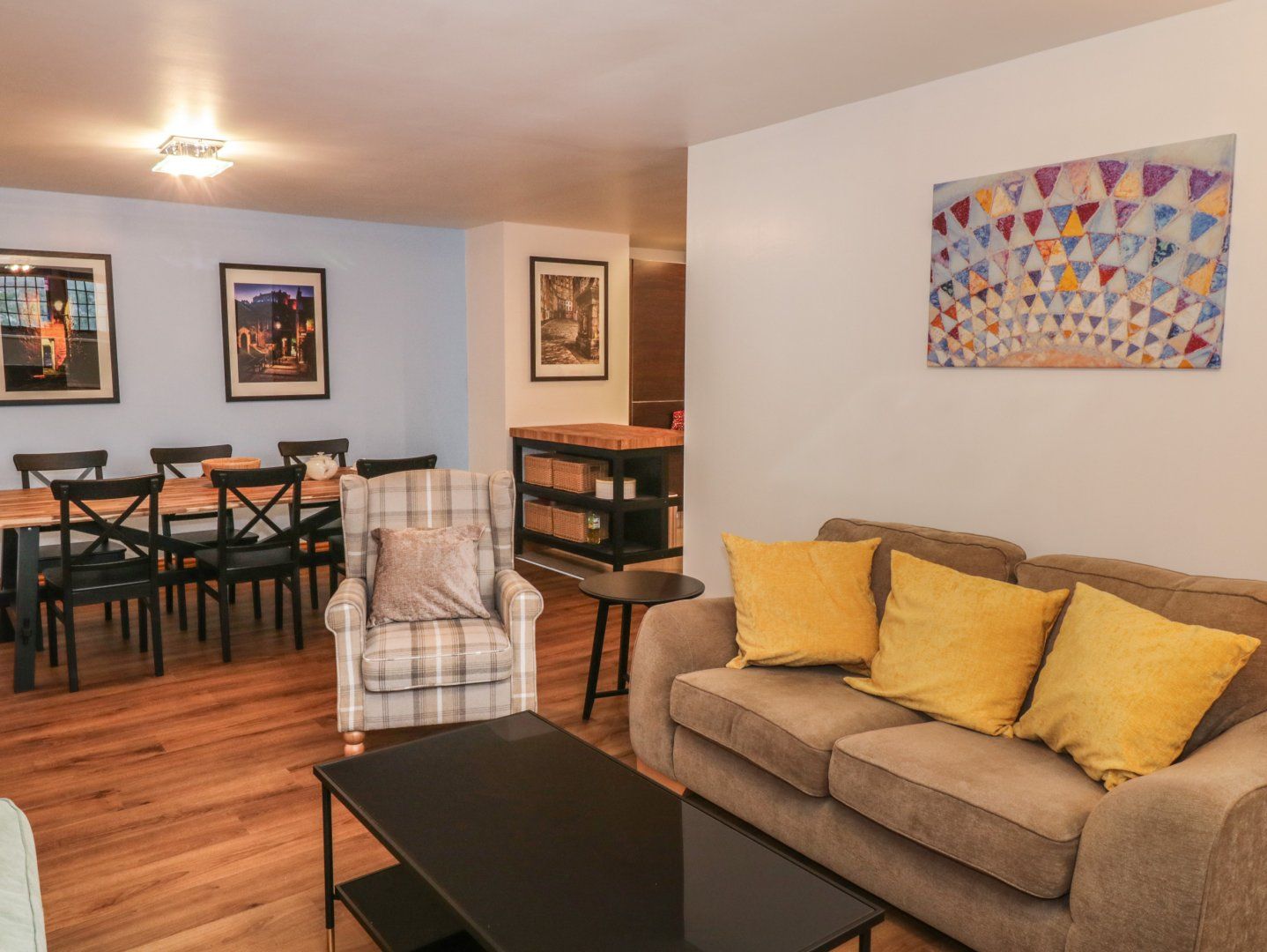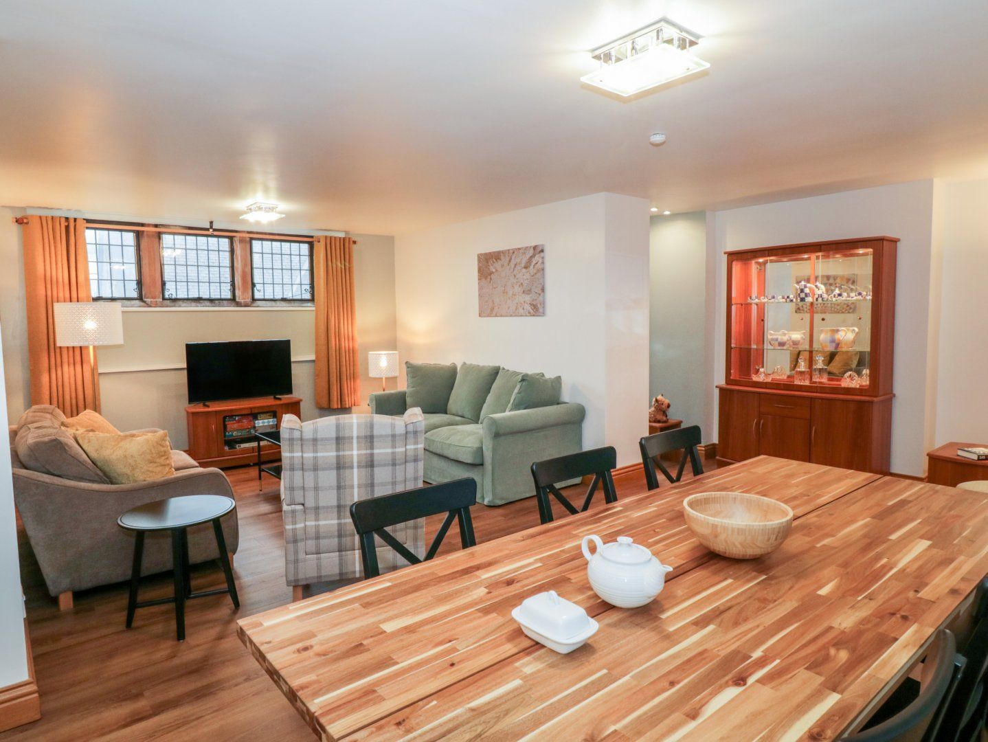 The living areas in this first-floor apartment consist of an open-plan living space with kitchen equipped with electric oven and hob, microwave, fridge/freezer, washing machine and dishwasher, a dining area and a sitting area with Smart TV. The bedrooms consist of a king-size with en-suite shower room and a family room with single and bunk serviced by a bathroom. Outside there is an allocated parking space for one car. Within 0.1 miles there is a shop and pub. Sorry, no pets and no smoking. WiFi, fuel, power, bed linen and towels are all included in the price. Explore Dumfries and Galloway from 5 St Mary's Church.