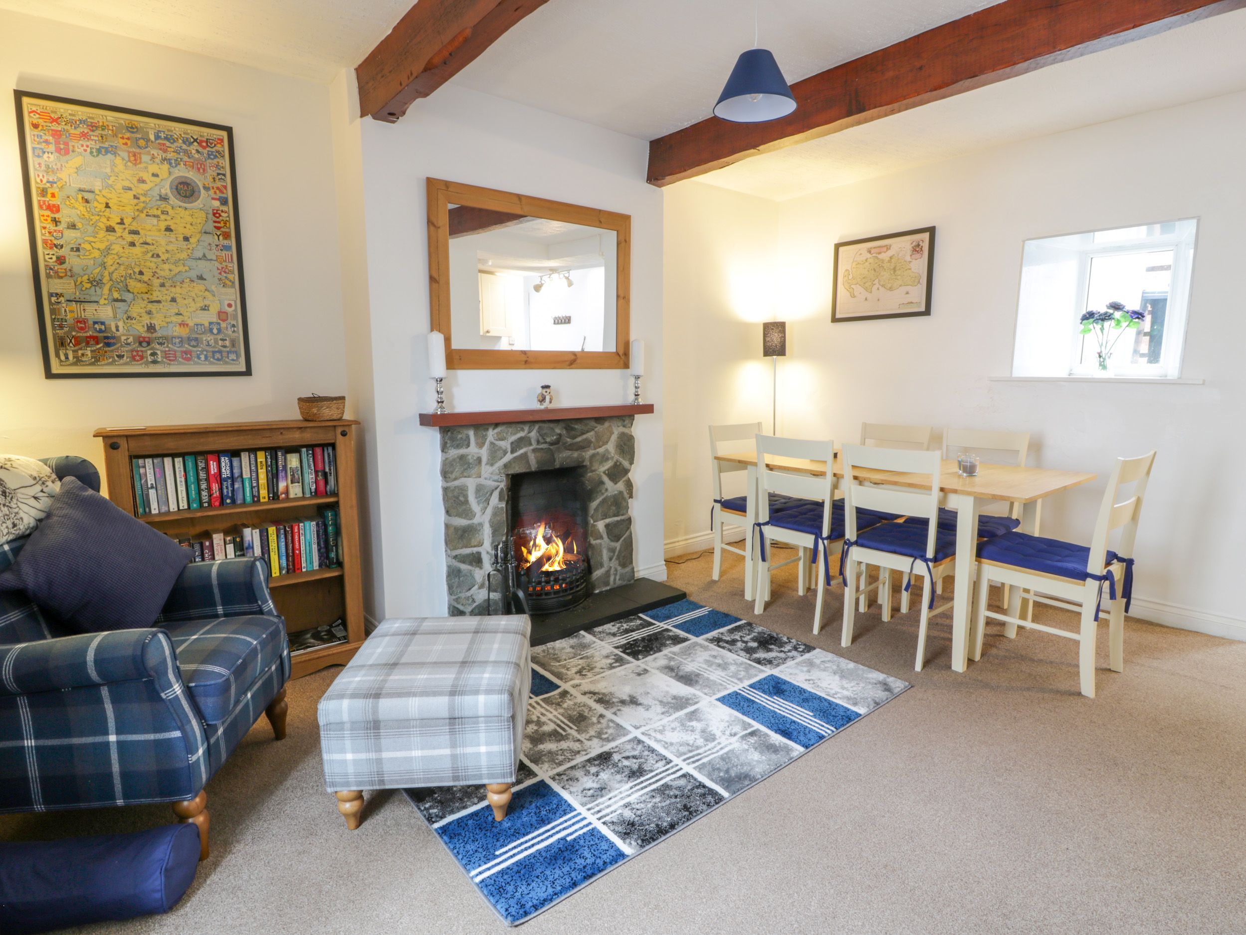Two bedrooms: 1 x double, 1 x twin with trundle bed. Bathroom with bath, shower over, basin, heated towel rail, and WC. Kitchen/diner. Sitting room with woodburning stove