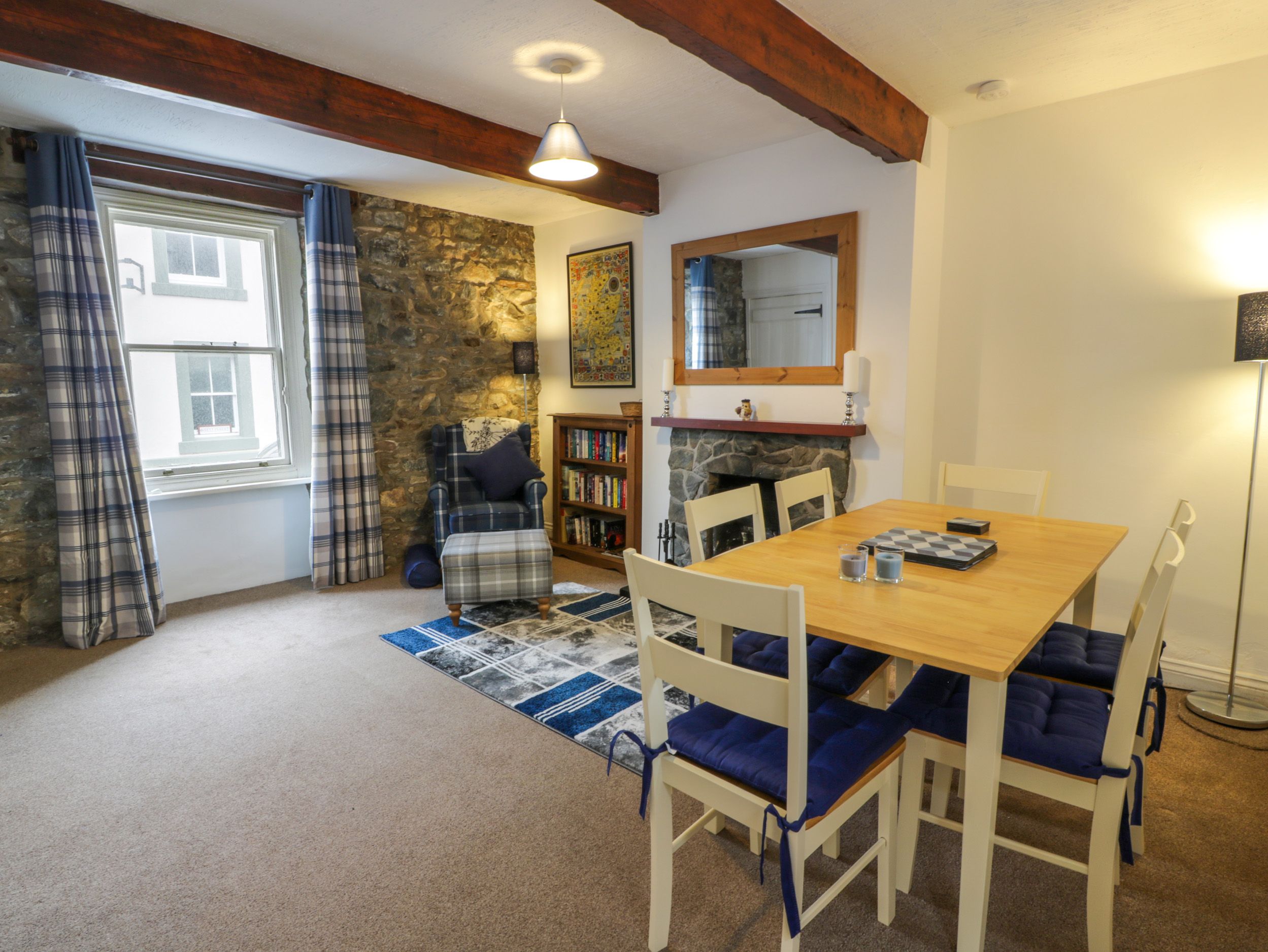 Electric heating. Electric oven and hob, microwave, fridge/freezer, washing machine. Smart TV, WiFi. Fuel, power, and starter pack for woodburning stove inc. in rent. Bed linen and towels inc. in rent. Highchair and travel cot available. Roadside parking, plus public car park nearby. Sorry, no pets and no smoking. Shop 0.4 miles, pub 0.5 miles, lake 0.2 miles. Note: A couple of steps up to property. Note: Small step from dining area to kitchen, please take care. Note: There is no garden at this property. Note: Low ceiling above staircase. Note: Sloped ceilings in bedrooms and limited head height going into bathroom. Note: Trundle bed sleeps one extra guest