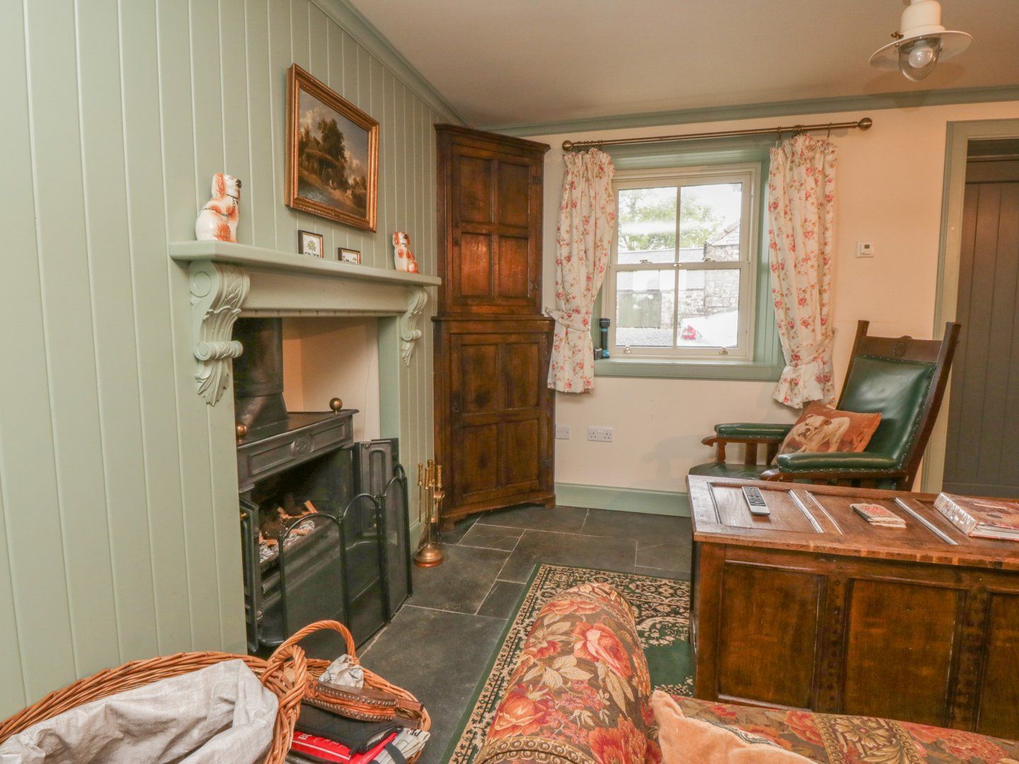 Amenities Solar electricity with underfloor heating and 2 x woodburning stoves. Range cooker, electric oven and gas hob, microwave, fridge/freezer, dishwasher, coffee machine, TV, WiFi and selection of books. Fuel and power inc. in rent. Bed linen and towels inc. in rent. Cot and highchair available. Off-road parking. Barn with bike storage. Large rear lawn with pond. Front lawn with stream. Rear gravel area with furniture. Sorry, no pets and no smoking. Shop and pub 5.1 miles. Note: Pond beyond back garden and stream in front garden, children should be supervised.