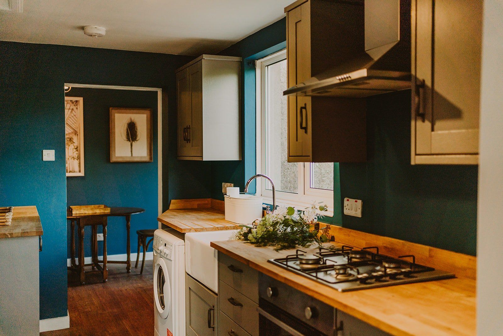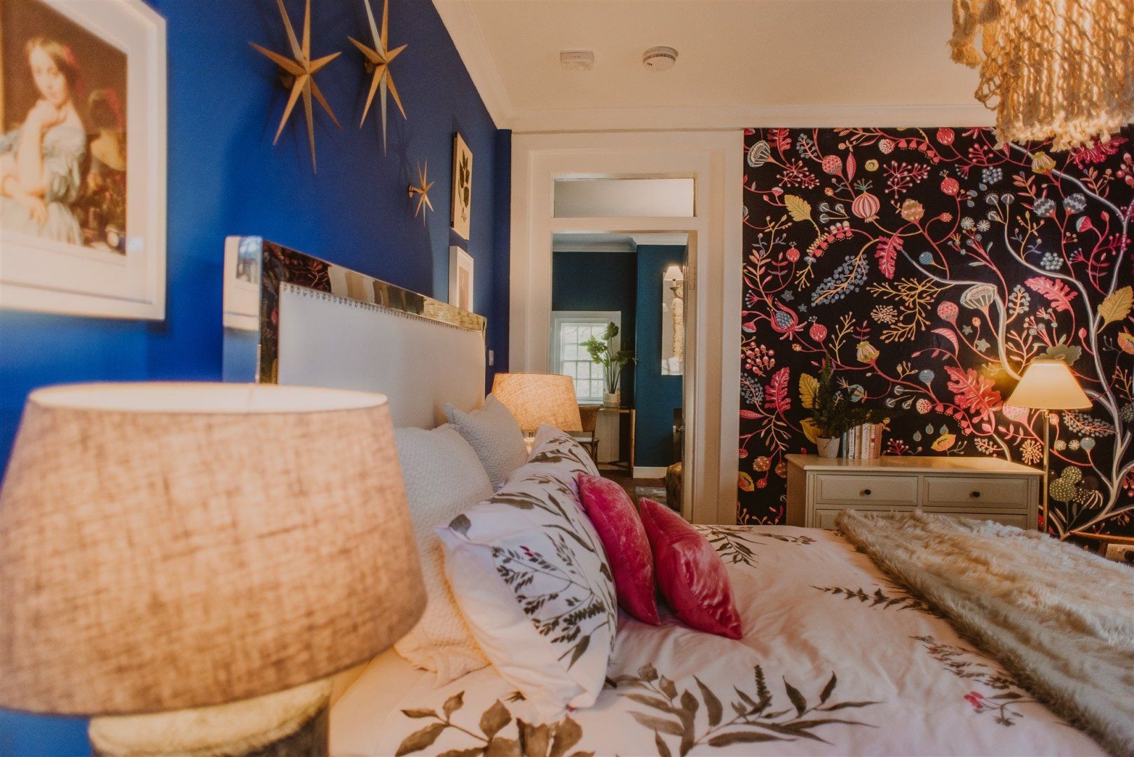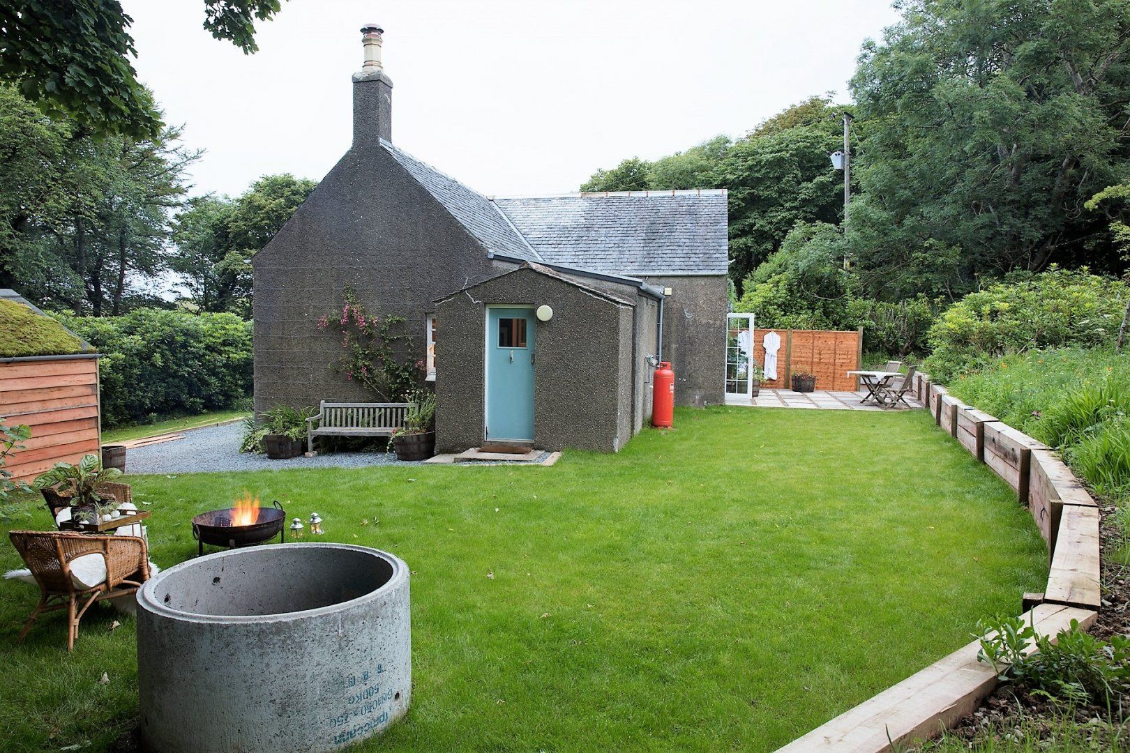 Set in a historic Edwardian castle estate stretching across 2000 acres of glen walks, forests, beaches, lochs, gardens and waterfalls, this bonnie cottage is poised to provide you with an endlessly romantic, back-to-nature stay. Located in the heart of picturesque Portpatrick – one of Scotland's prettiest seaside towns – you'll have the long beaches and tidal rushes of Dunskey Glen a short stroll from your cosy home base. We love the bohemian aesthetic and eclectic interiors, especially the rose petal wallpapers that give an air of stately grandeur from the get-go. Dreamy chandeliers and plant-themed prints fill the spaces with a homely touch, while the pink velvet sofa and grand upholstered bed make a striking impression with spades of glossy glamour. After a day exploring, curl up in front of the wood-burning stove with a good book and a tipple of whisky. On warmer nights, step out onto a private courtyard boasting an outdoor bathtub nestled among shrubs and flowing vine – this is an ideal spot to relax while admiring your woodland surroundings. Outside of your home, Dunskey Golf Course and the Portpatrick Harbour are two minutes away (on foot), while the Dunksey Castle is a twenty-minute walk up the craggy Scottish coastline.