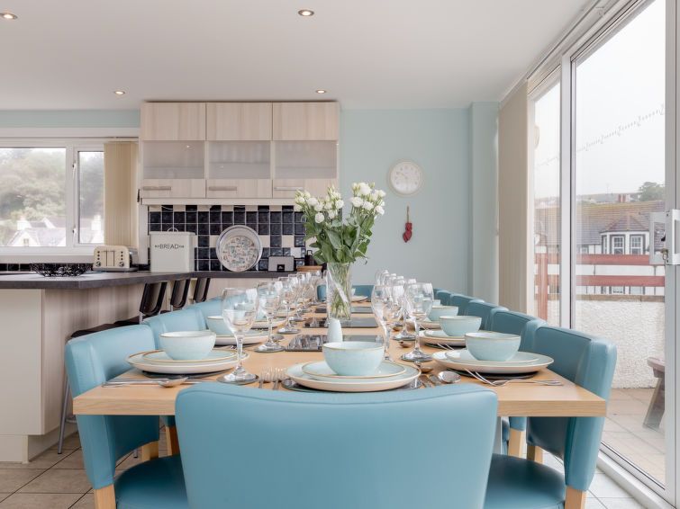 9-room house 266 m2. Comfortable and tasteful furnishings: large lounge with TV (flat screen), DVD and electric heater. Living room with cable TV (flat screen), DVD. 3 double bedrooms, each room with 1 double bed and shower/WC. 1 room with 2 beds and shower/WC. Large, open kitchen (oven, dishwasher, 4 ceramic glass hob hotplates, toaster, kettle, microwave, freezer) with dining table.