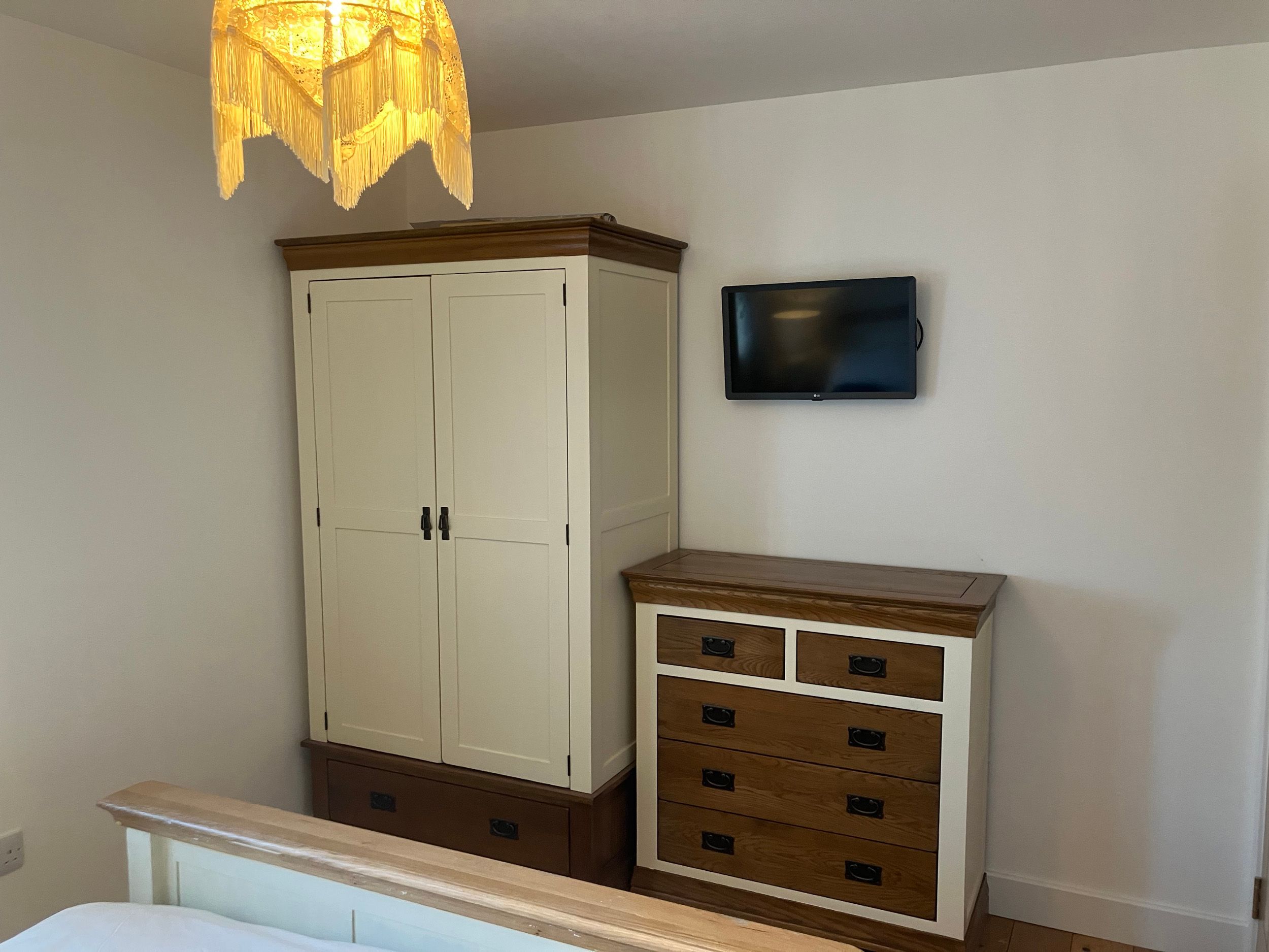 Accomodation Details Single-storey. Two bedrooms: 1 x double with TV and en-suite walk-in shower, basin and WC, 1 x twin with TV. Bathroom with freestanding bath, handheld shower, walk-in shower, basin and WC. Open-plan living pace with kitchen, dining and sitting area