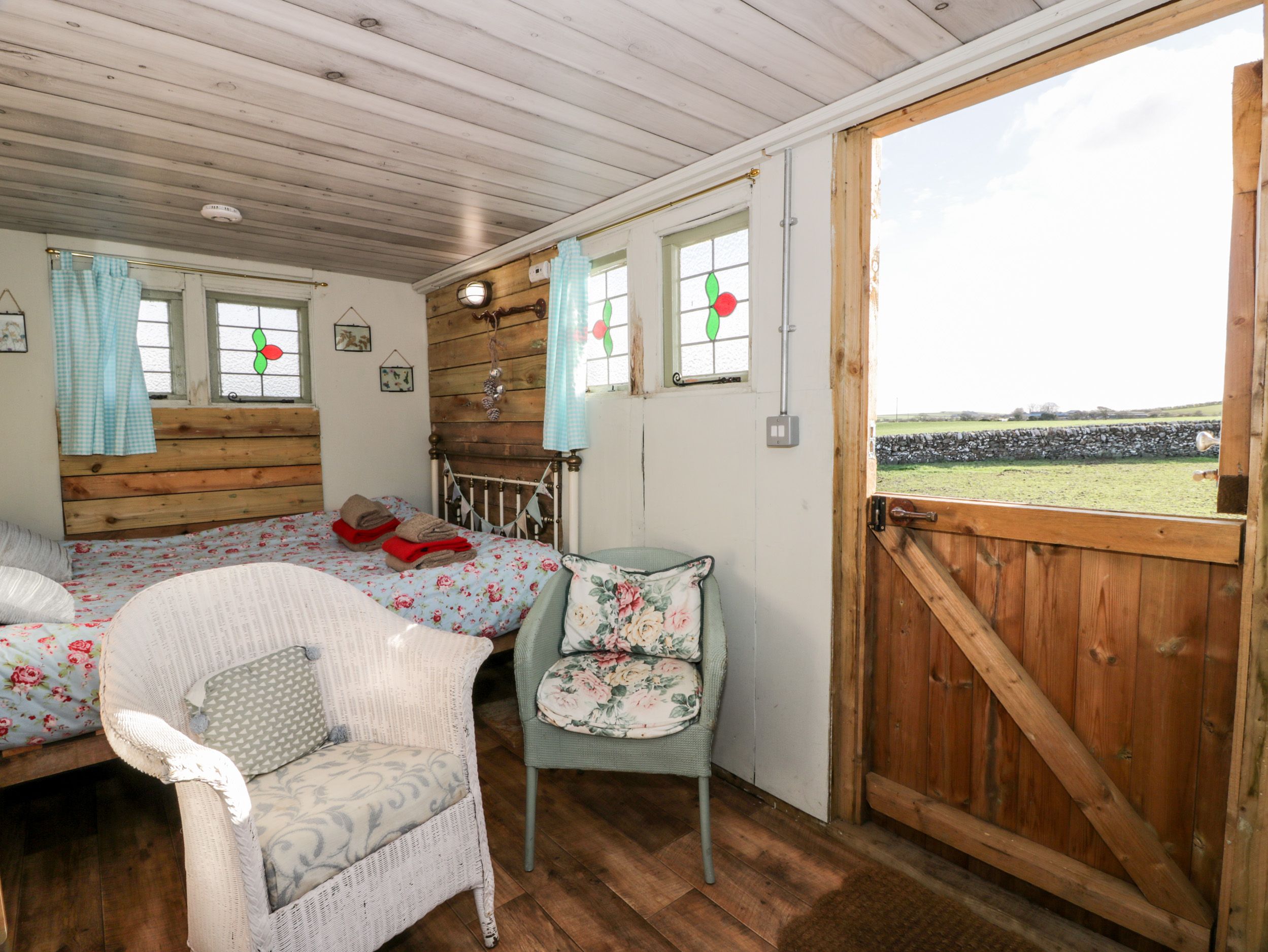 Accomodation Details All-one-level. One king-size bedroom in a studio-style layout with kitchen, dining area and sitting area with woodburning stove. External shower room with walk-in shower and separate WC. The WC is adjacent to the Shepherds hut next to the BBQ. Wood fired hot tub.