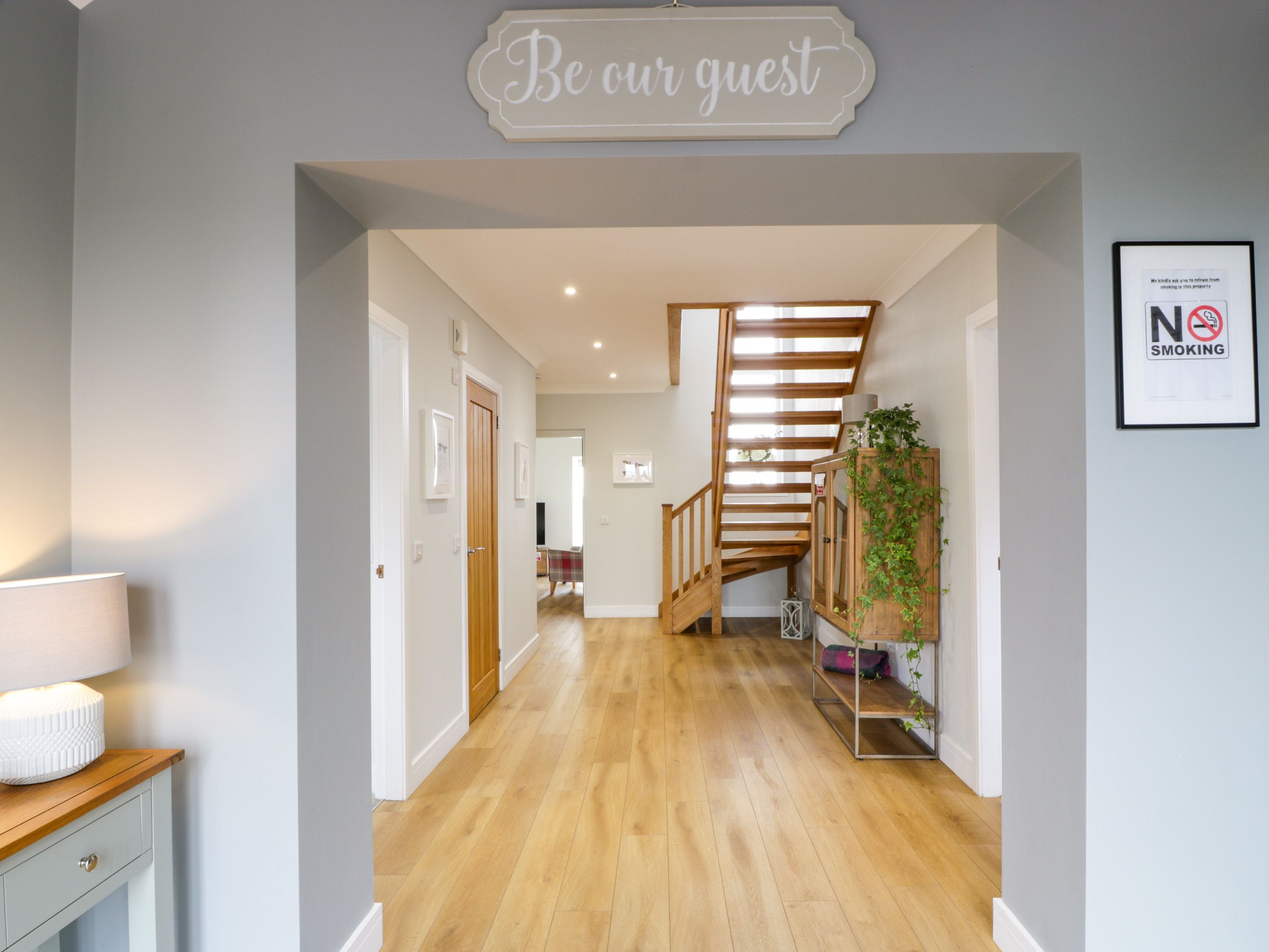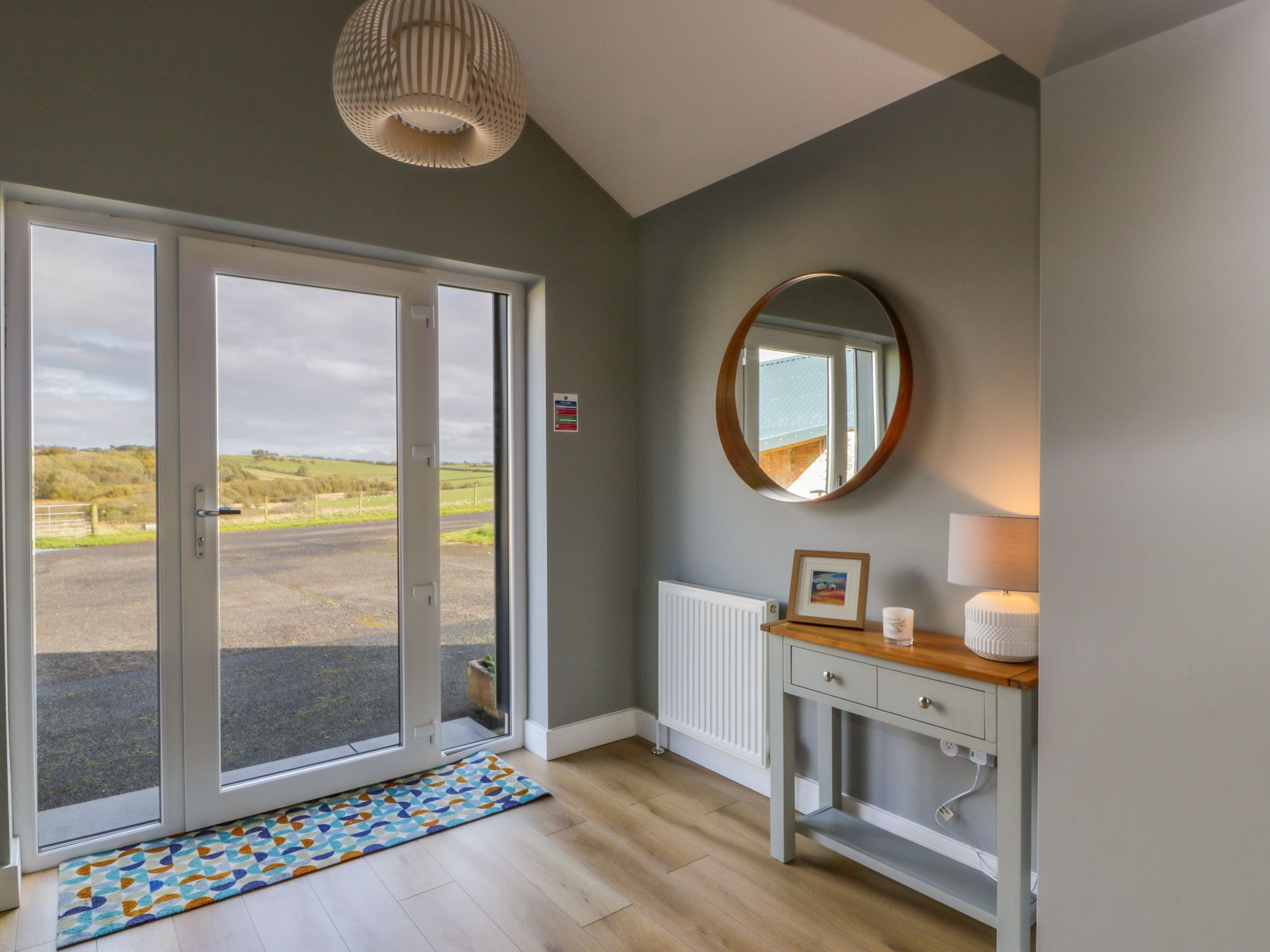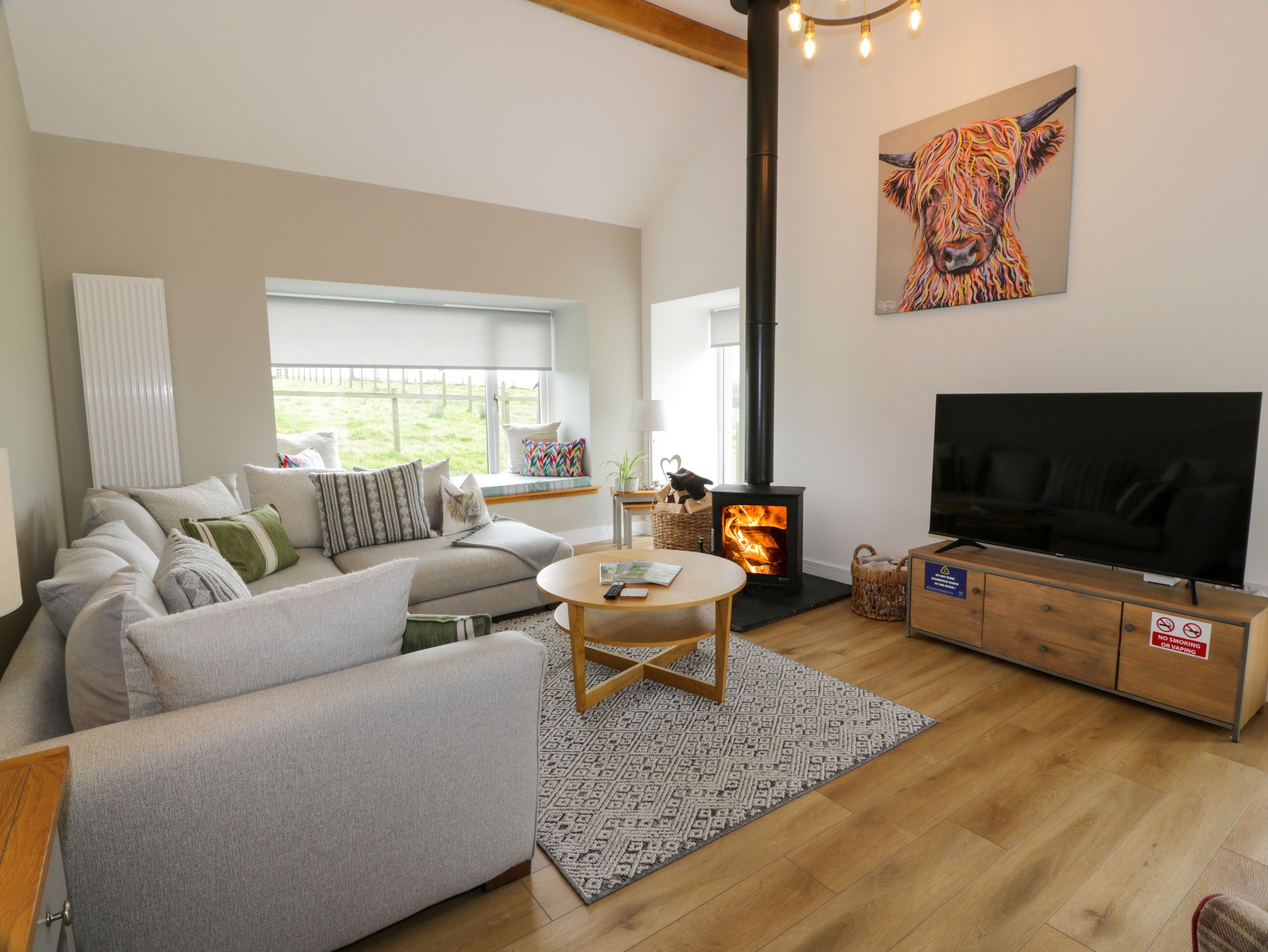 Amenities Oil central heating. Double oven, electric hob, microwave, fridge, freezer, washing machine, dishwasher, tumble dryer. 2 x Smart TVs, WiFi. Fuel, power, and starter pack for woodburning stove inc. in rent. Bed linen and towels inc. in rent. Highchair and travel cot available. External barn with a games room & pool table, table football, table tennis and darts. Ample off-road parking available. Enclosed rear patio with hot tub. Sorry, no pets, no smoking. Shop 1.5 miles, pub 1 mile, river 0.8 miles. Note: There are feather duvets in super-king-size and king-size rooms, however the single beds are non-feathered. Note: There is bike storage and barbecue. Please Note: The property in on a working farm. This property does not accept stag, hen or party bookings. This property has a 3-night minimum stay