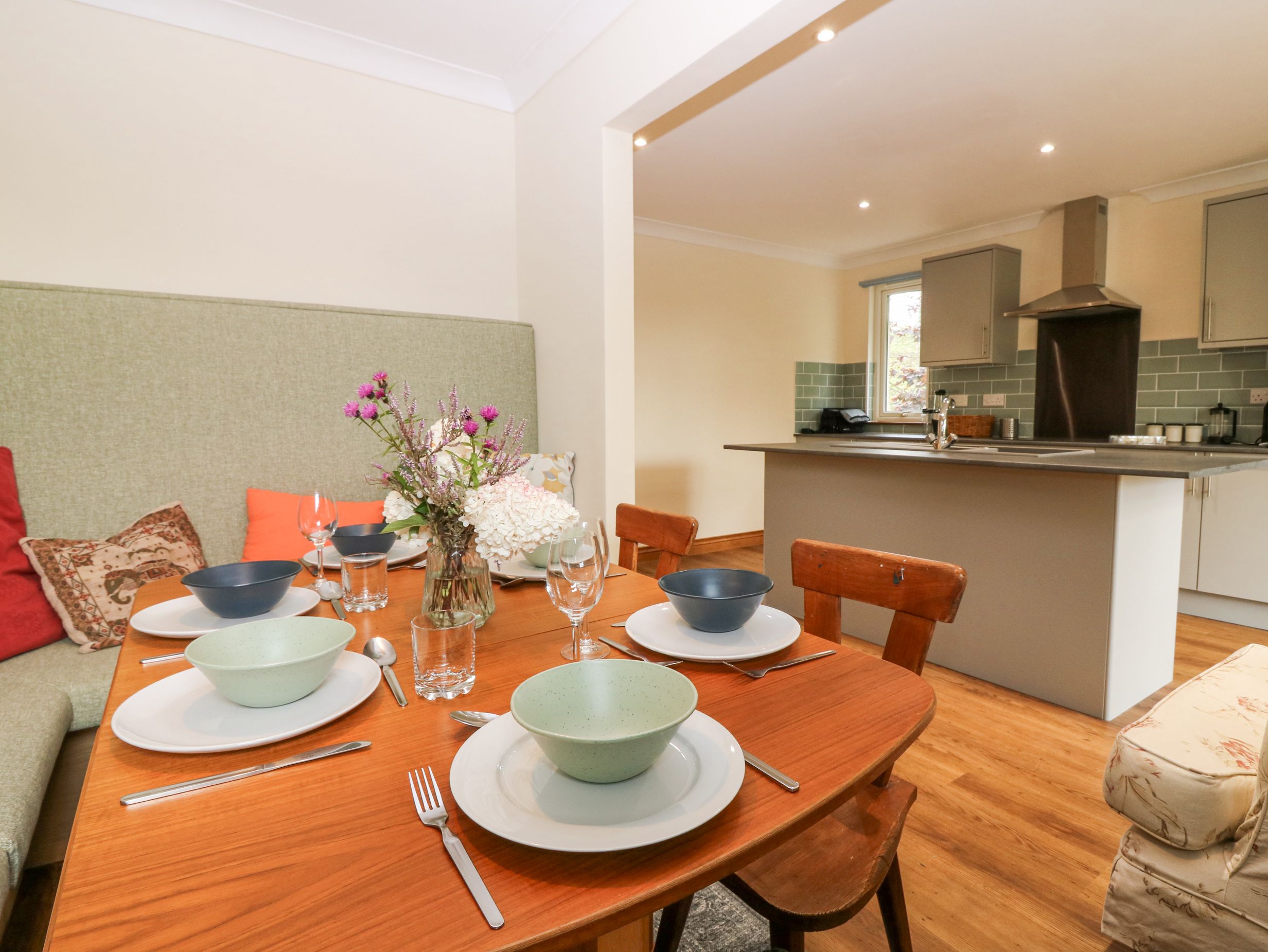 Air source heat pump. Electric oven and hob, microwave, washing machine, dishwasher, kettle, toaster. Smart TV, WiFi. Fuel and power inc. in rent. Bed linen and towels inc. in rent. Highchair. Off-road parking for 3 cars. Enclosed rear garden with lawn, decking and furniture. Two well-behaved pets welcome. Sorry, no smoking. Shop 1.4 miles, pub 1.8 miles. Note: Check-in from 3pm, check-out by 11am
