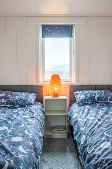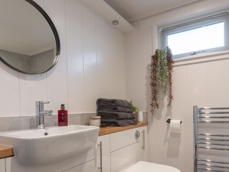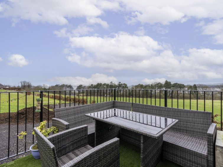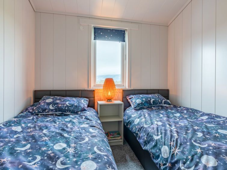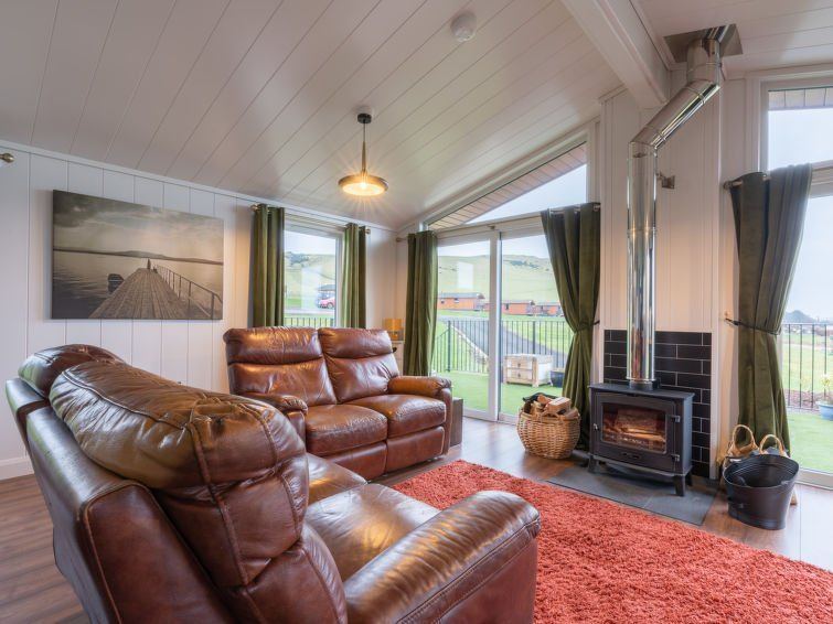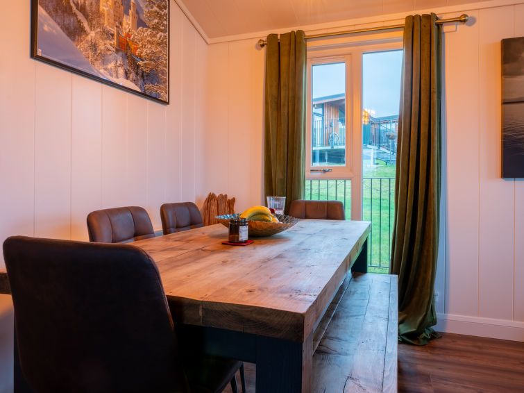 "Loch Leven Lodge 25 East", 4-room chalet 69 m2. Tasteful and stylish furnishings: open living/dining room with dining table and digital TV. Exit to the balcony. 2 rooms, each room with 1 double bed. 1 room with 2 beds. Kitchen-/living room (4 hot plates, oven, dishwasher, microwave, freezer).
