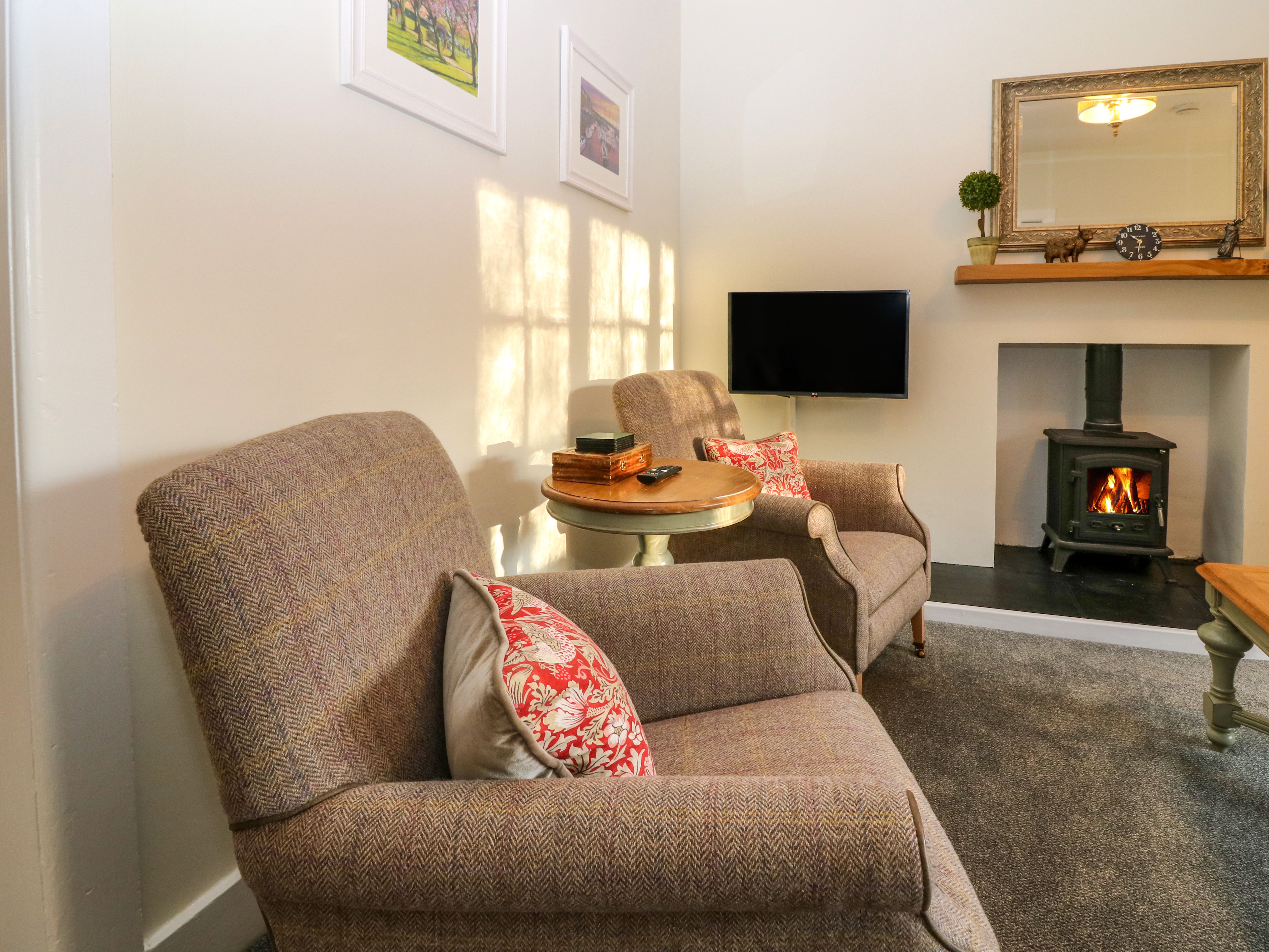 All ground floor. Three bedrooms: 2 x double, 1 x single. Bathroom with bath, shower over, basin and WC. Kitchen/diner. Sitting room with woodburning stove