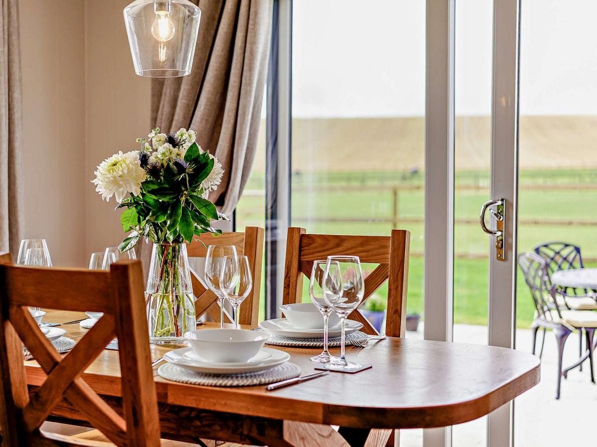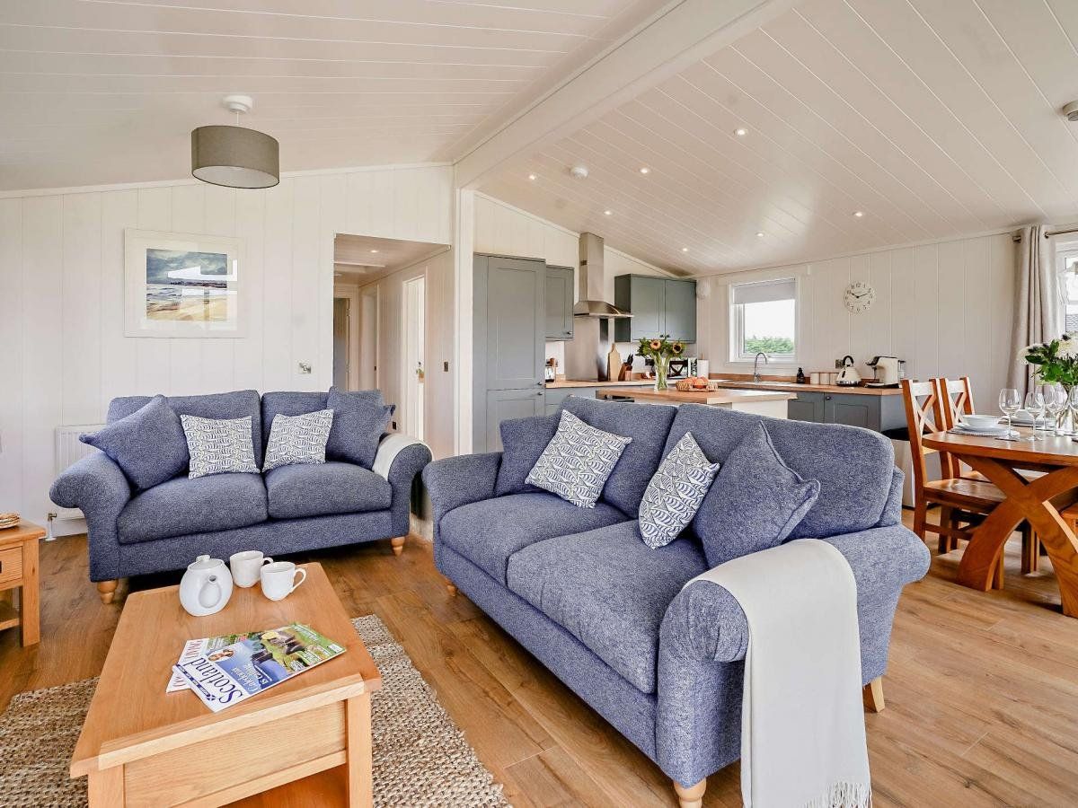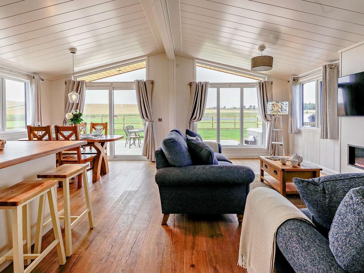 Perfect for families or pairs of couples, it features stunning views across open fields and is situated close to renowned attractions, including world-class golf courses and the sandy beaches of the Fife Coastal Path. With a thoughtful interior and inviting outdoor spaces, it’s an ideal base for exploring or simply relaxing in comfort.