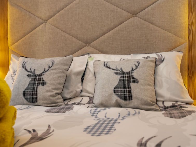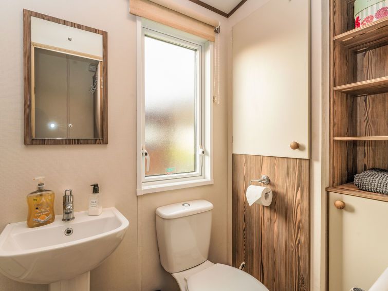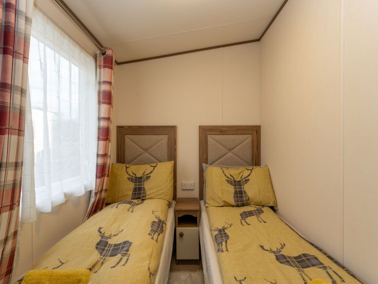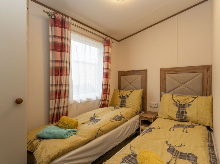 3-room chalet. Open living/dining room with dining table and TV. Exit to the terrace. 1 double bedroom with 1 double bed and bath/shower/WC. 1 small children's room with 2 beds. Open kitchen (dishwasher, toaster, kettle, microwave, freezer, grill). Shower/WC. Heating. Terrace furniture.