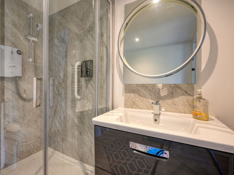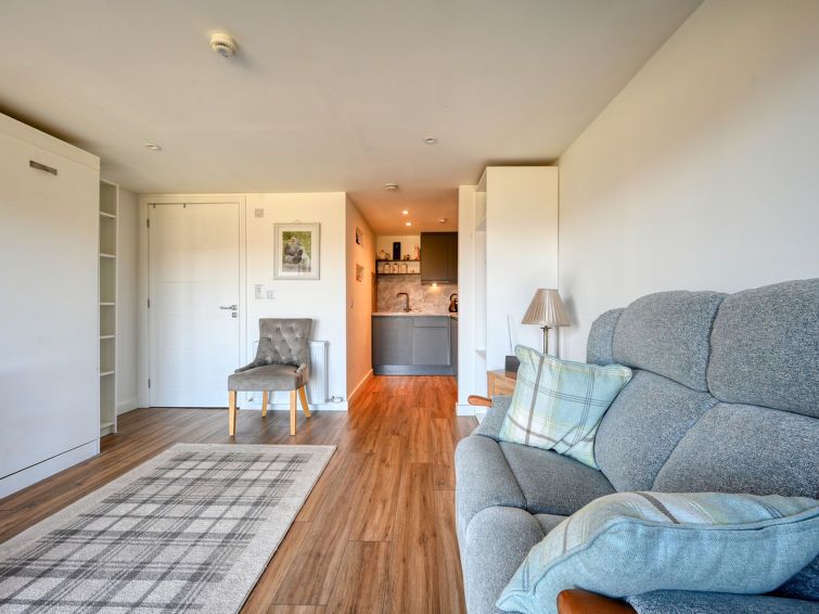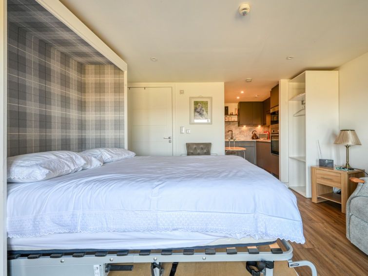 1-room studio. Bright, practical and cosy furnishings: open living/sleeping room with 1 pull-out bed, dining table, TV, satellite TV and radio. Exit to the garden, to the patio. Small, open kitchen (oven, 2 ceramic glass hob hotplates, toaster, kettle, microwave). Shower/WC. Heating.