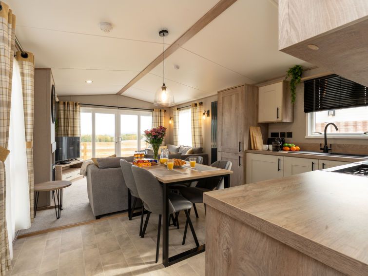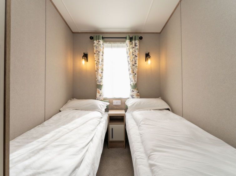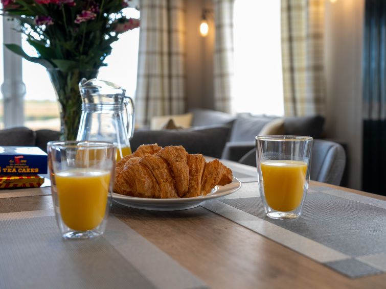 3-room chalet. Open living/dining room with dining table and TV. Exit to the terrace. 1 double bedroom with 1 double bed and bath/shower/WC. 1 small children's room with 2 beds. Open kitchen (dishwasher, toaster, kettle, microwave, freezer, grill). Shower/WC. Heating. Terrace furniture.